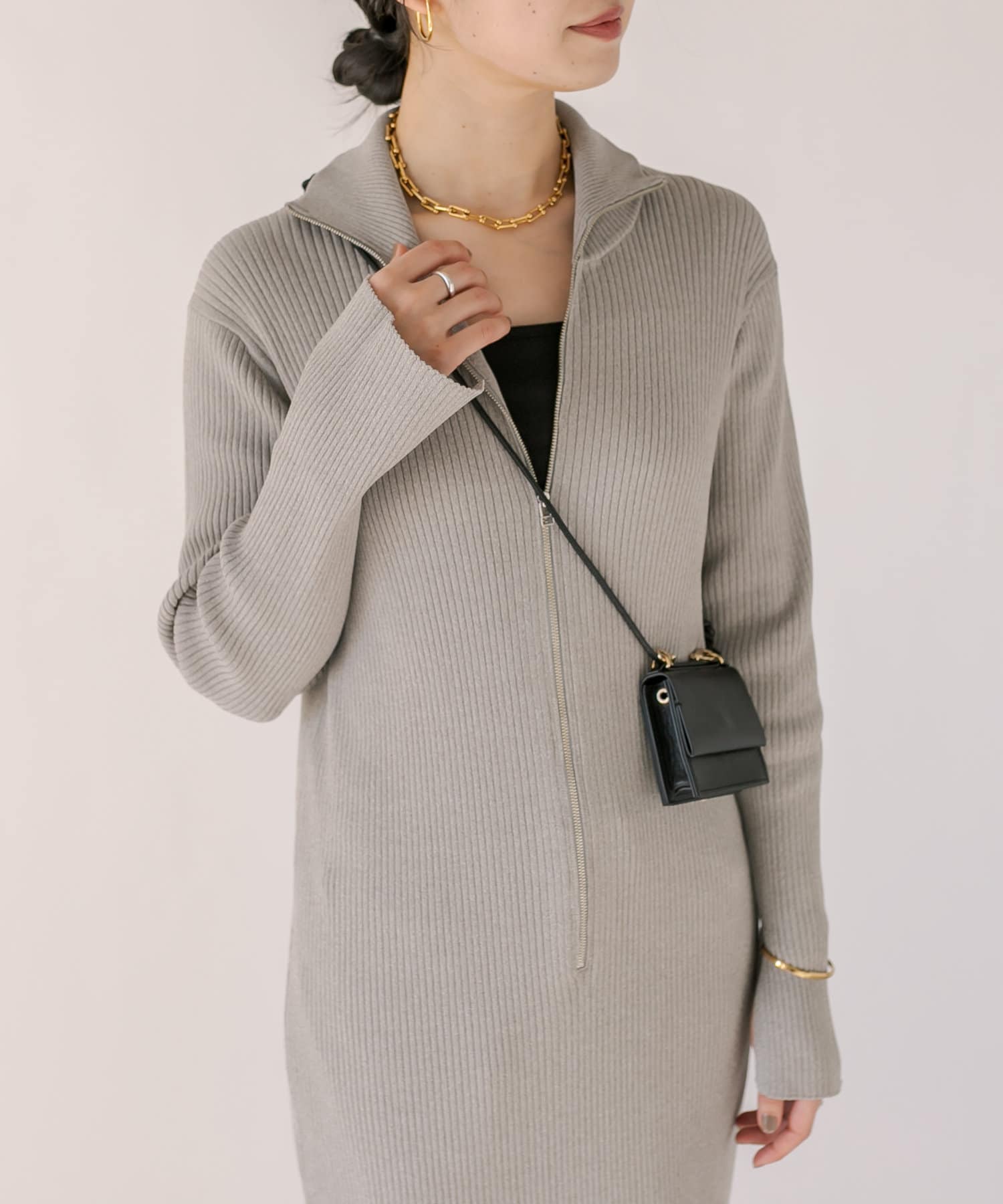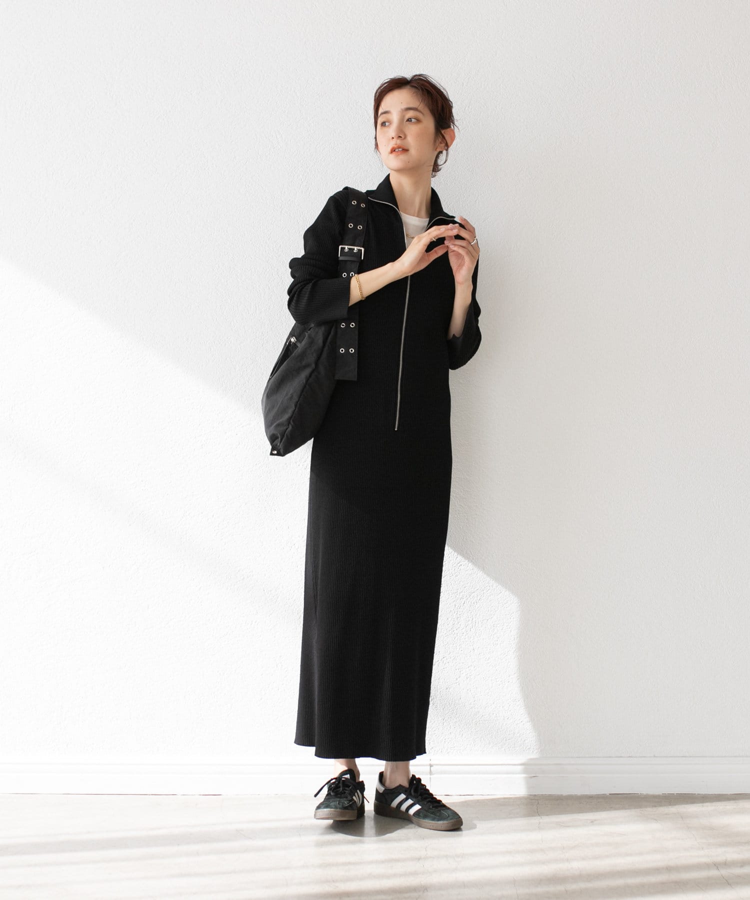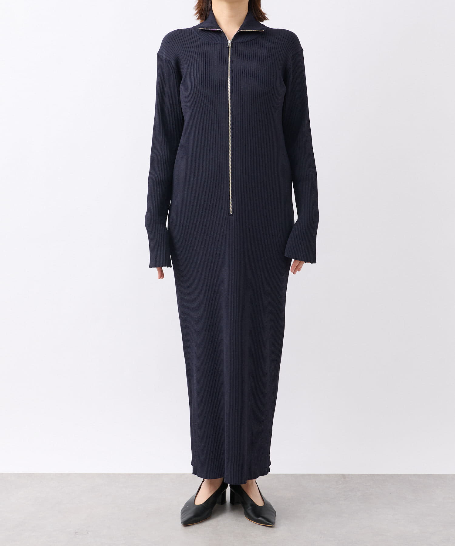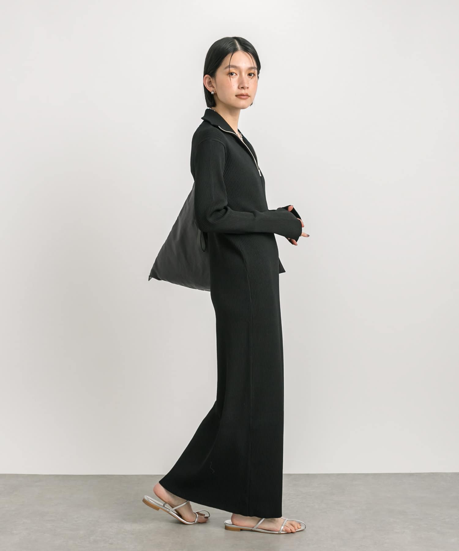 【着やせ見え◎】ハーフZIPリブニットワンピース