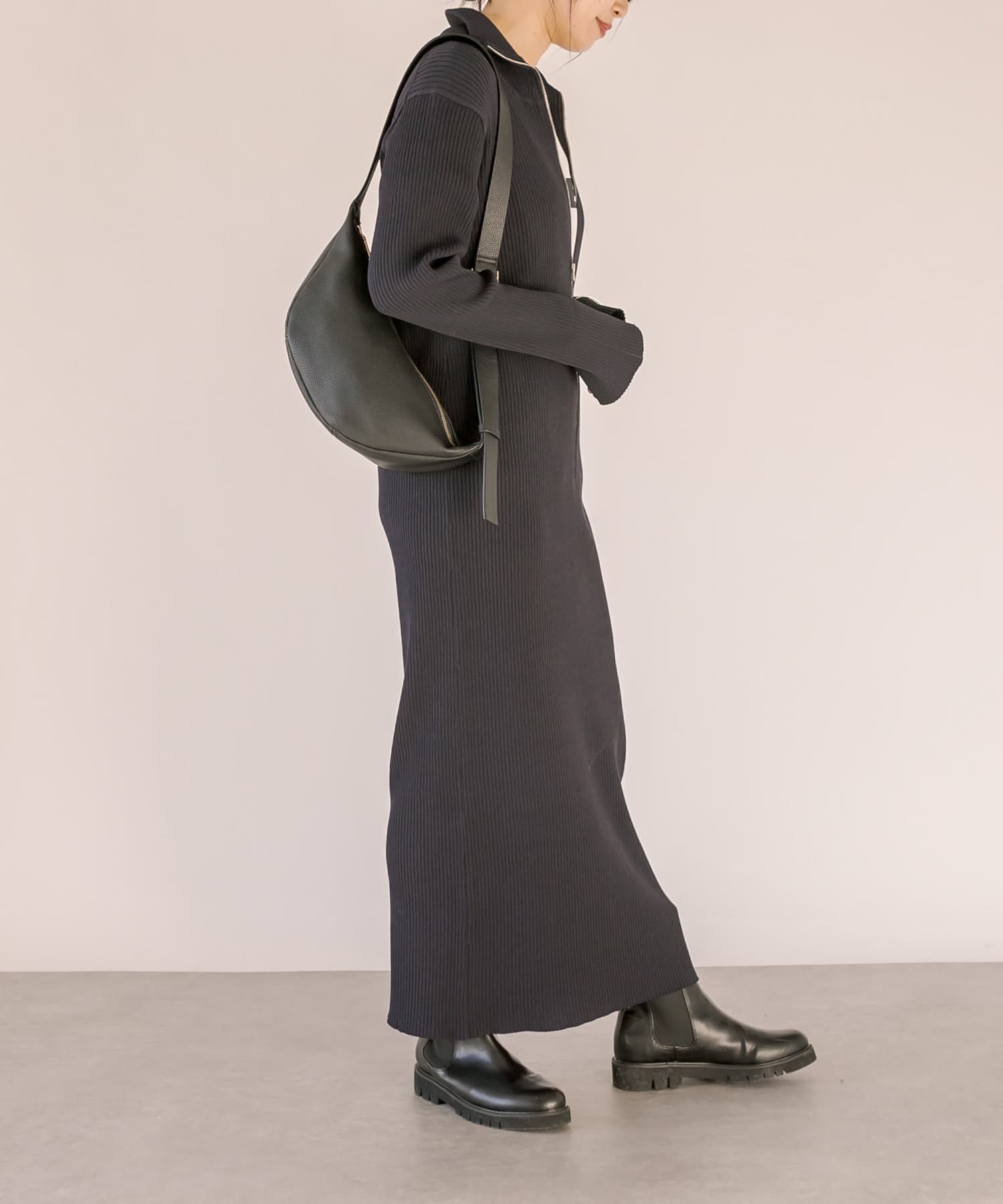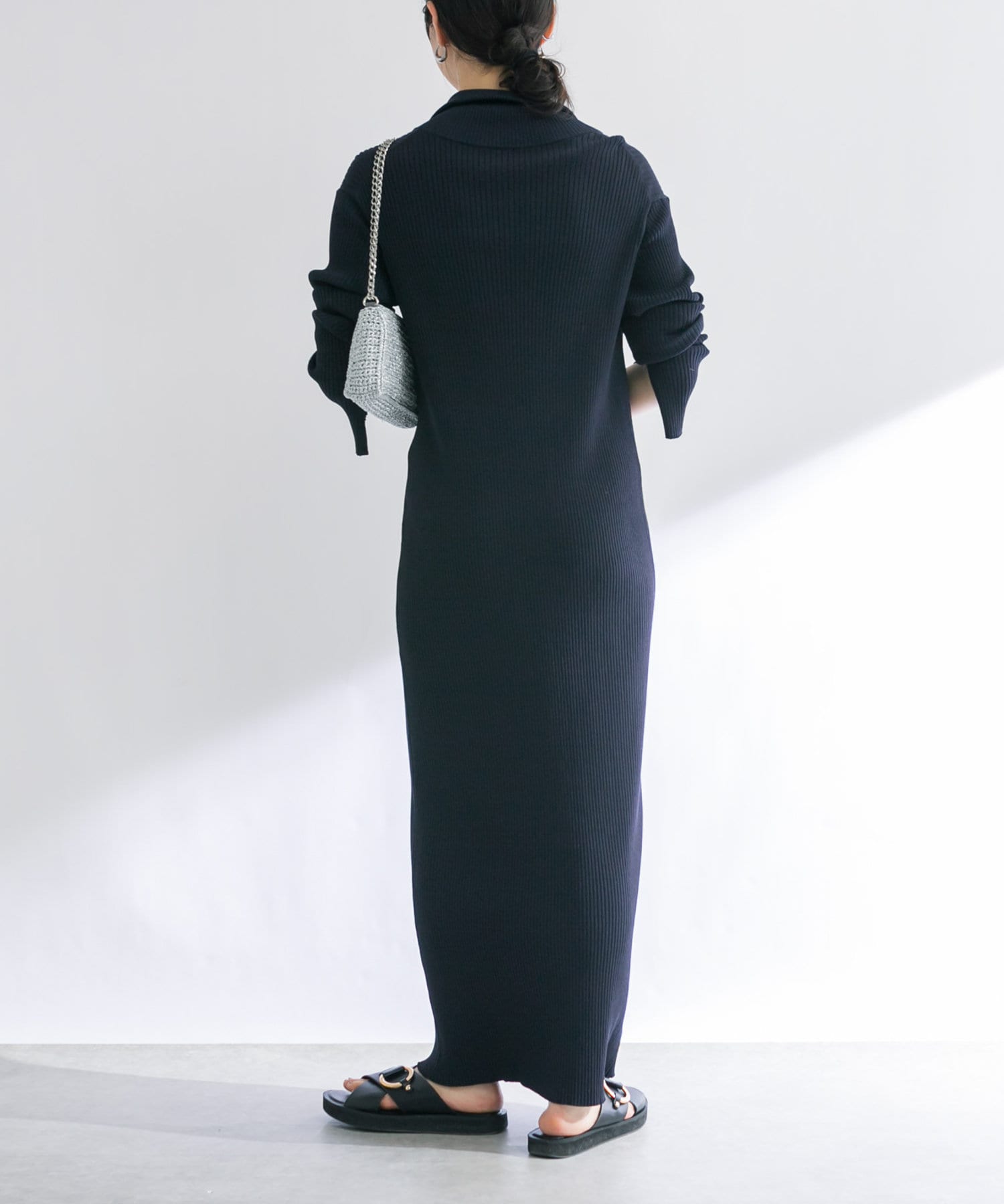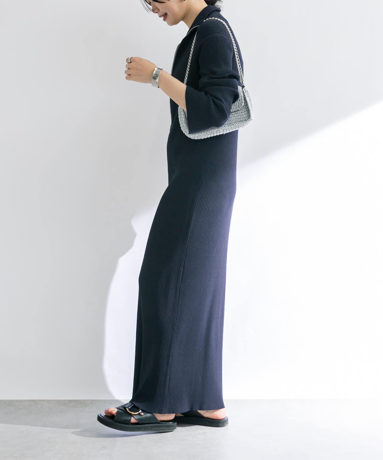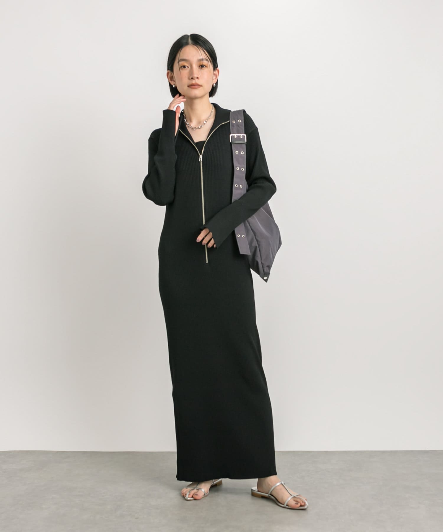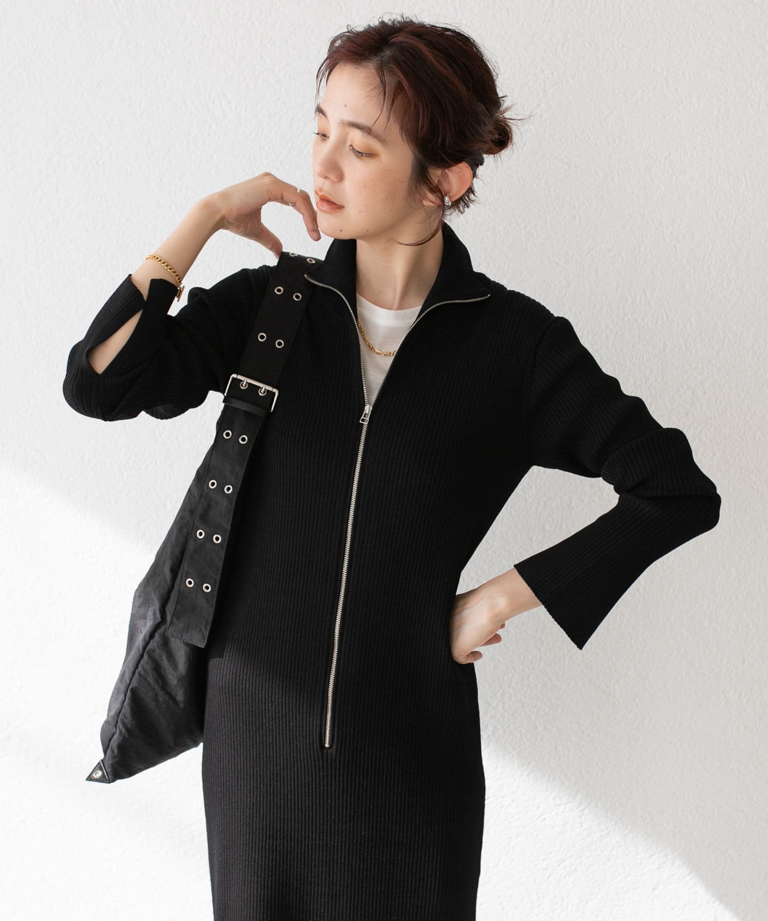 【着やせ見え◎】ハーフZIPリブニットワンピース