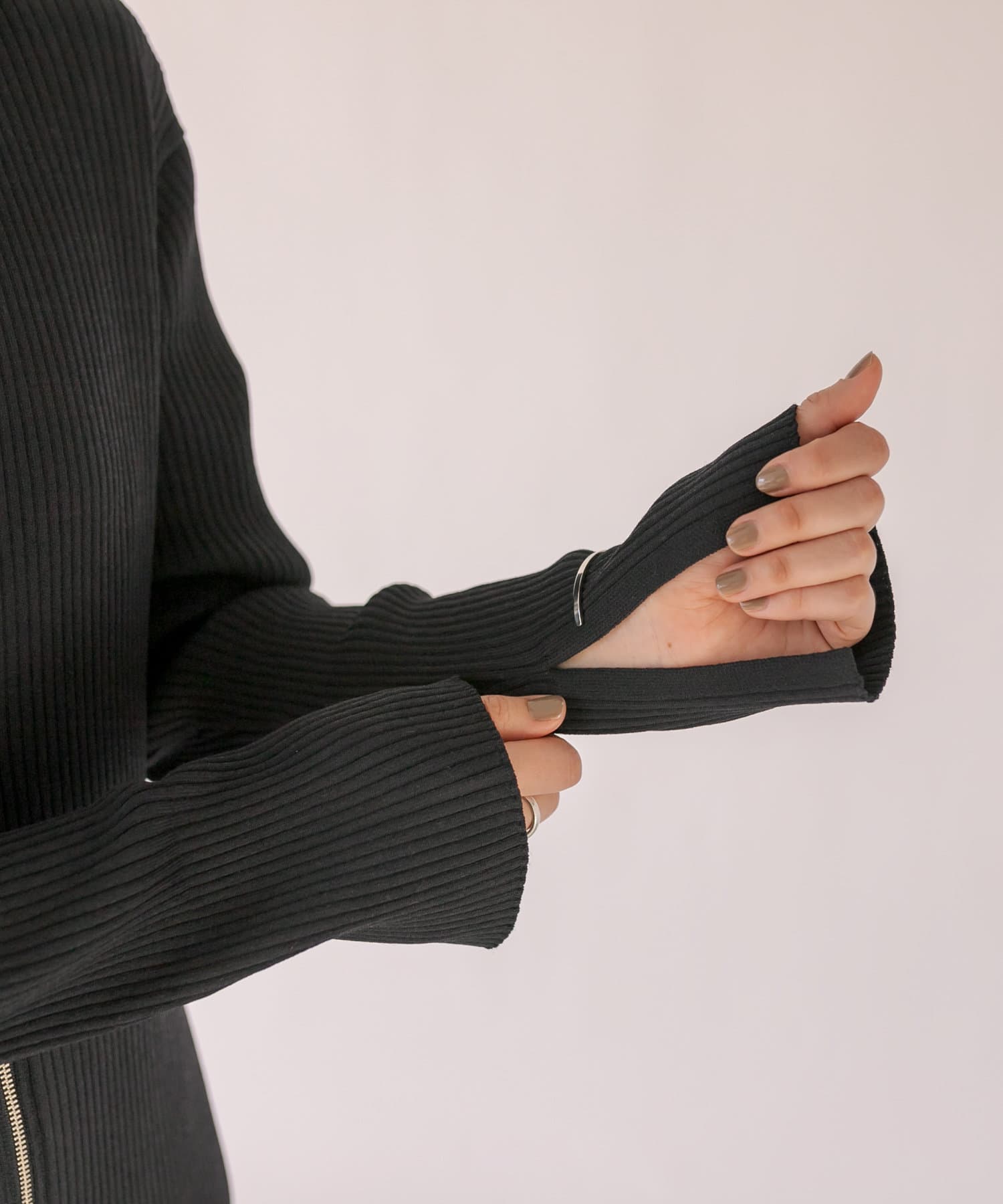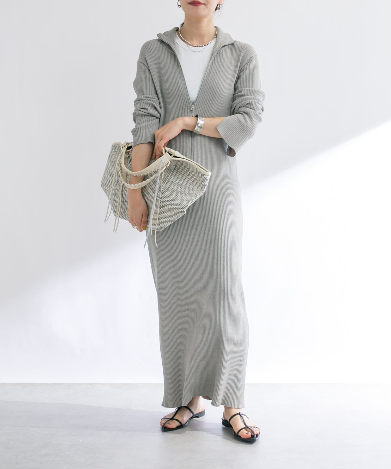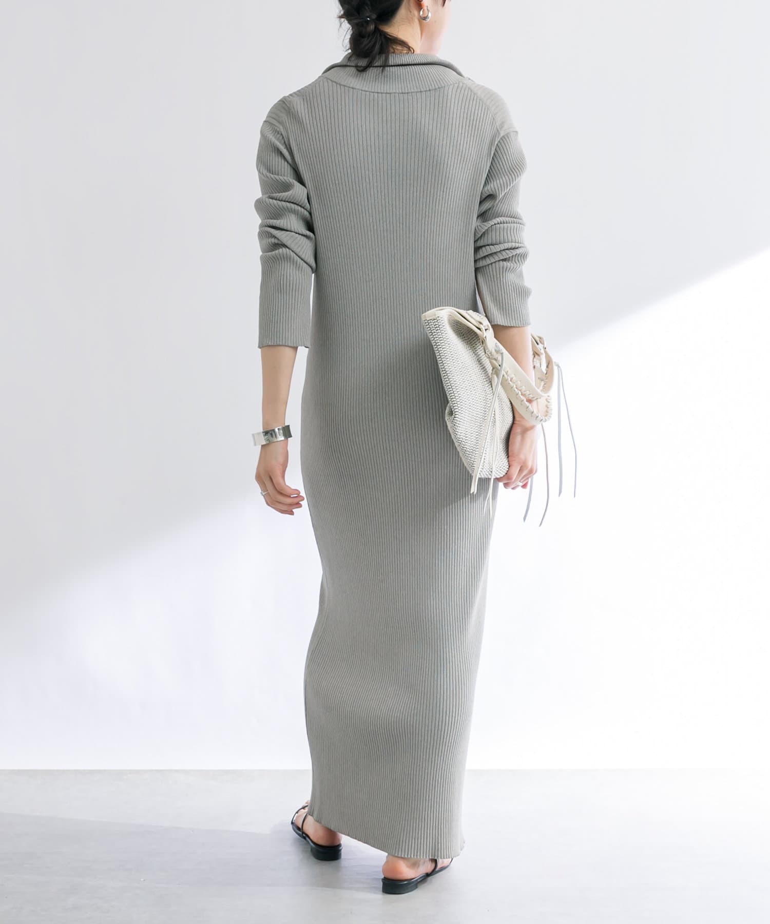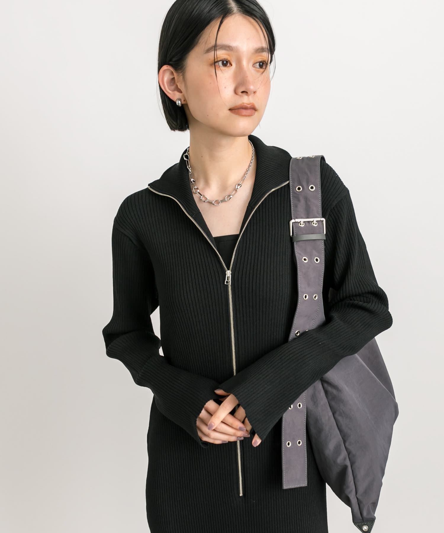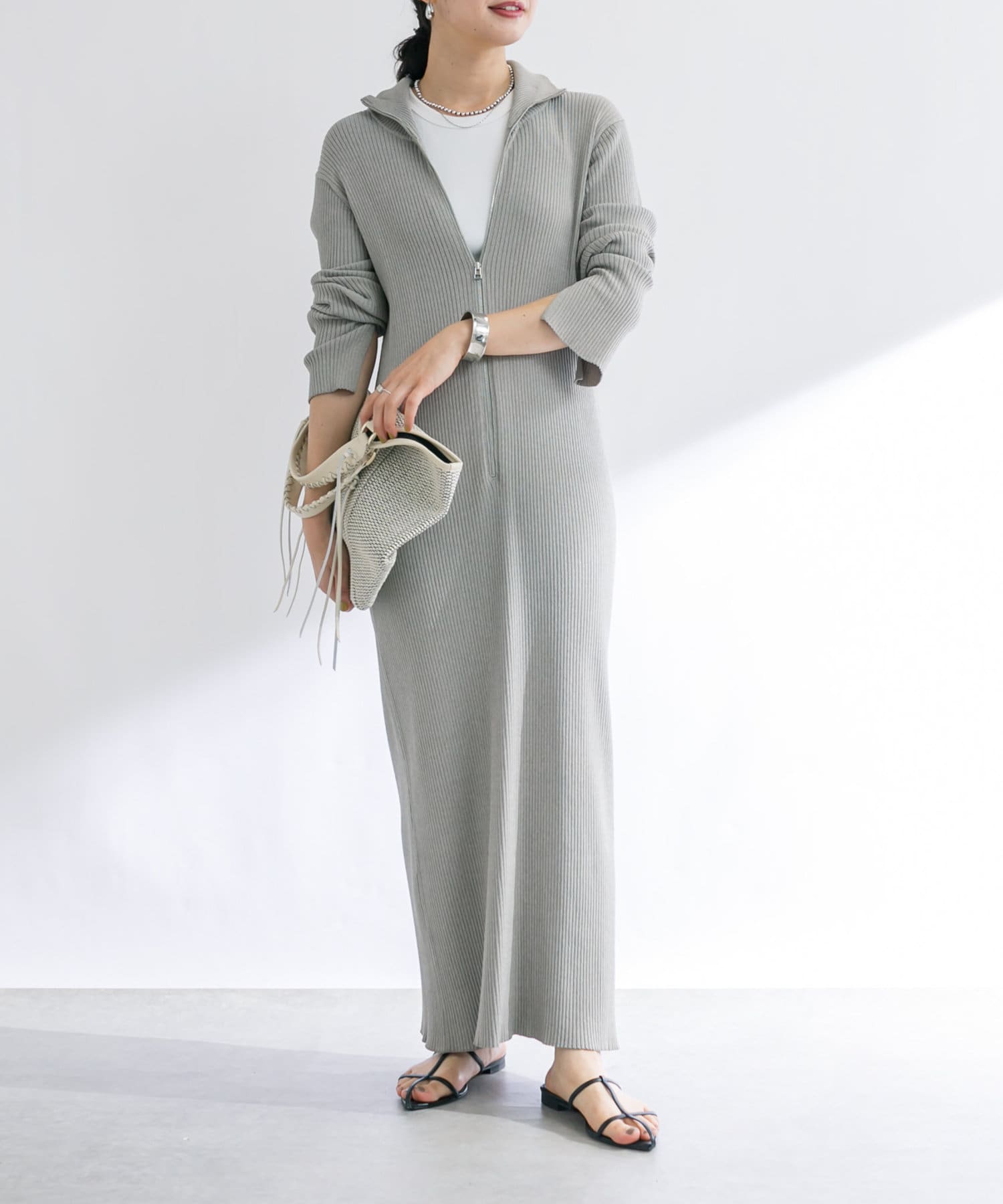 【着やせ見え◎】ハーフZIPリブニットワンピース