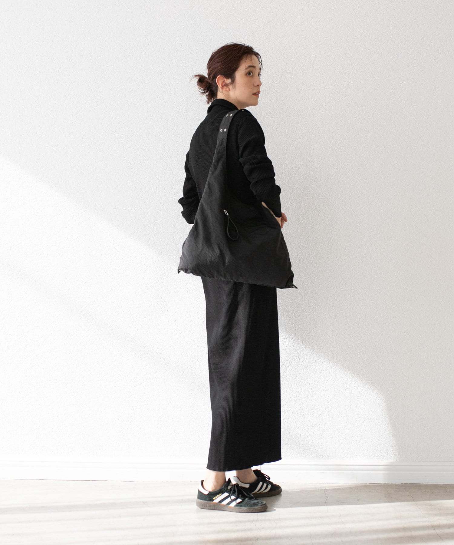 程よく身体に馴染むフィット感でラインを拾いすぎず、すっきりと見せてくれるのも嬉しいポイント。