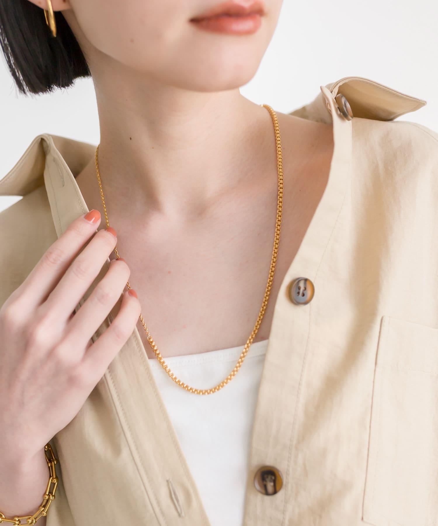 チェーン自体は目立ちすぎないサイズ感で重ねてつけても華やかすぎないデザインが◎