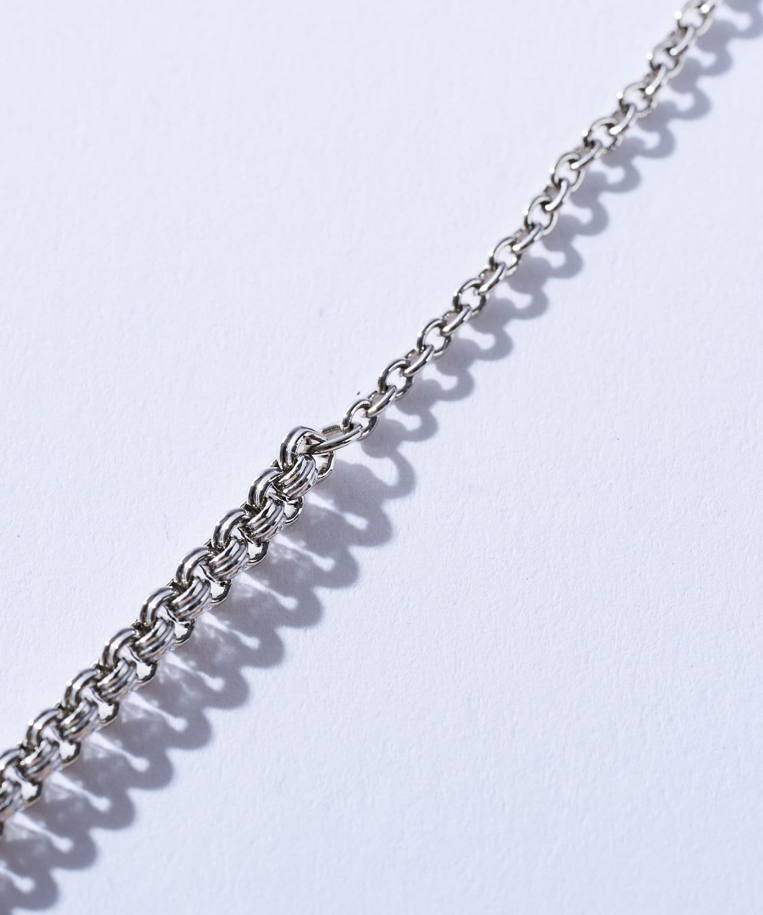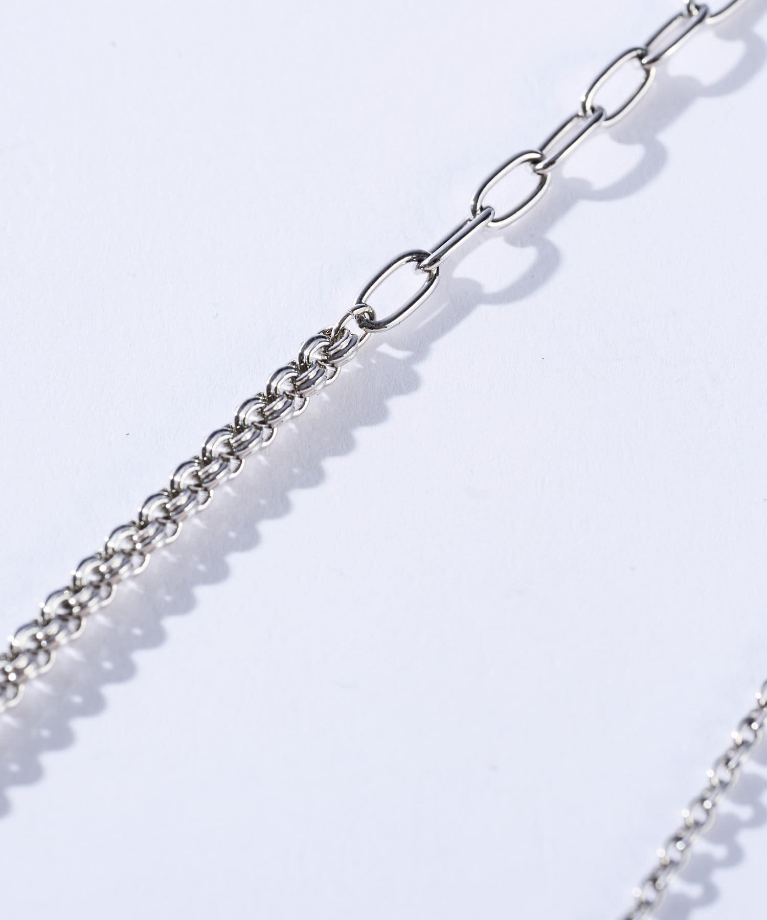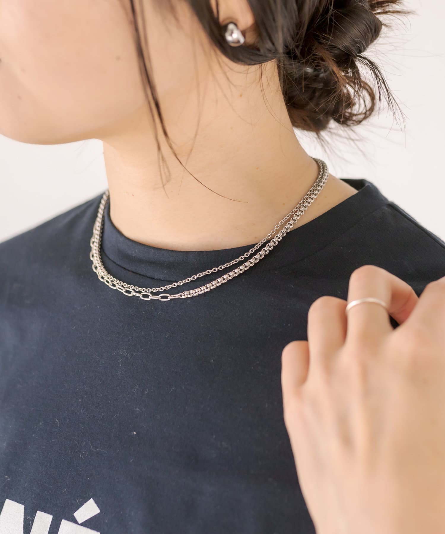 3種類のチェーンが組み合わさったデザインのネックレス。