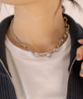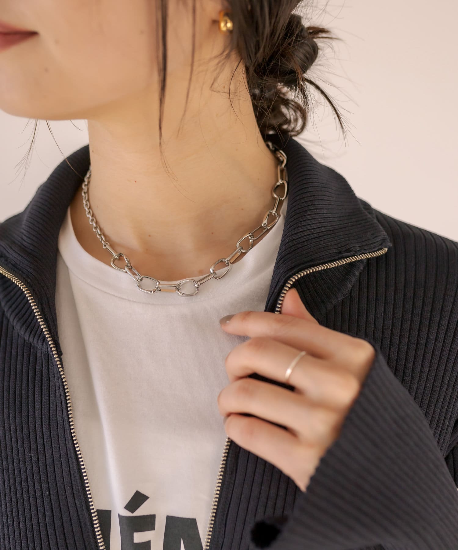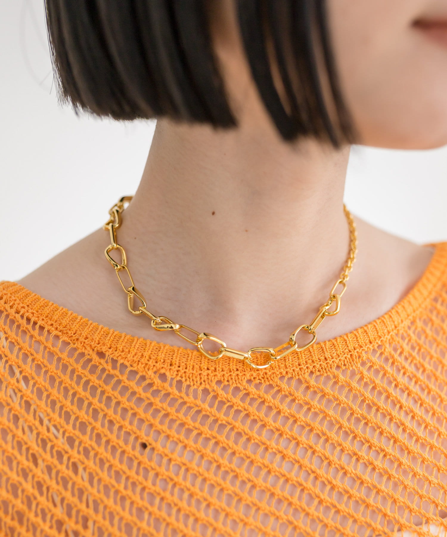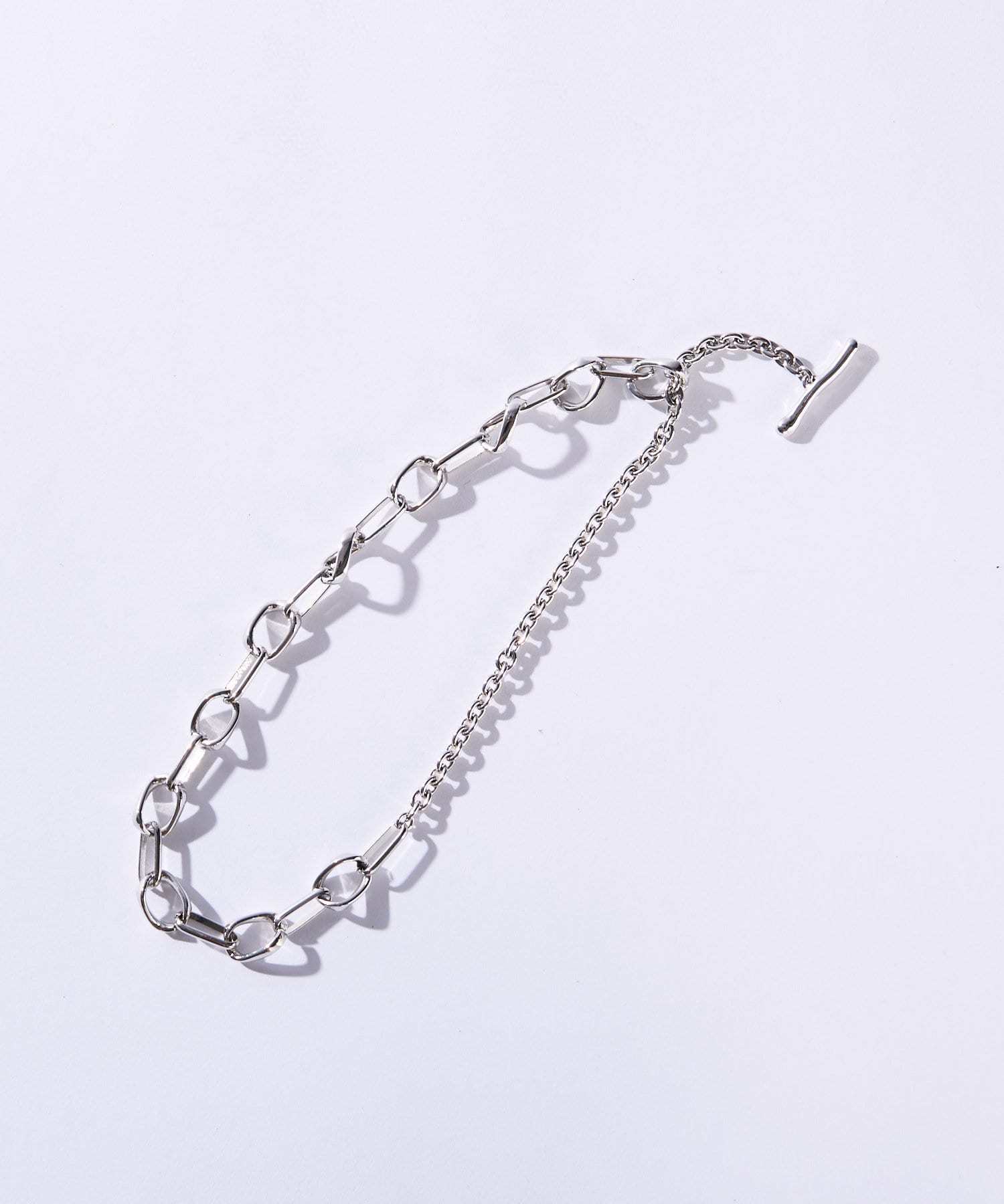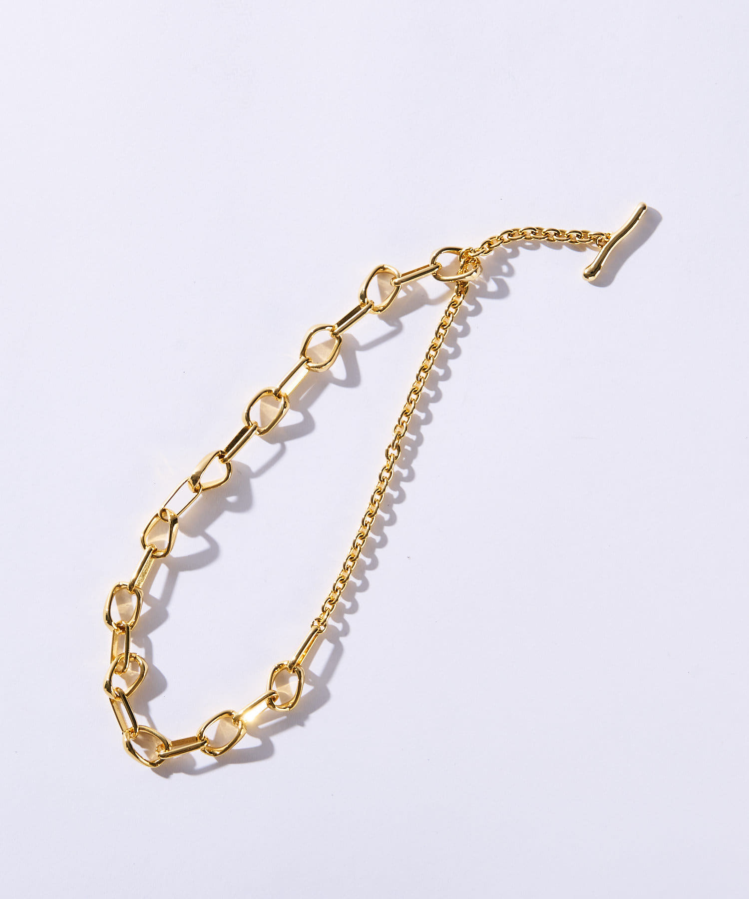 2種のチェーンがコンビになっているショート丈ネックレス。