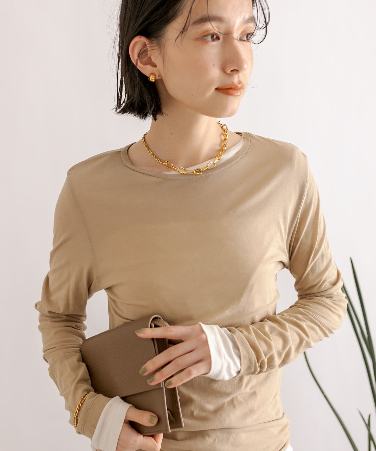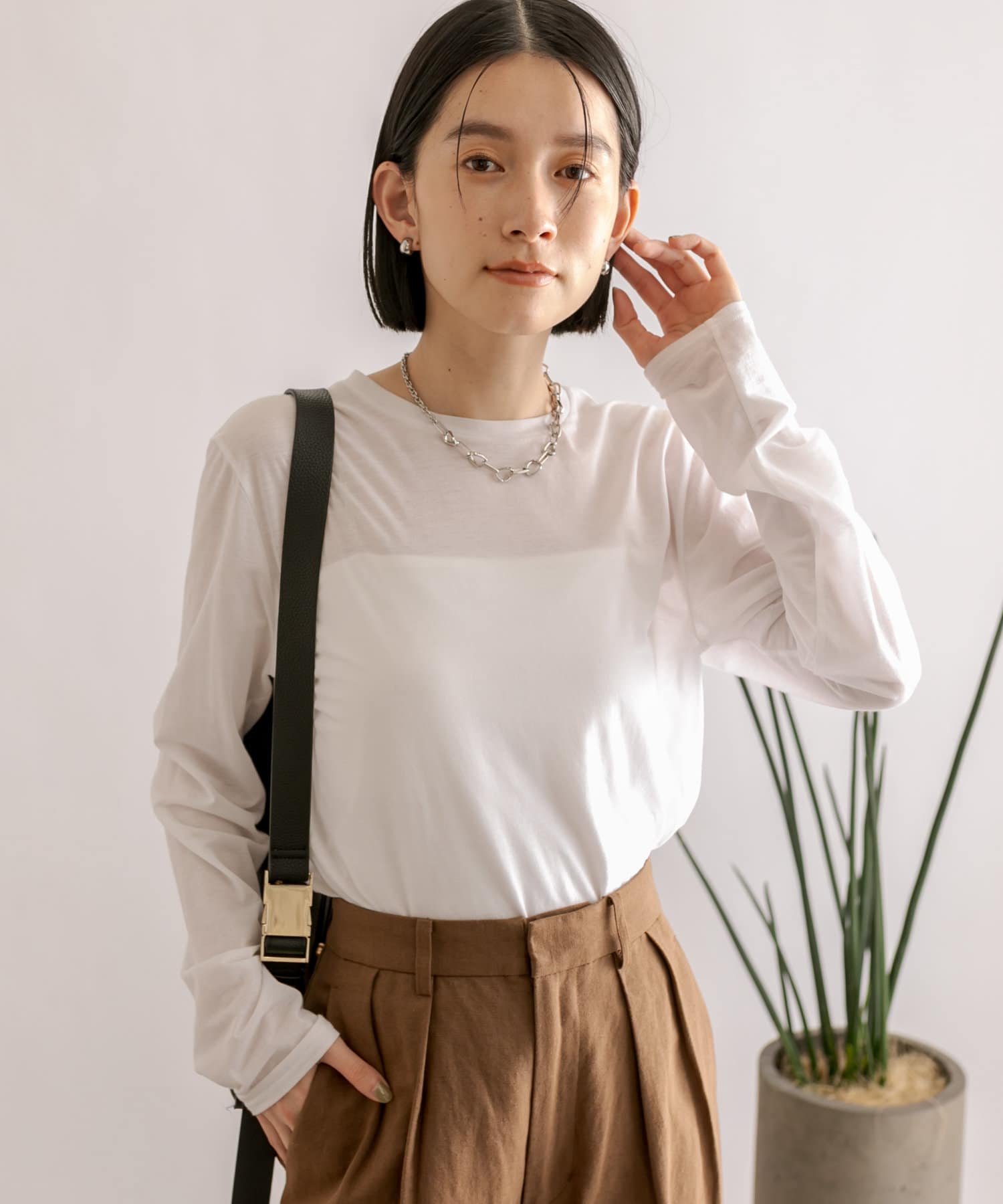 カジュアルなTシャツだけでなく、シャツやブラウスなど合わせやすいアイテムです。