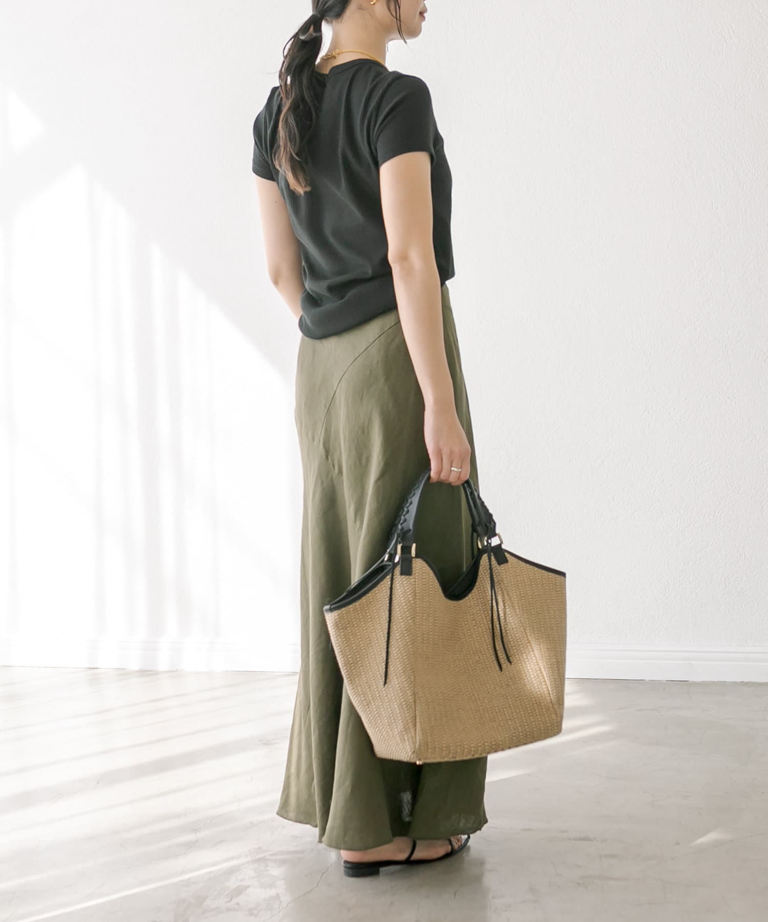 ラフィア風の素材を使用しており軽やかな印象のバッグです。