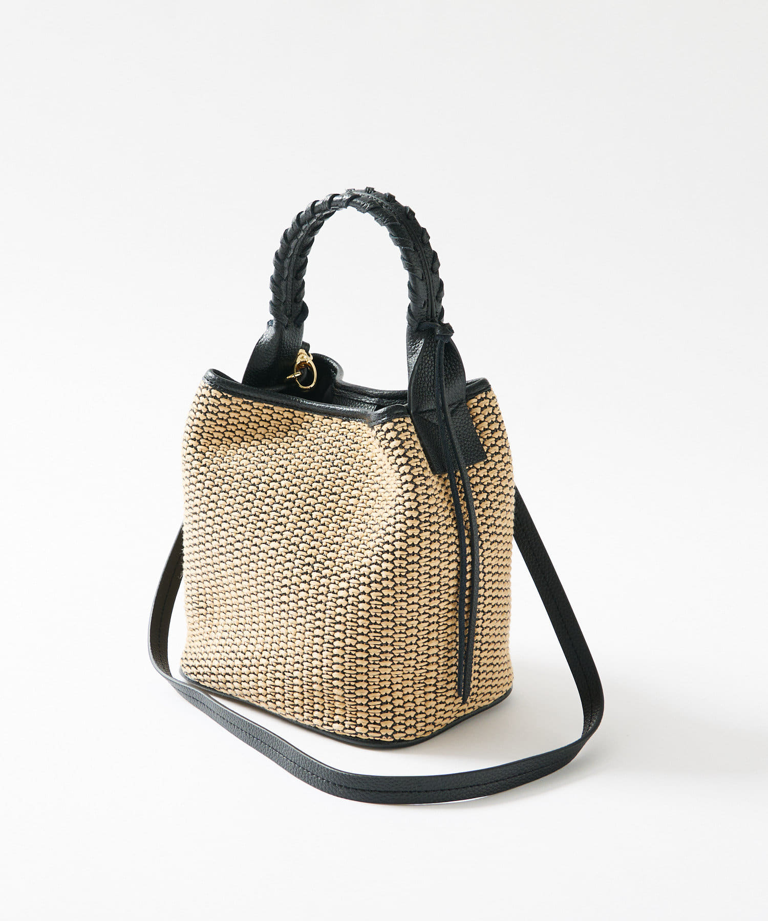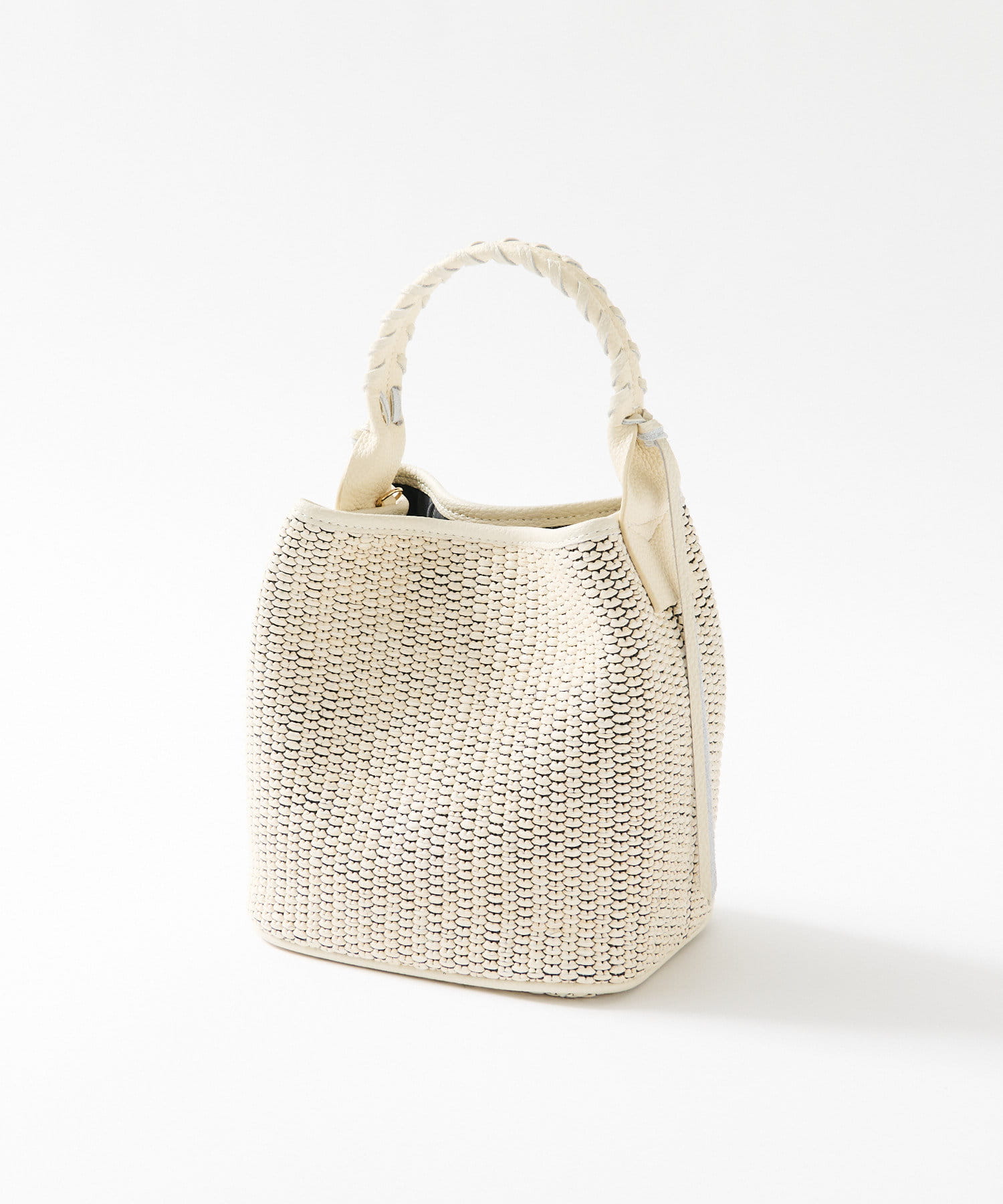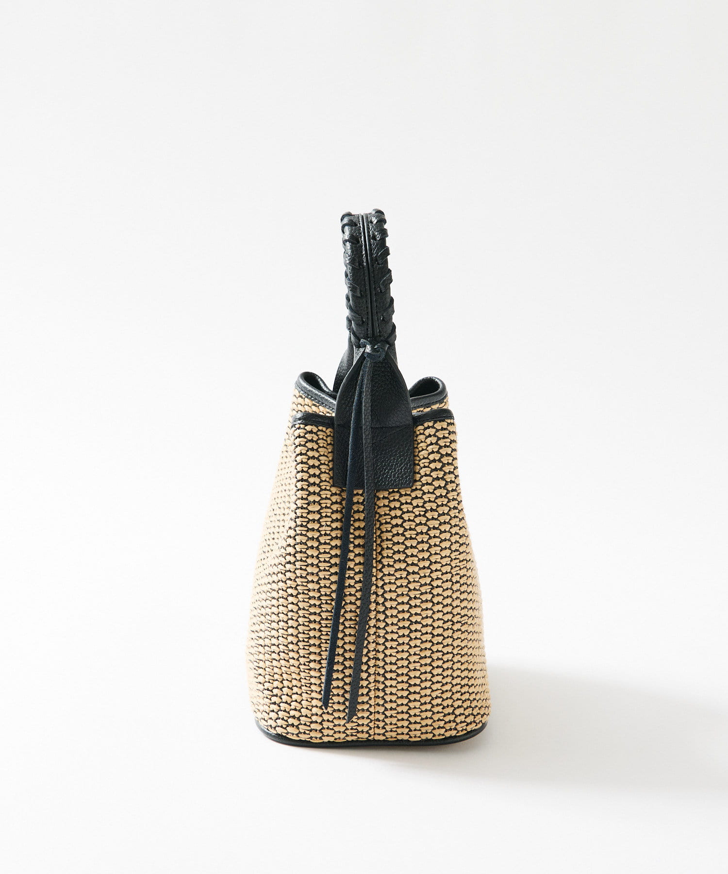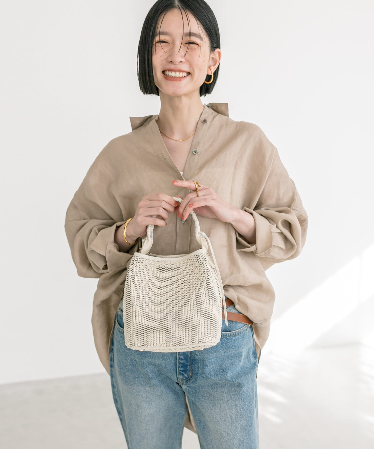 ラフィア風の素材を使用しており、軽やかな印象のバッグです。