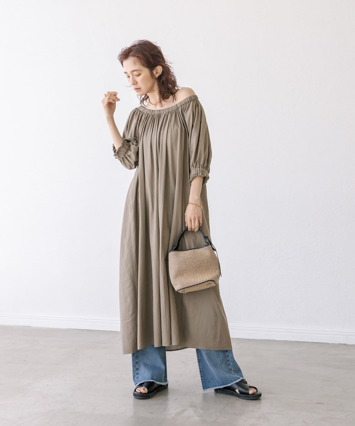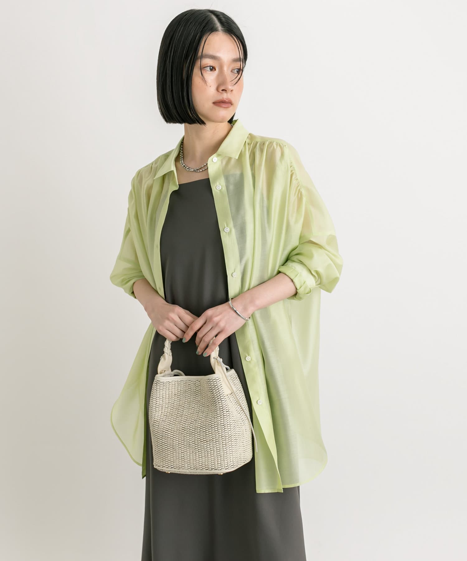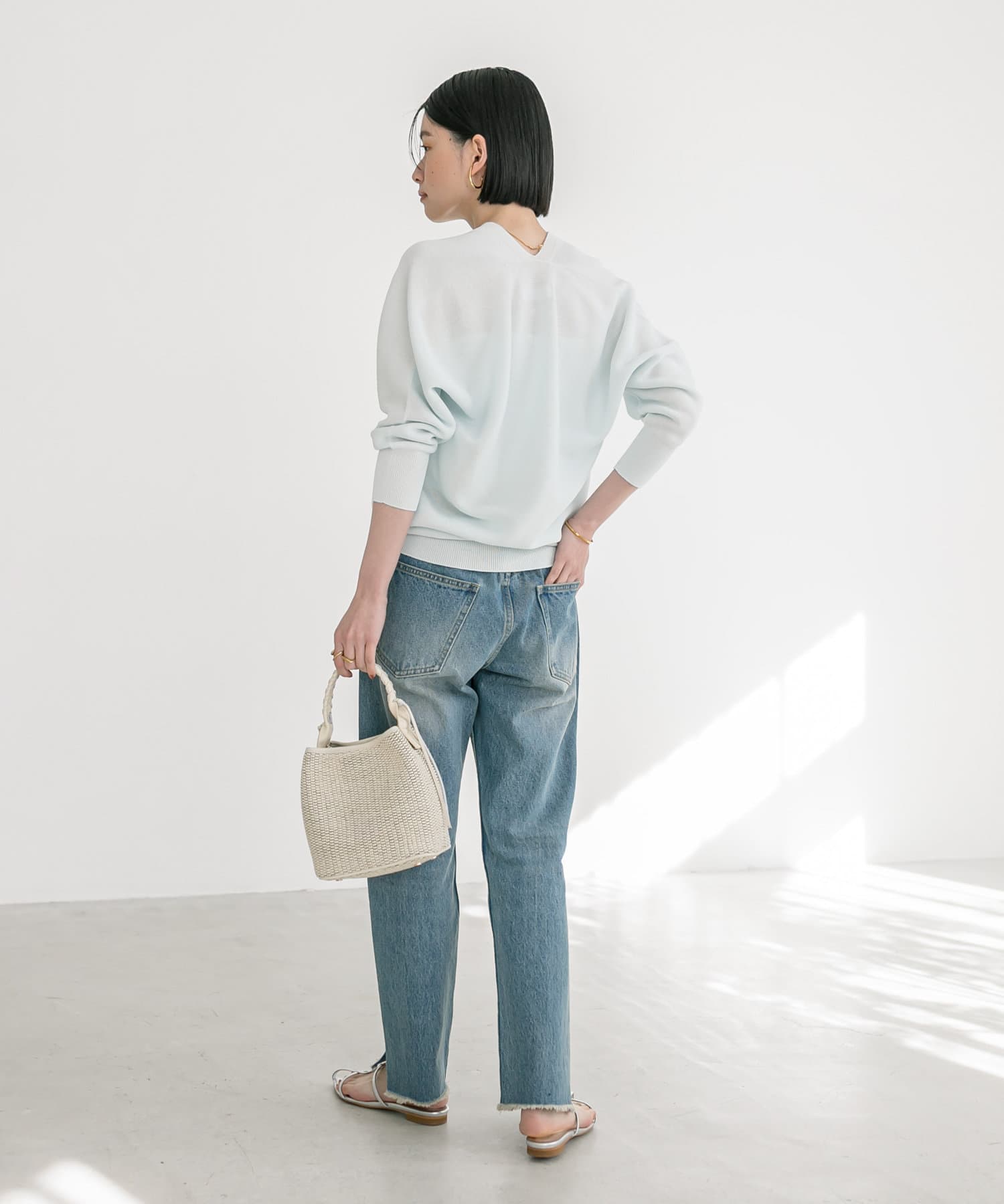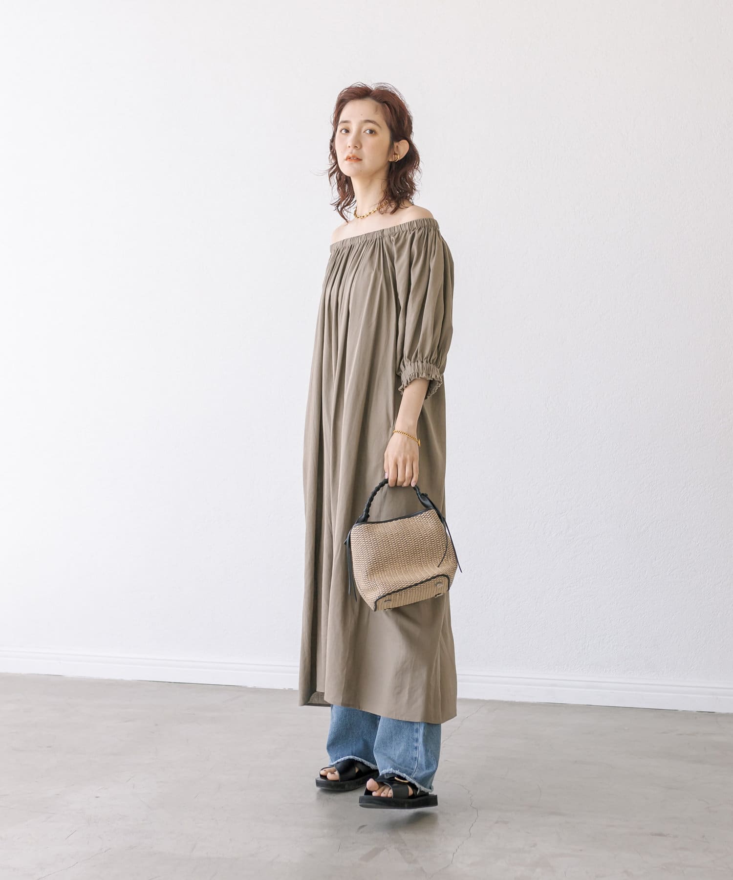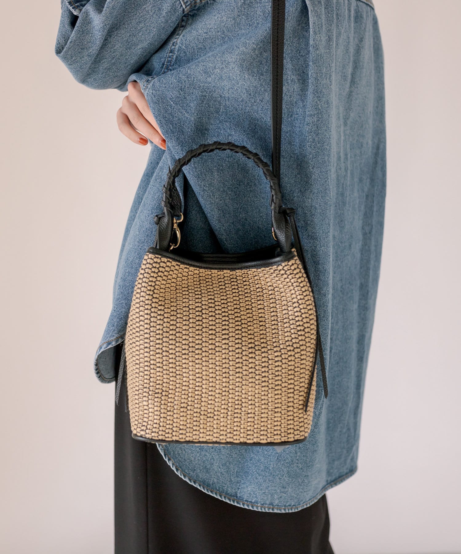 ラフィア風の素材を使用しており、軽やかな印象のバッグです。