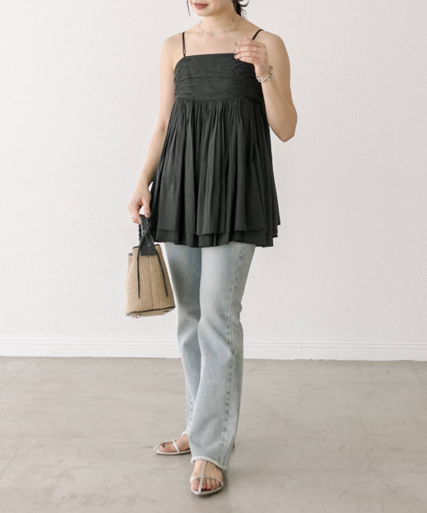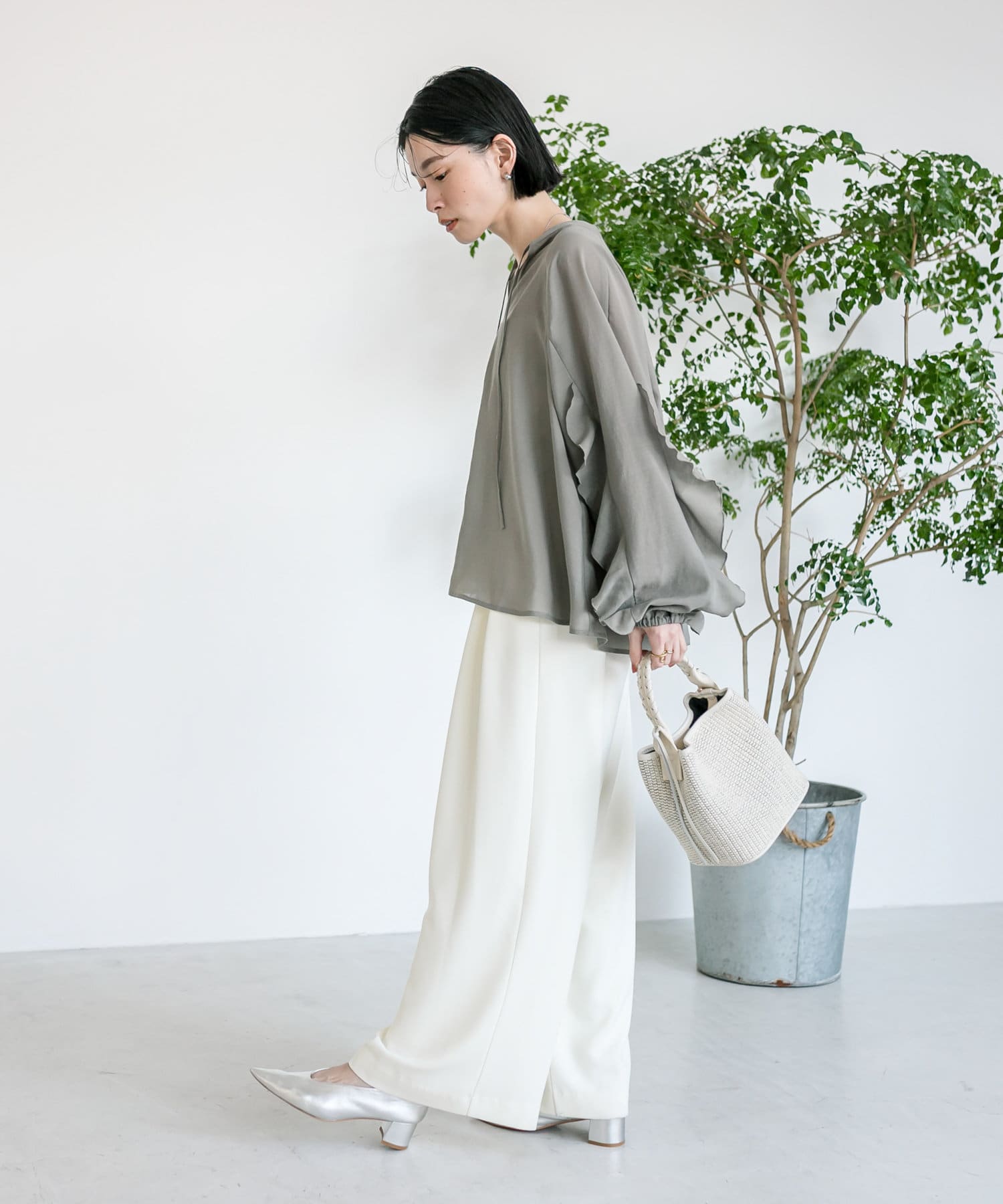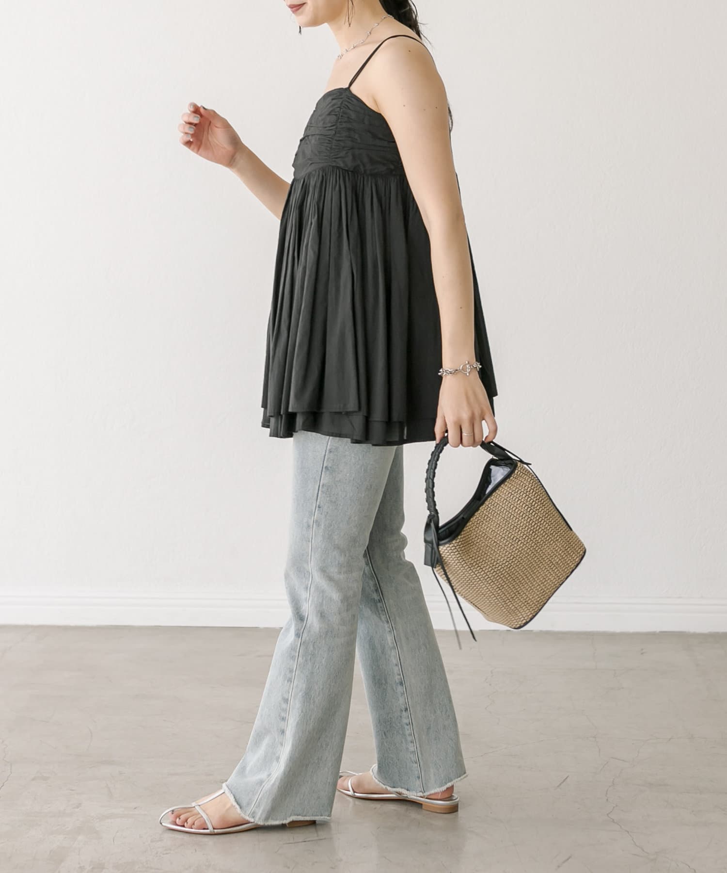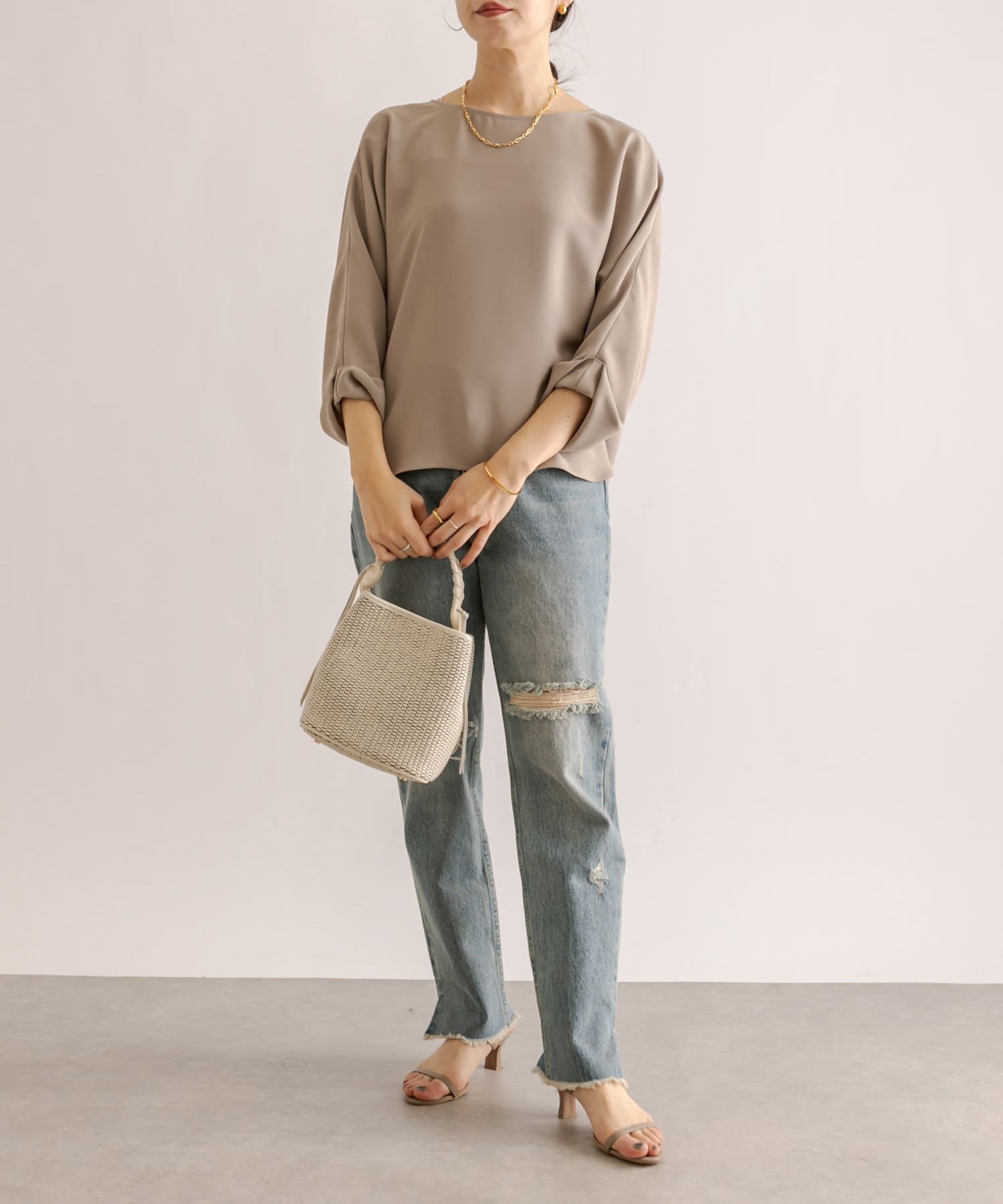 ラフィア風の素材を使用しており、軽やかな印象のバッグです。