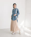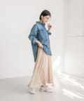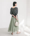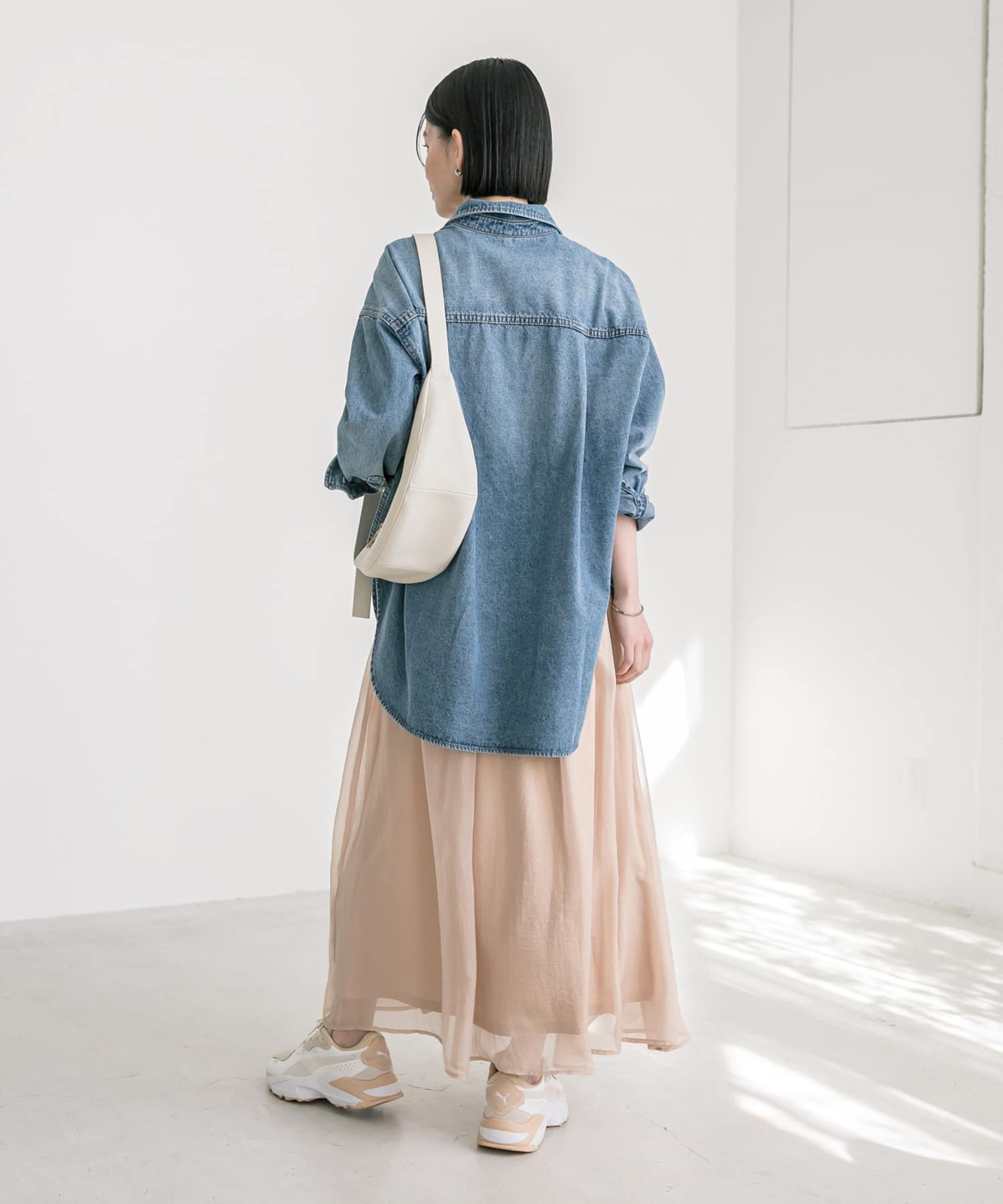 ふんわり系のニットから、スウェットなどのカジュアルアイテムまで、幅広いテイストと合わせることの出来る着回し力の高い一枚です。