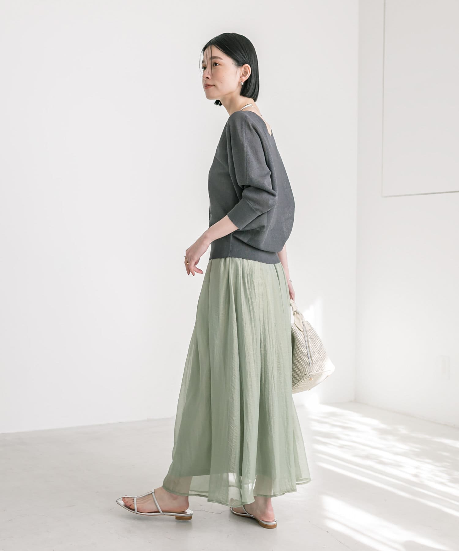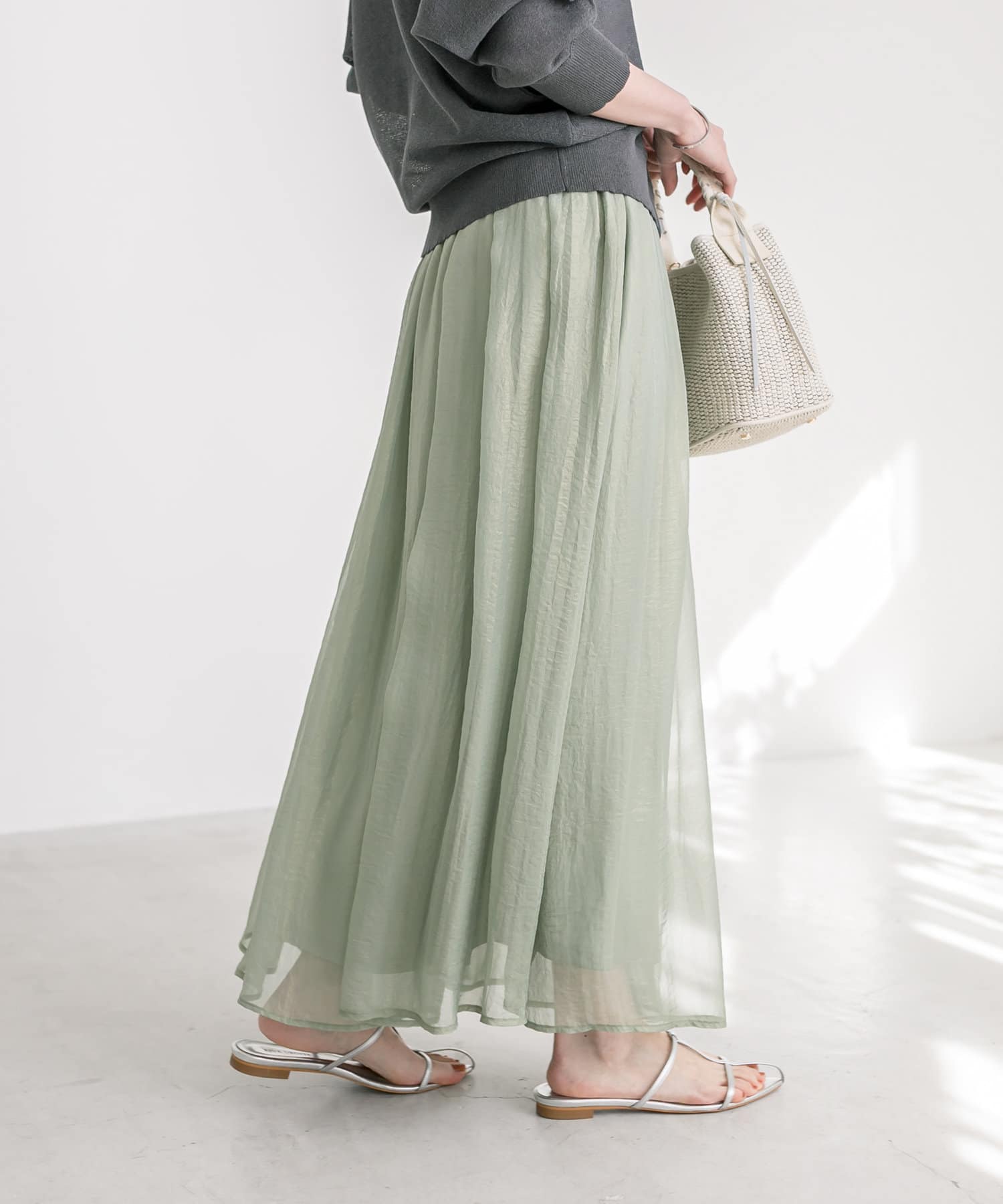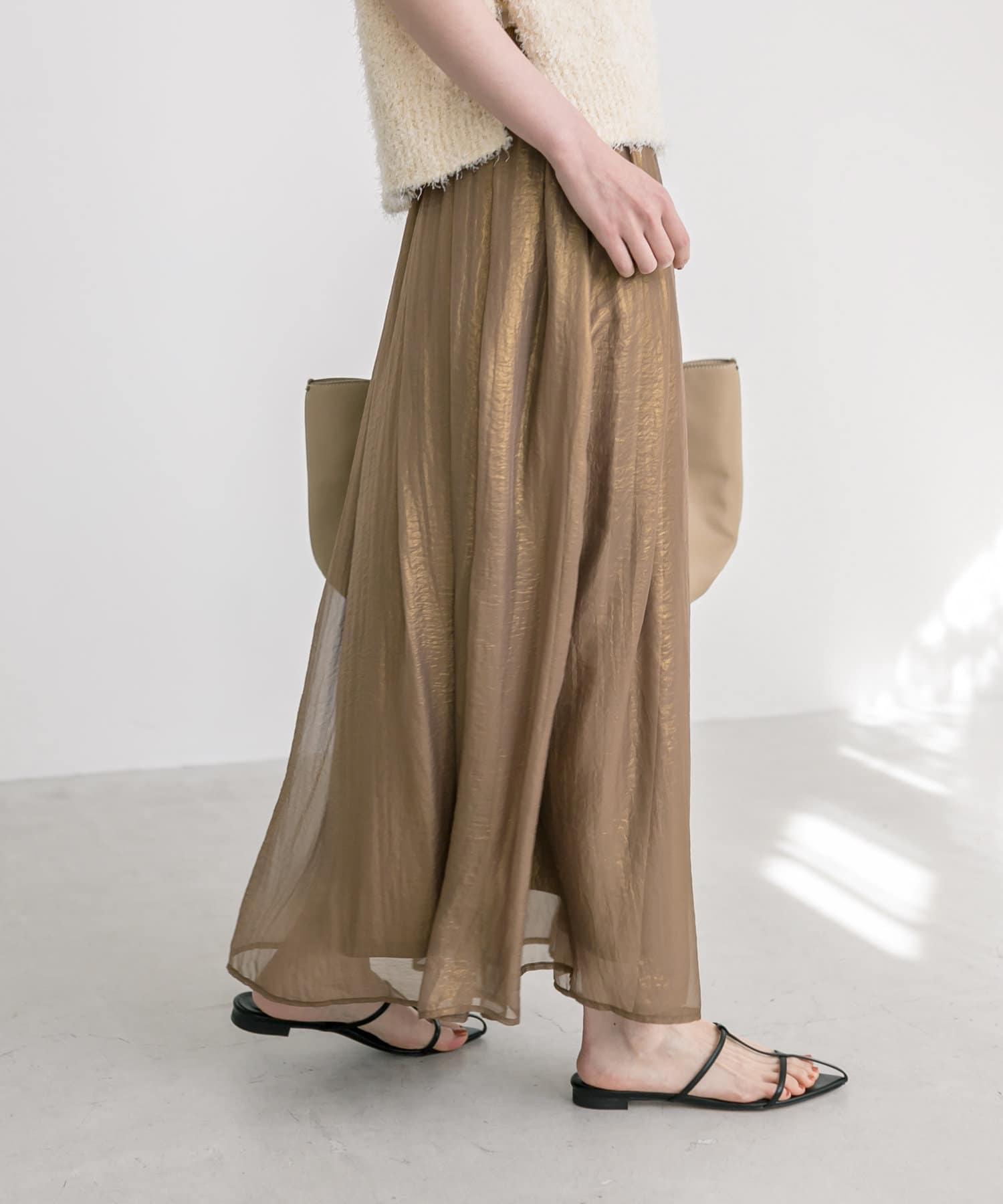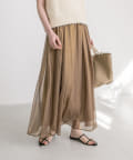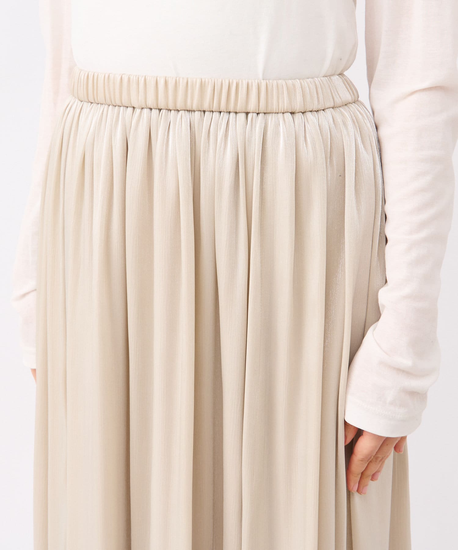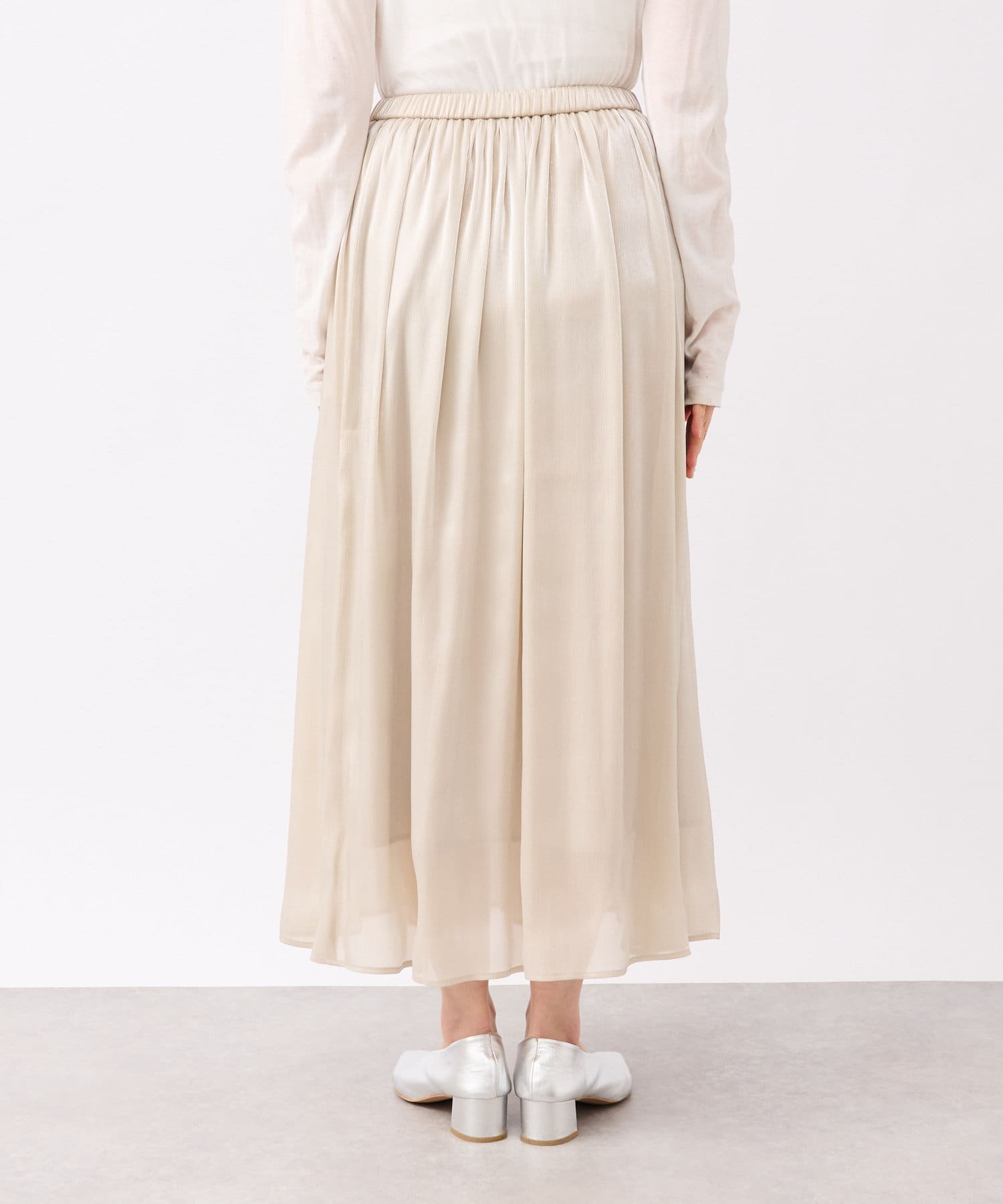グロッシーな輝きと、シアーの軽やかさがMIXされたギャザースカート。