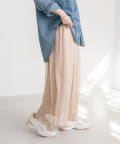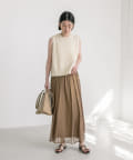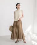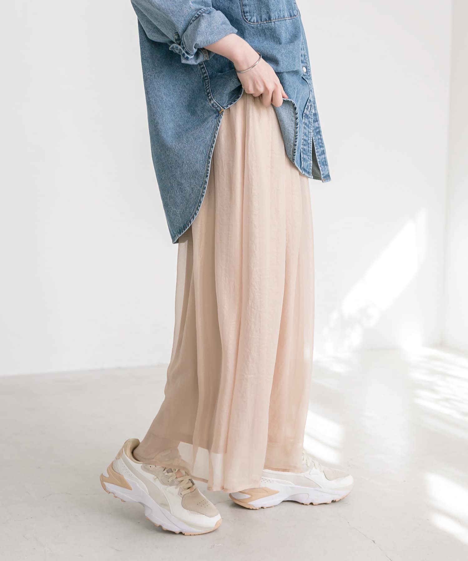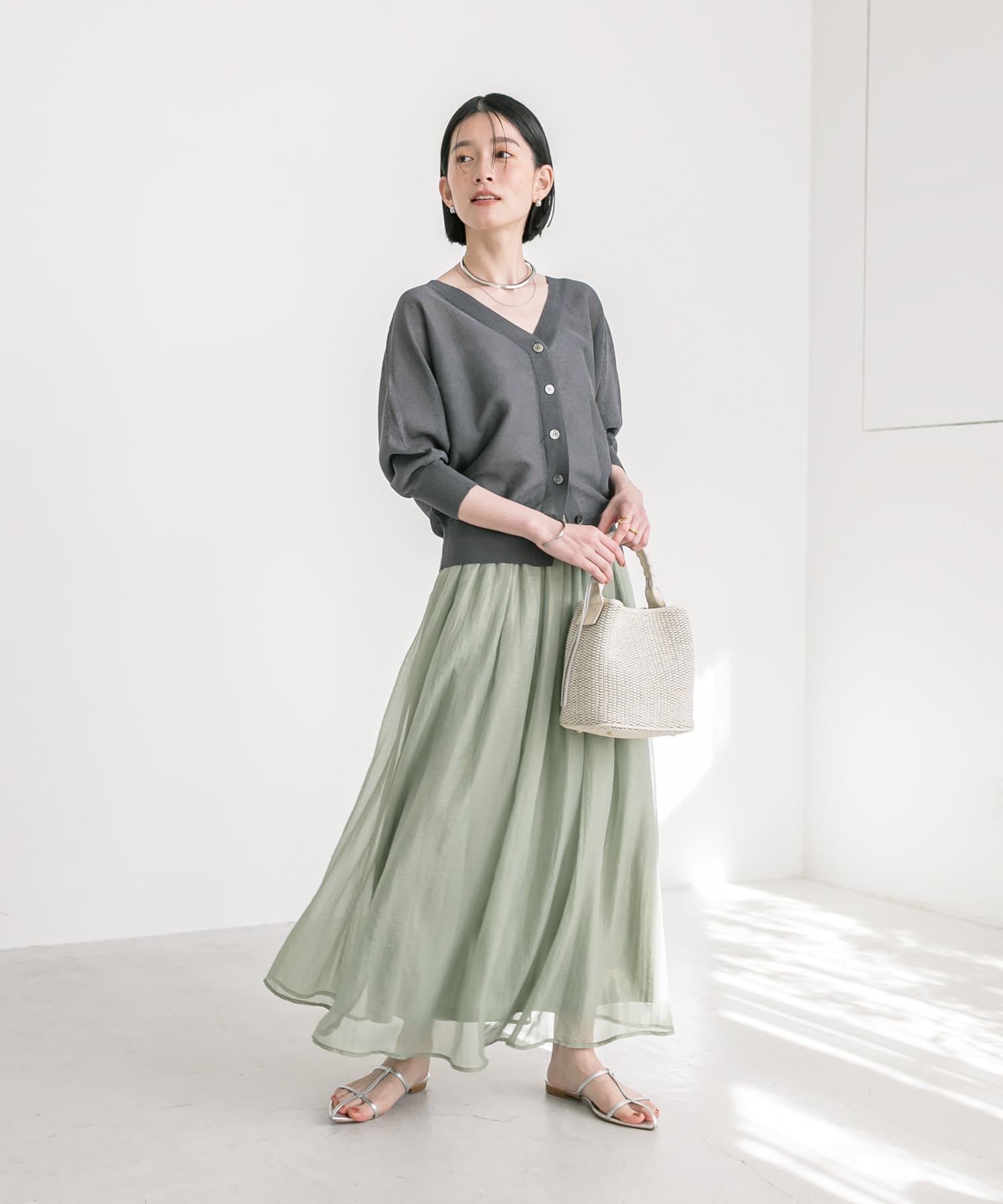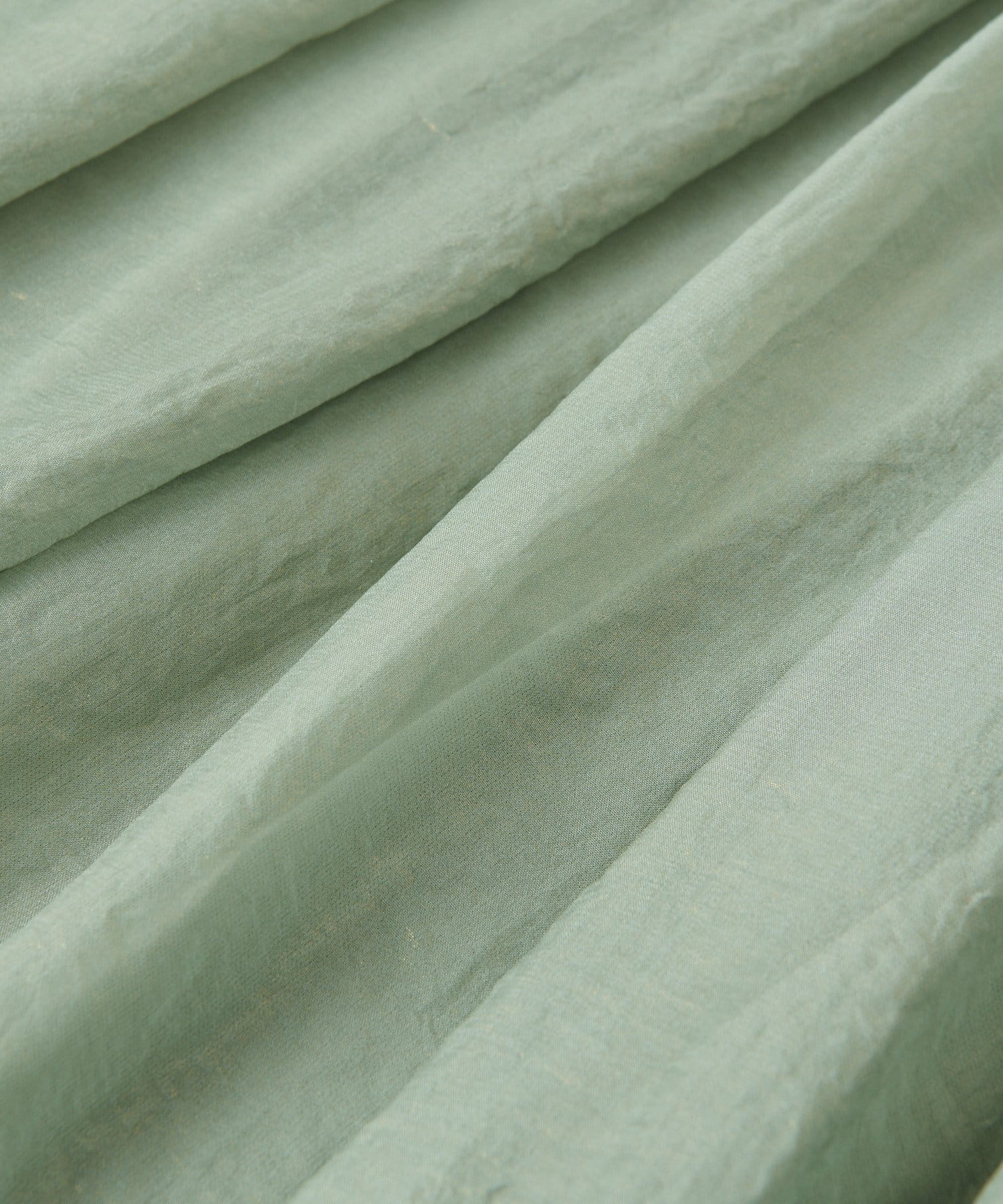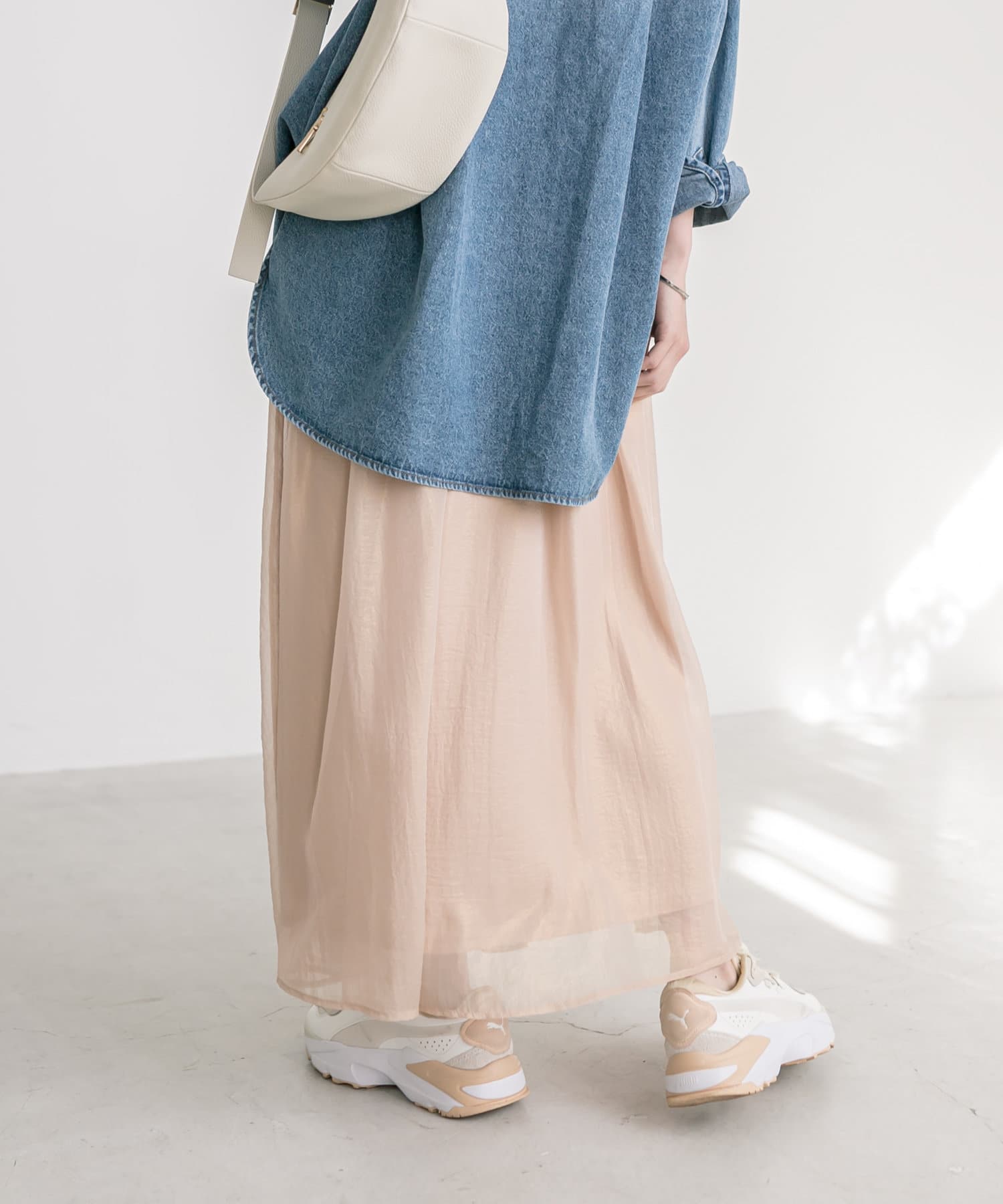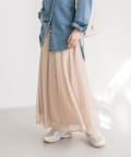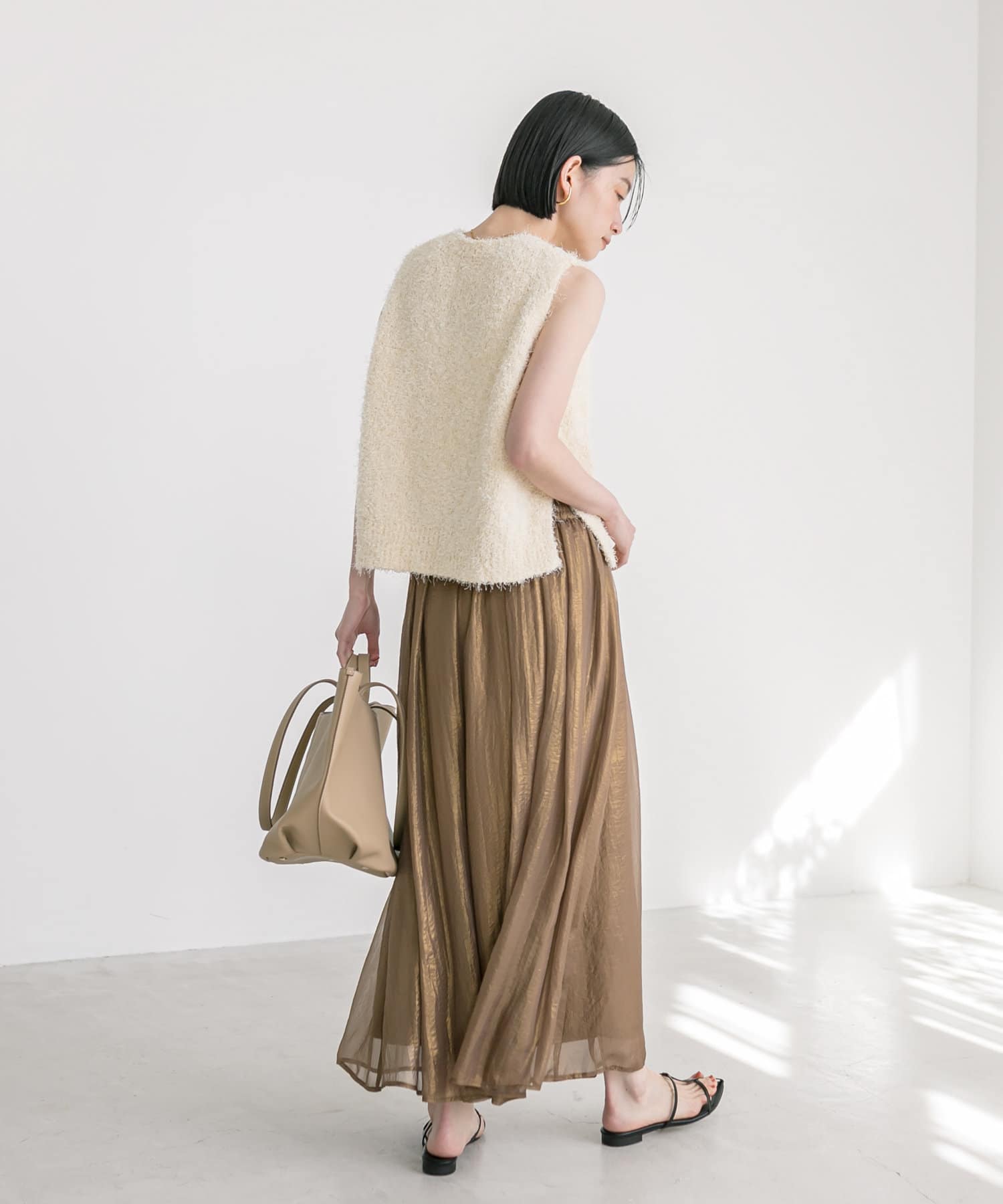 グロッシーな輝きと、シアーの軽やかさがMIXされたギャザースカート。