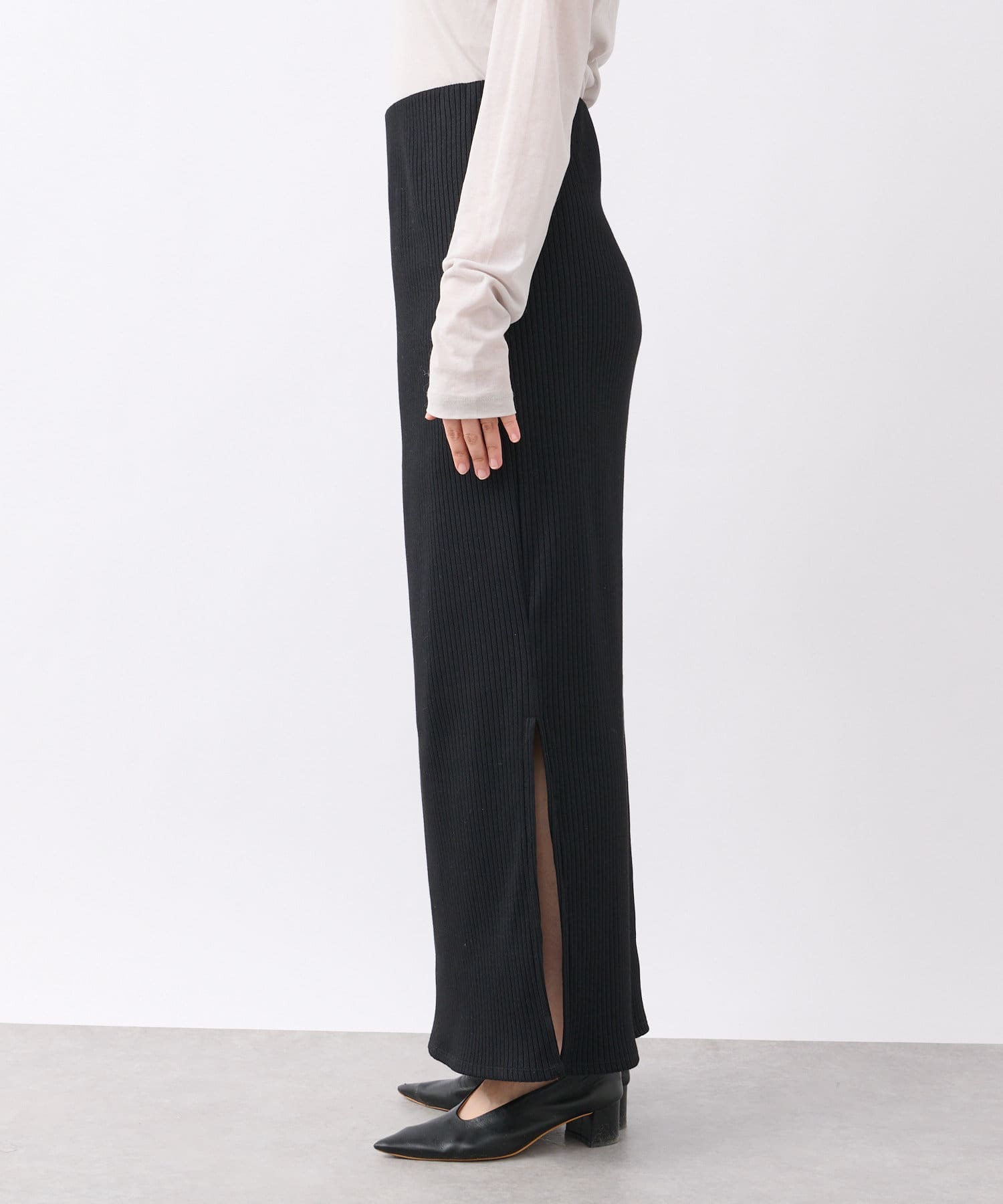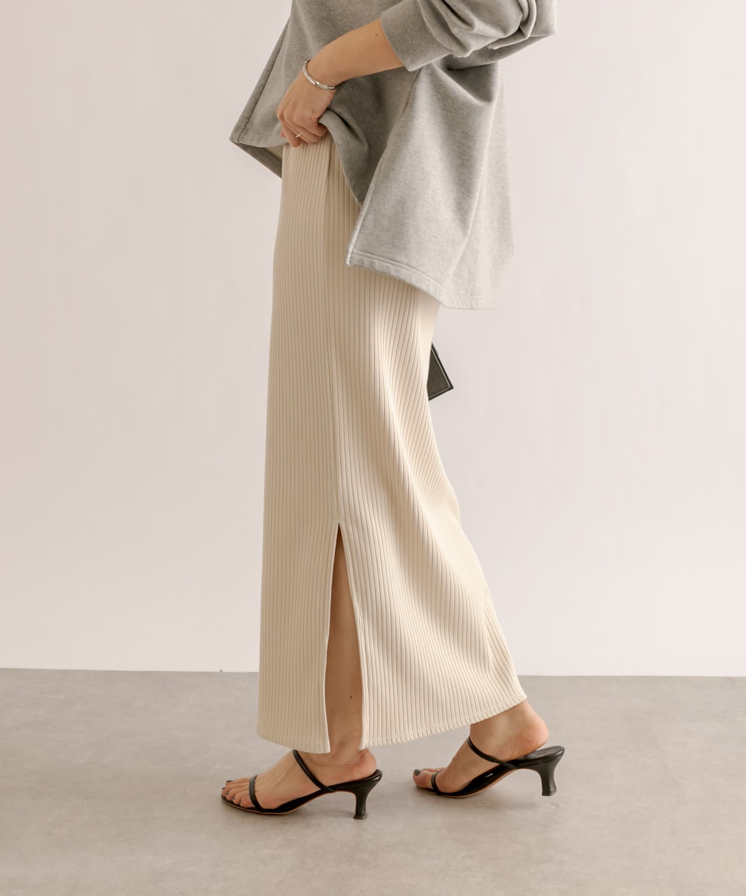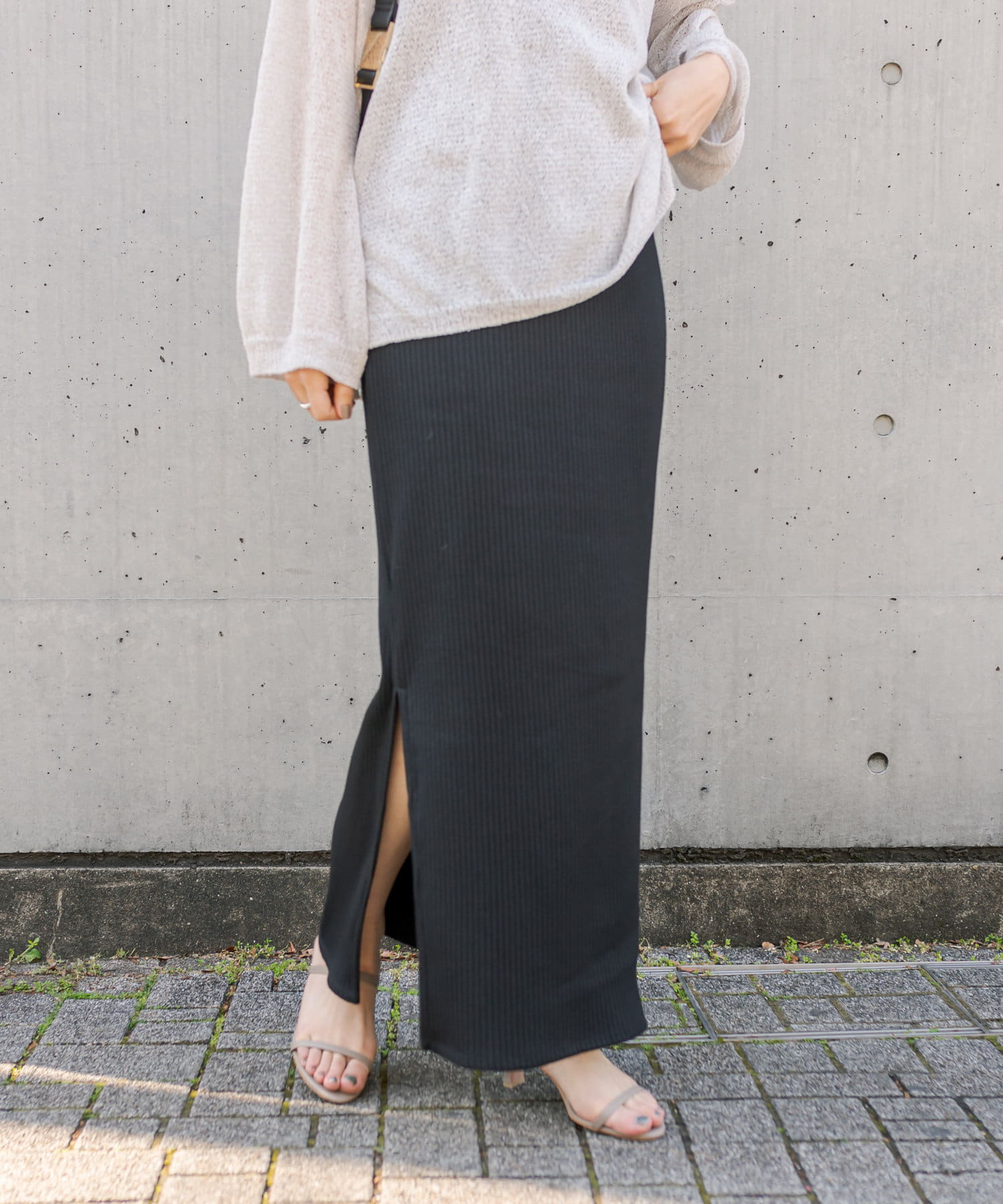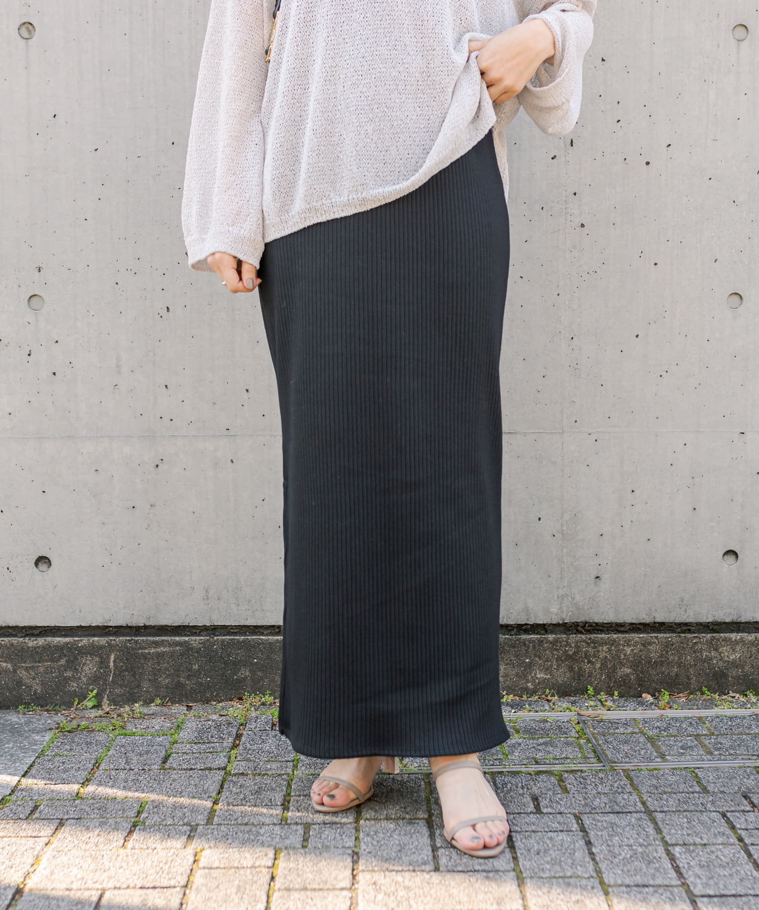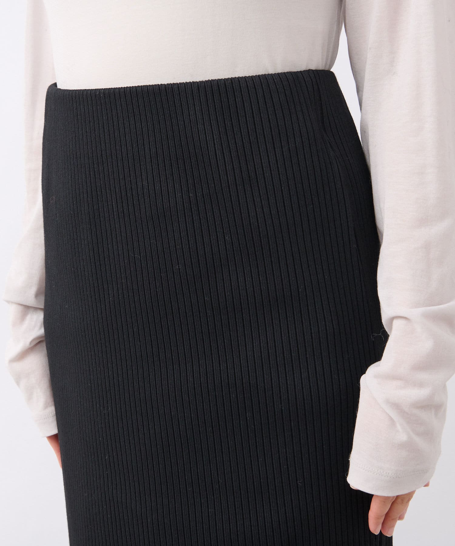 リブ素材を使用し、やわらかな着心地が魅力のタイトスカート。