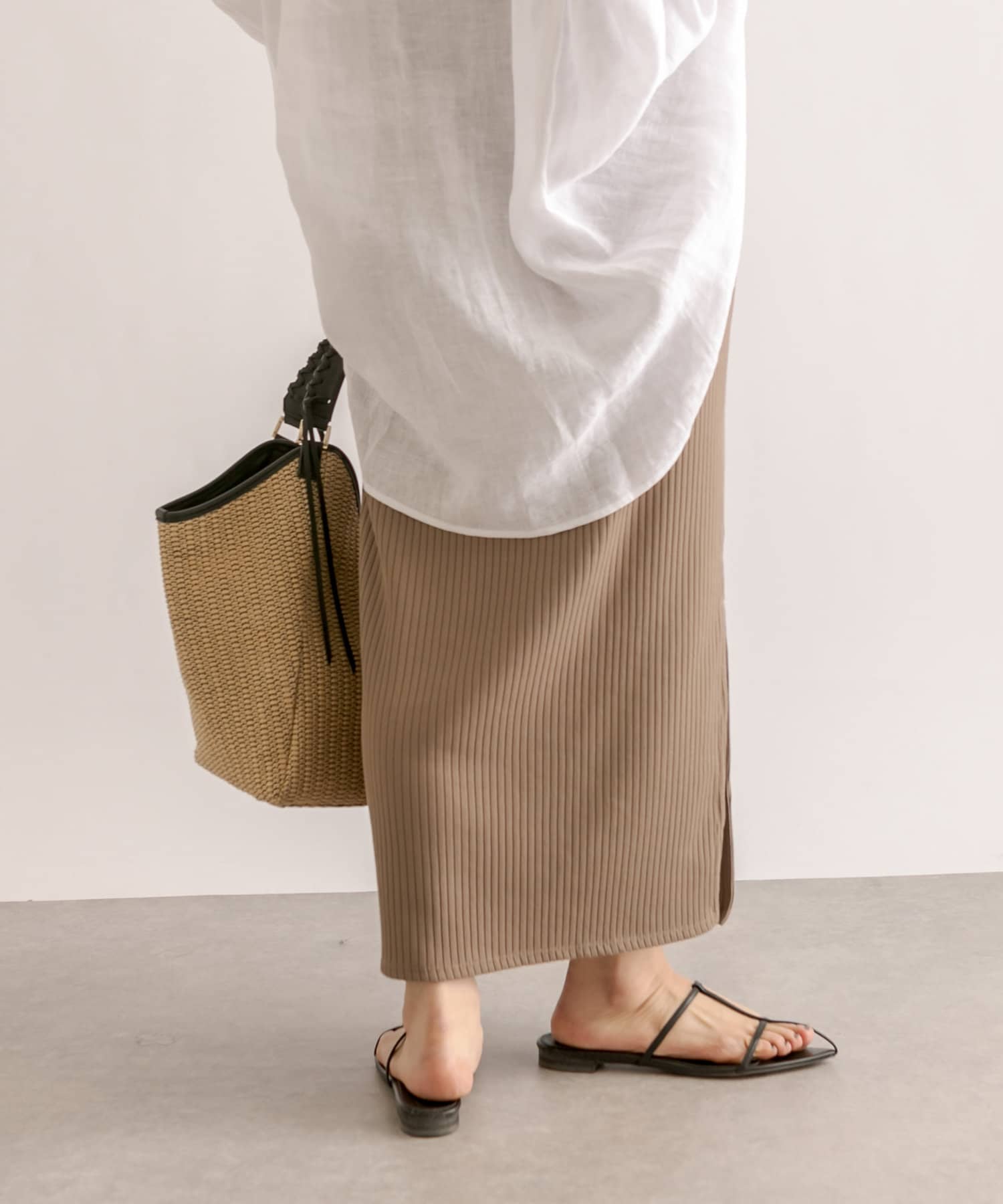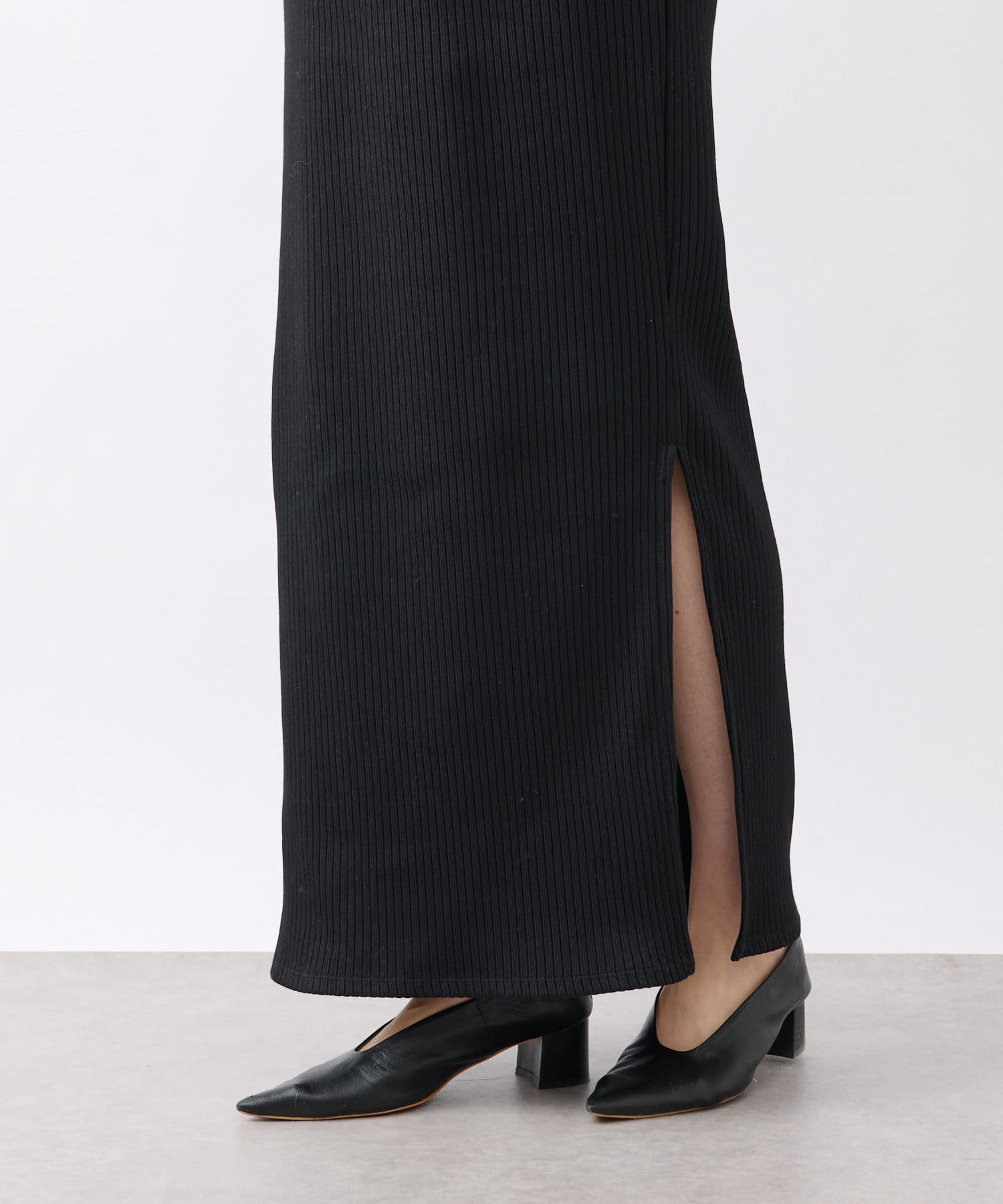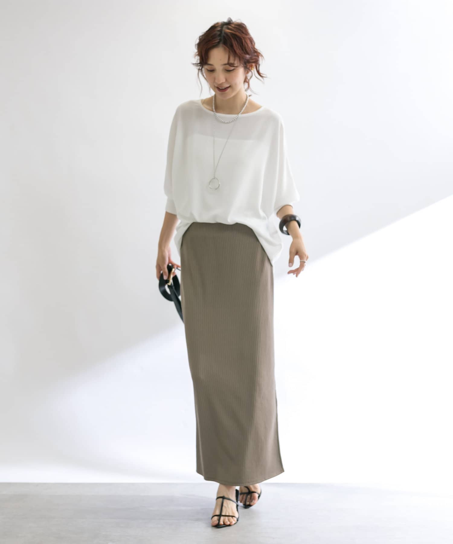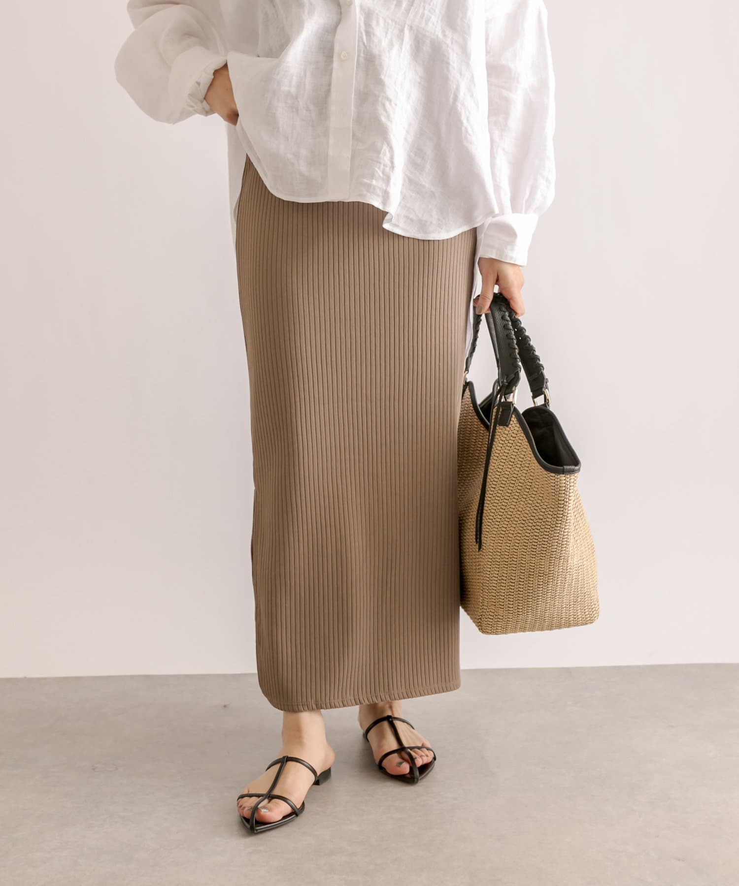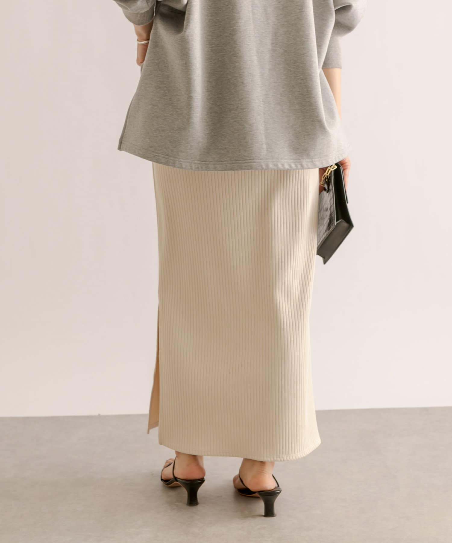 リブ素材を使用し、やわらかな着心地が魅力のタイトスカート。