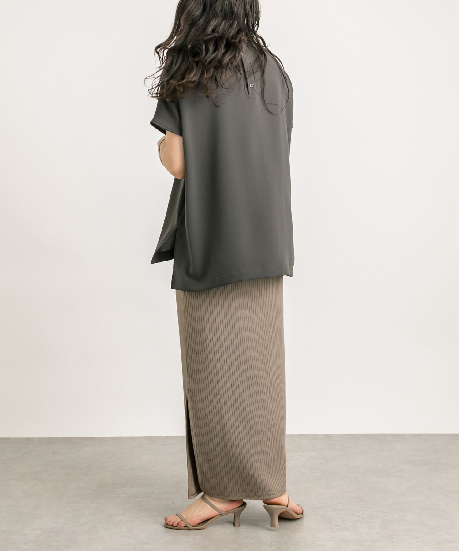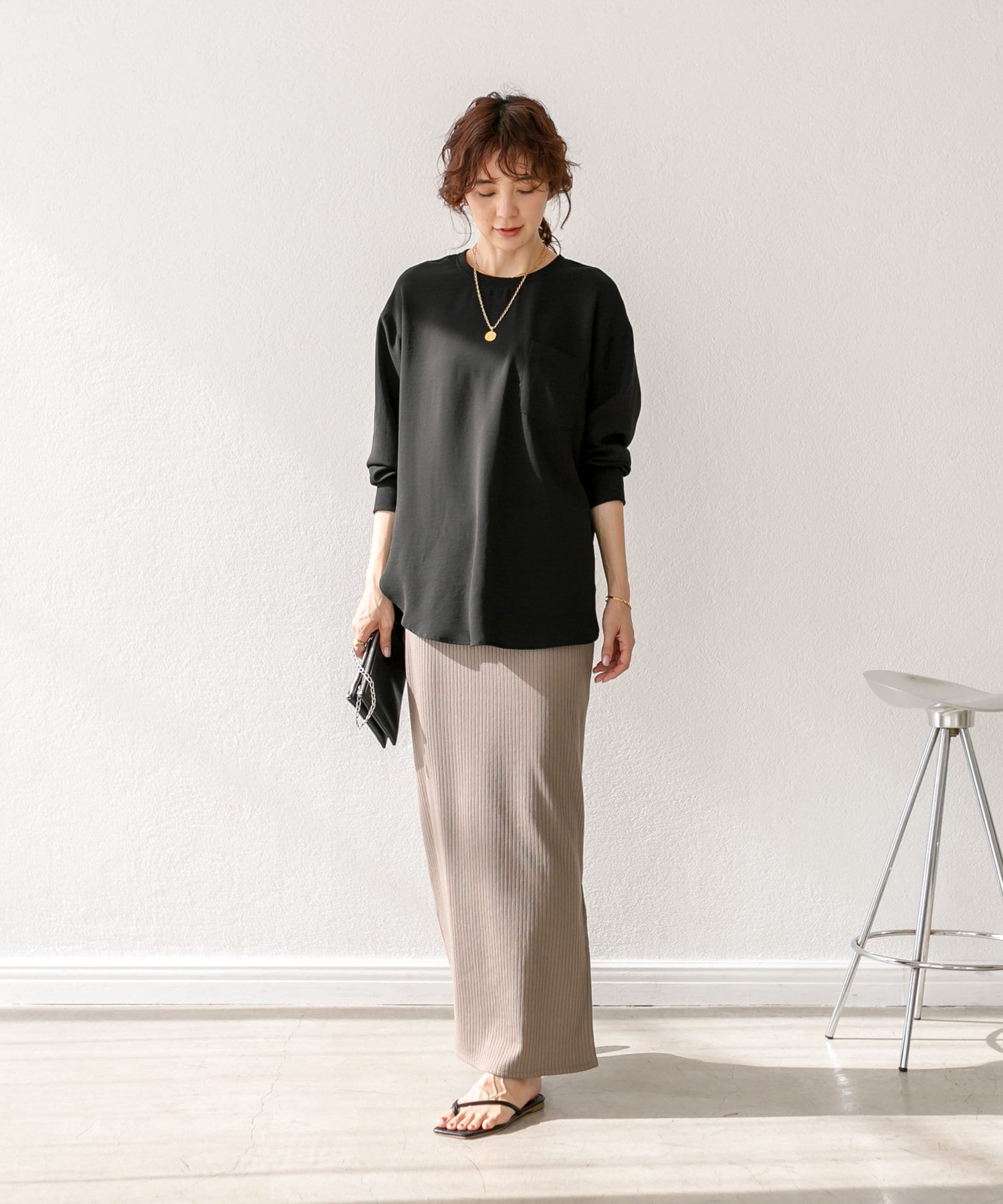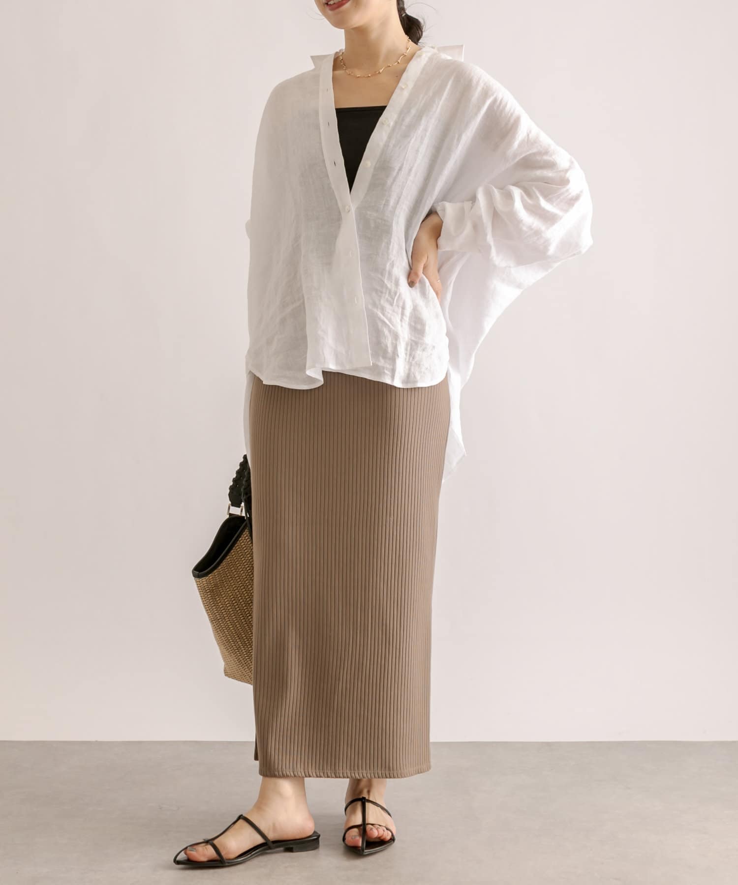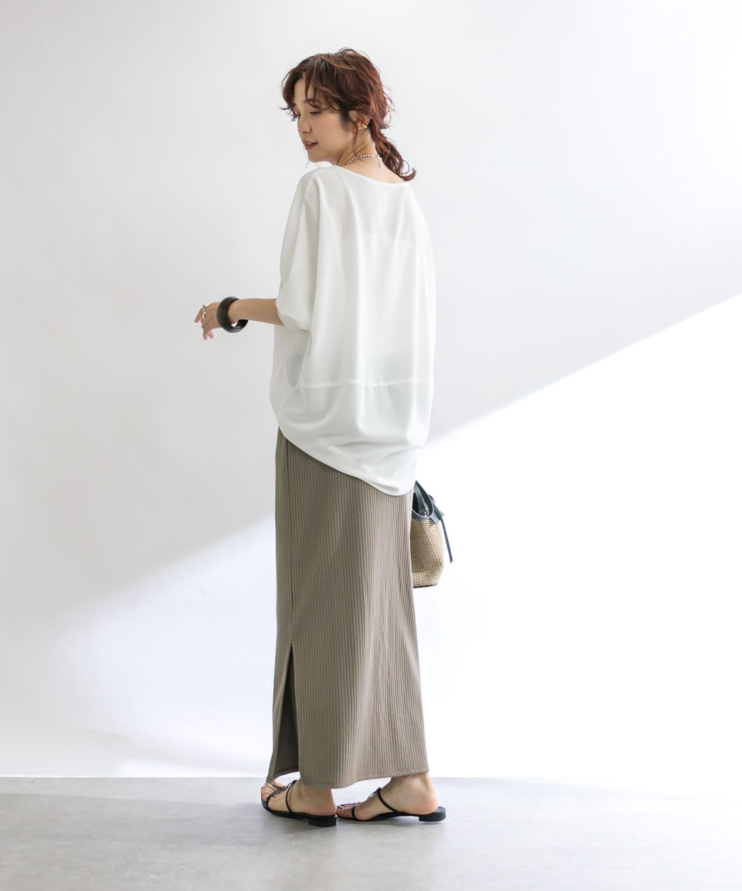 リブ素材を使用し、やわらかな着心地が魅力のタイトスカート。