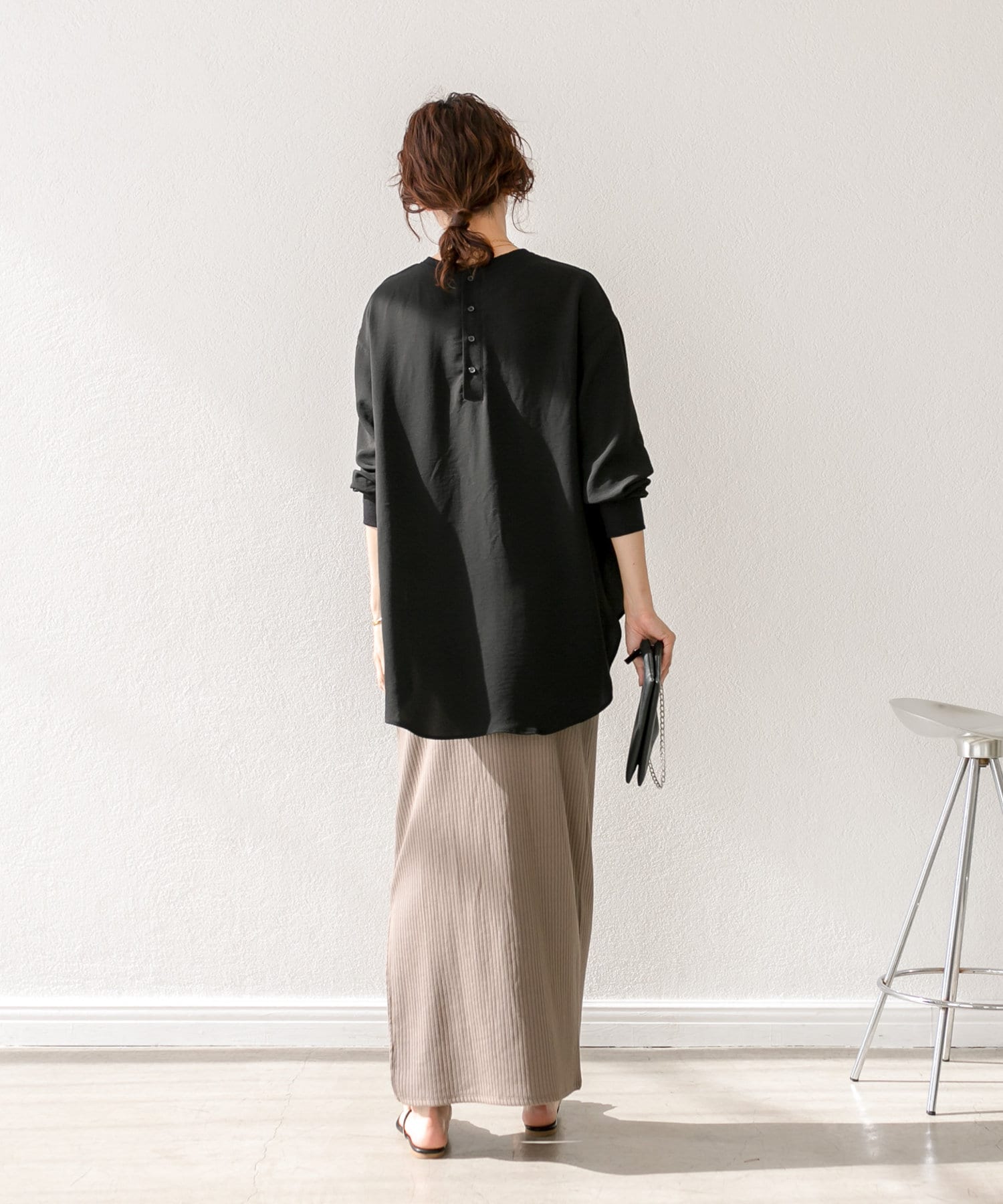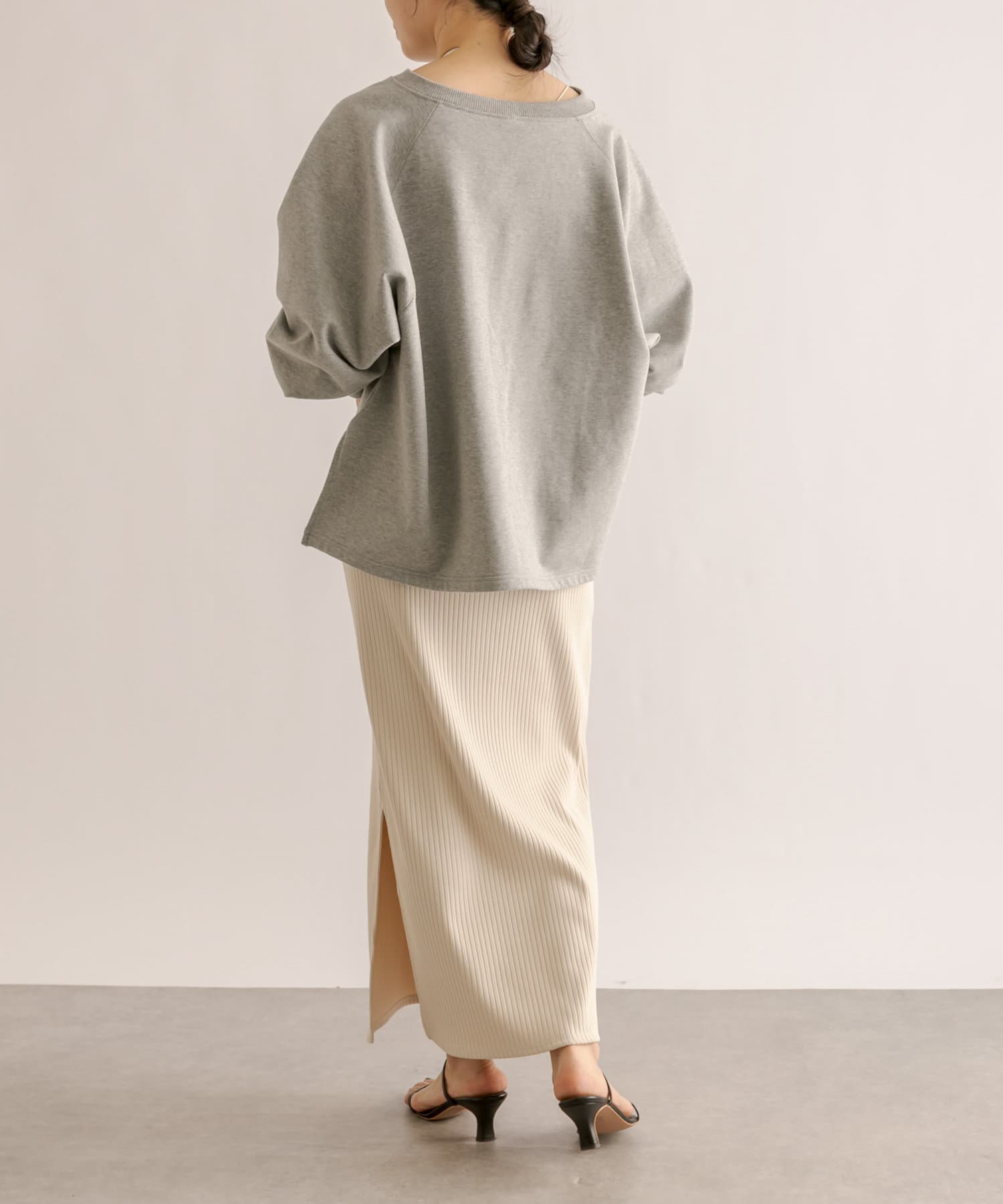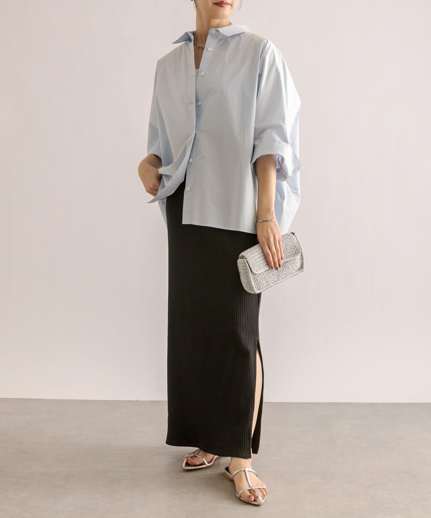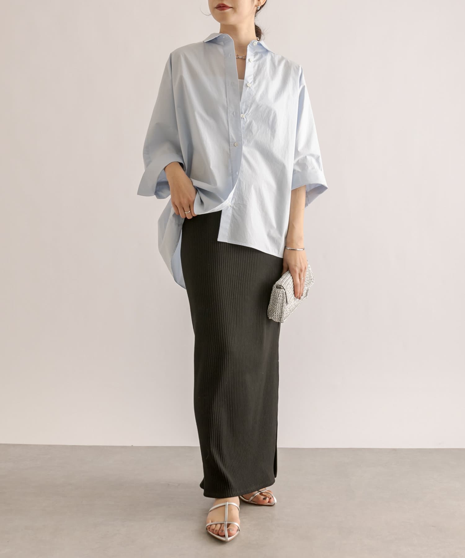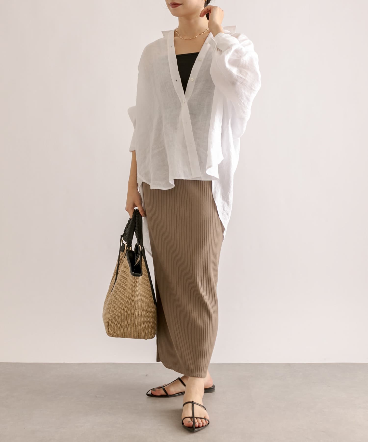 リブ素材を使用し、やわらかな着心地が魅力のタイトスカート。