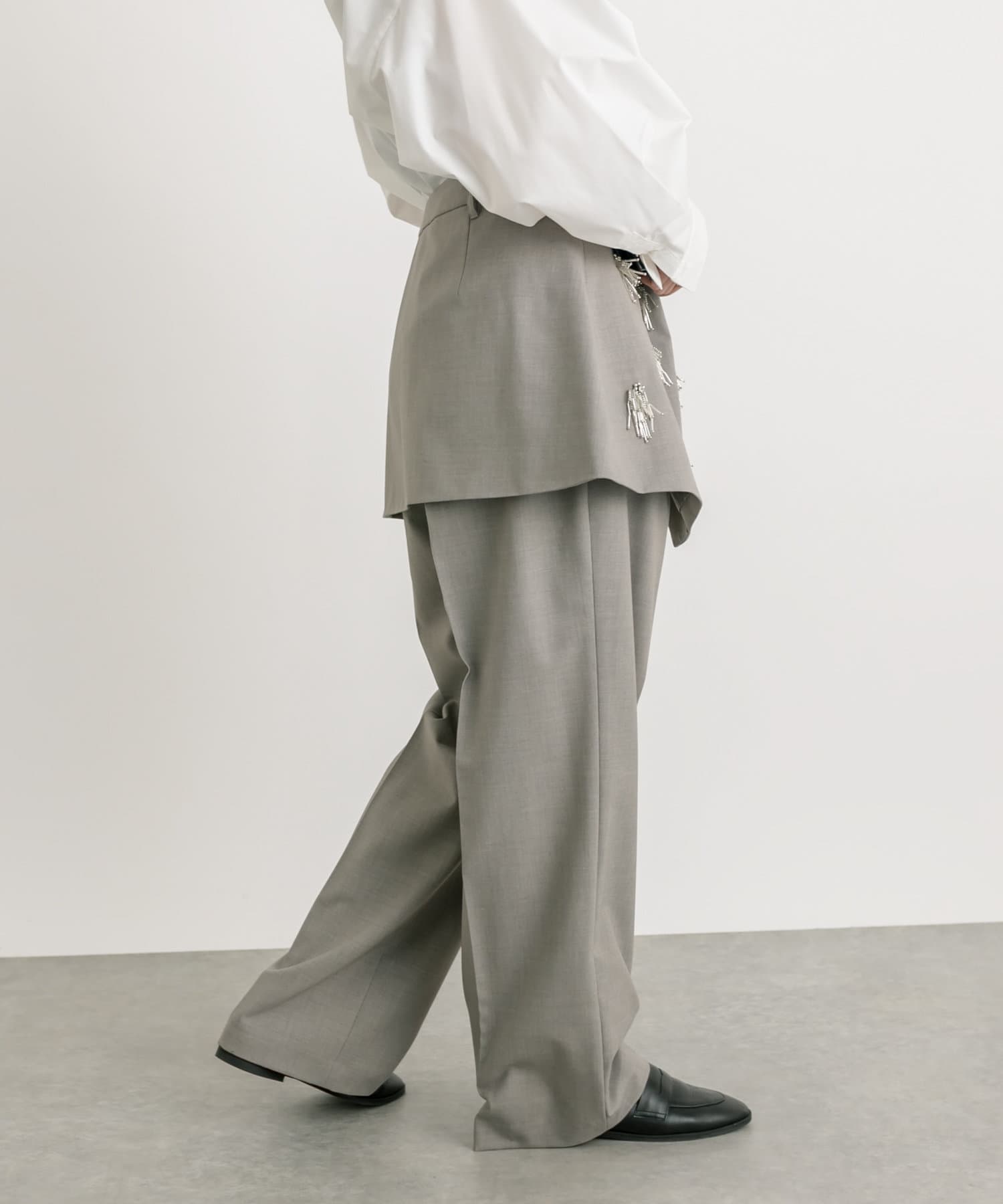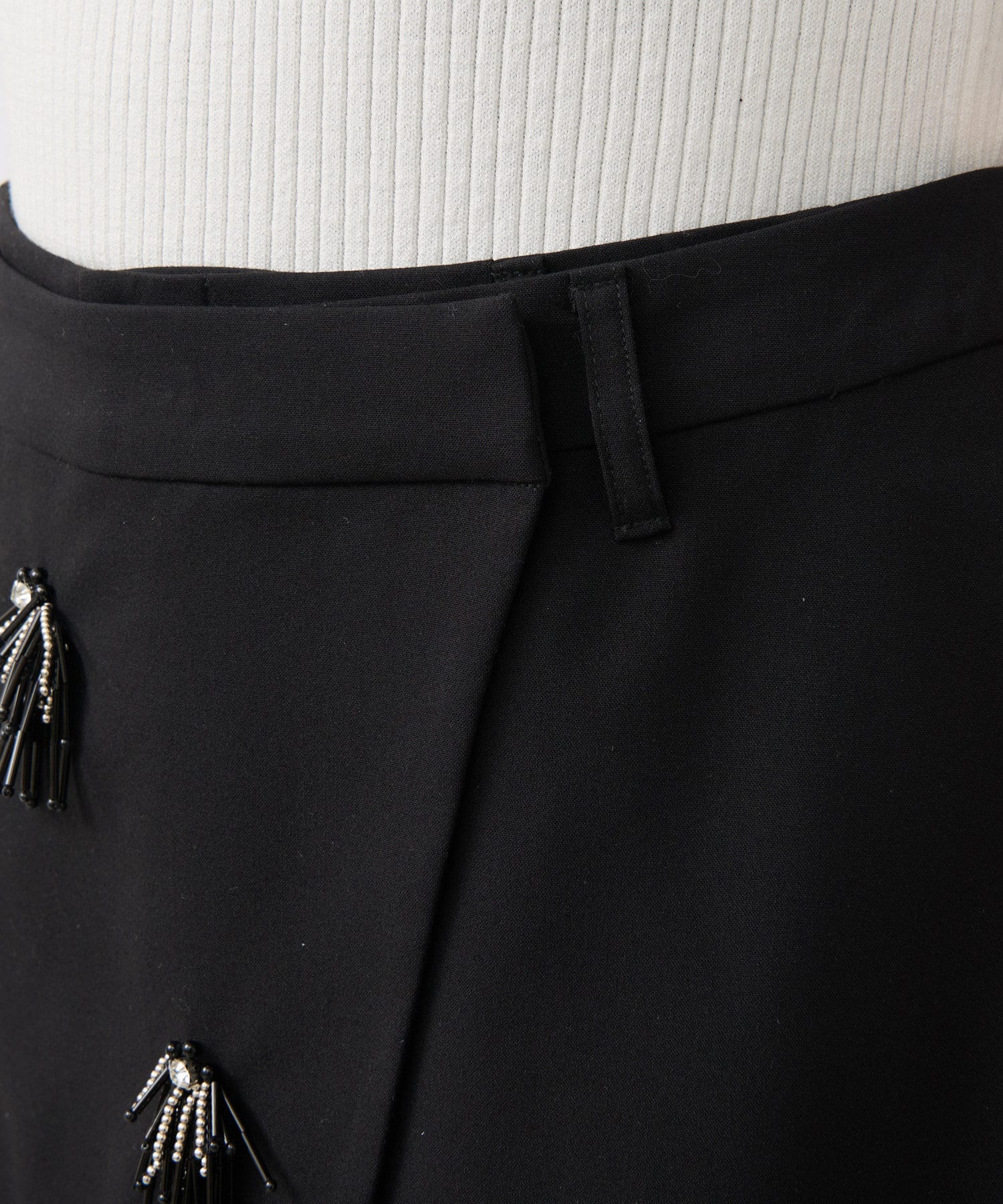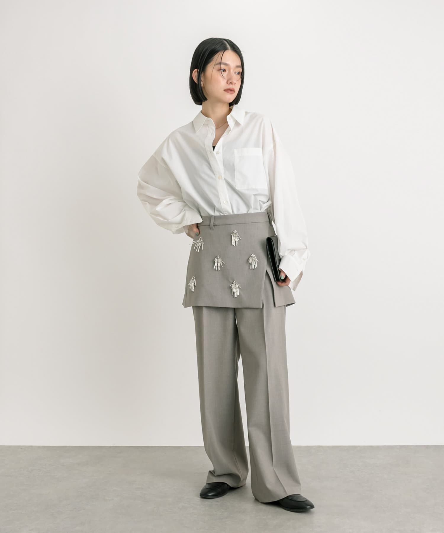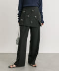 ビジューのワンポイントが付いたスカートとパンツがセットになったアイテム。
