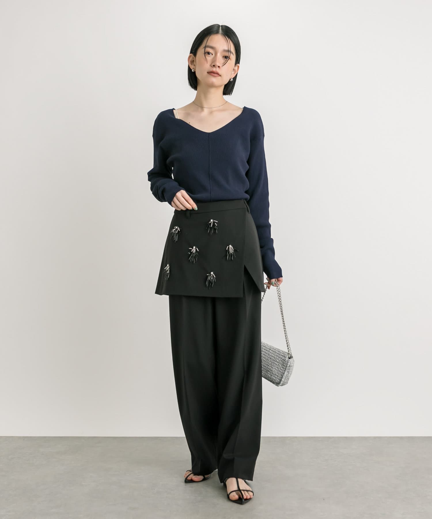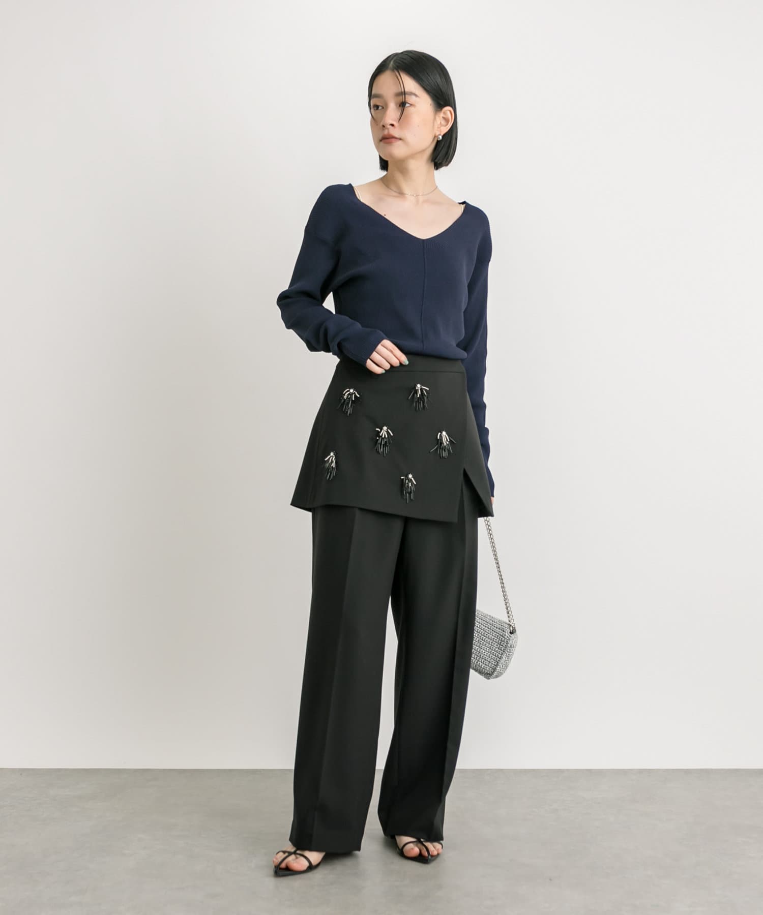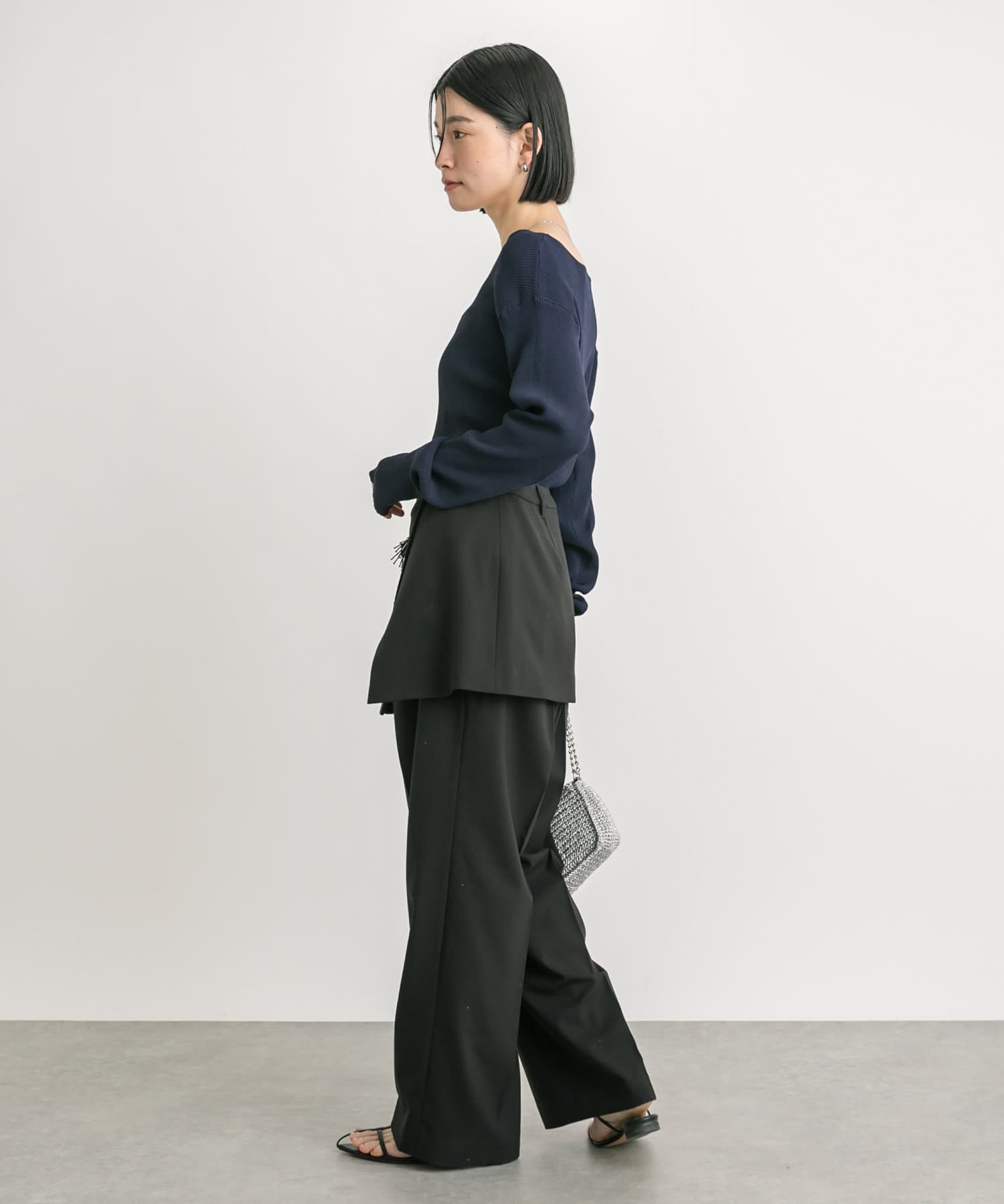 トレンドのスカートパンツを大人も楽しめる上品なデザインに。