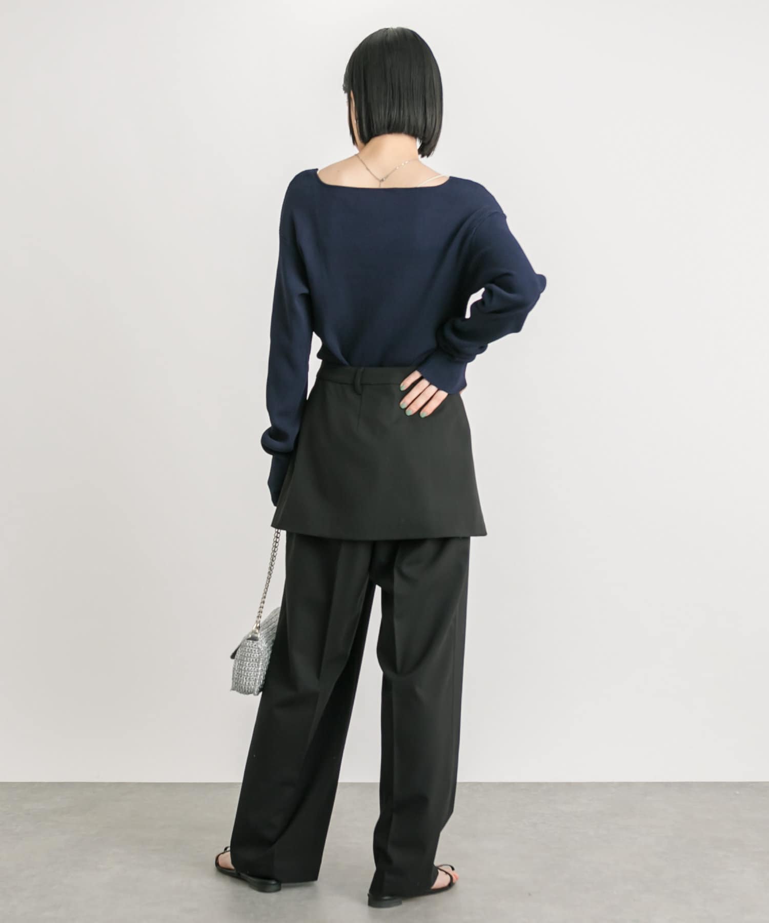 シアーニットやショート丈のトップスと合わせていただくとよりこなれ感のある着こなしになりおすすめです。