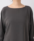 リブ付きの袖を暑いときはブラウジングして、冷房や日差しが気になるときは袖口を伸ばして着用いただくと便利。