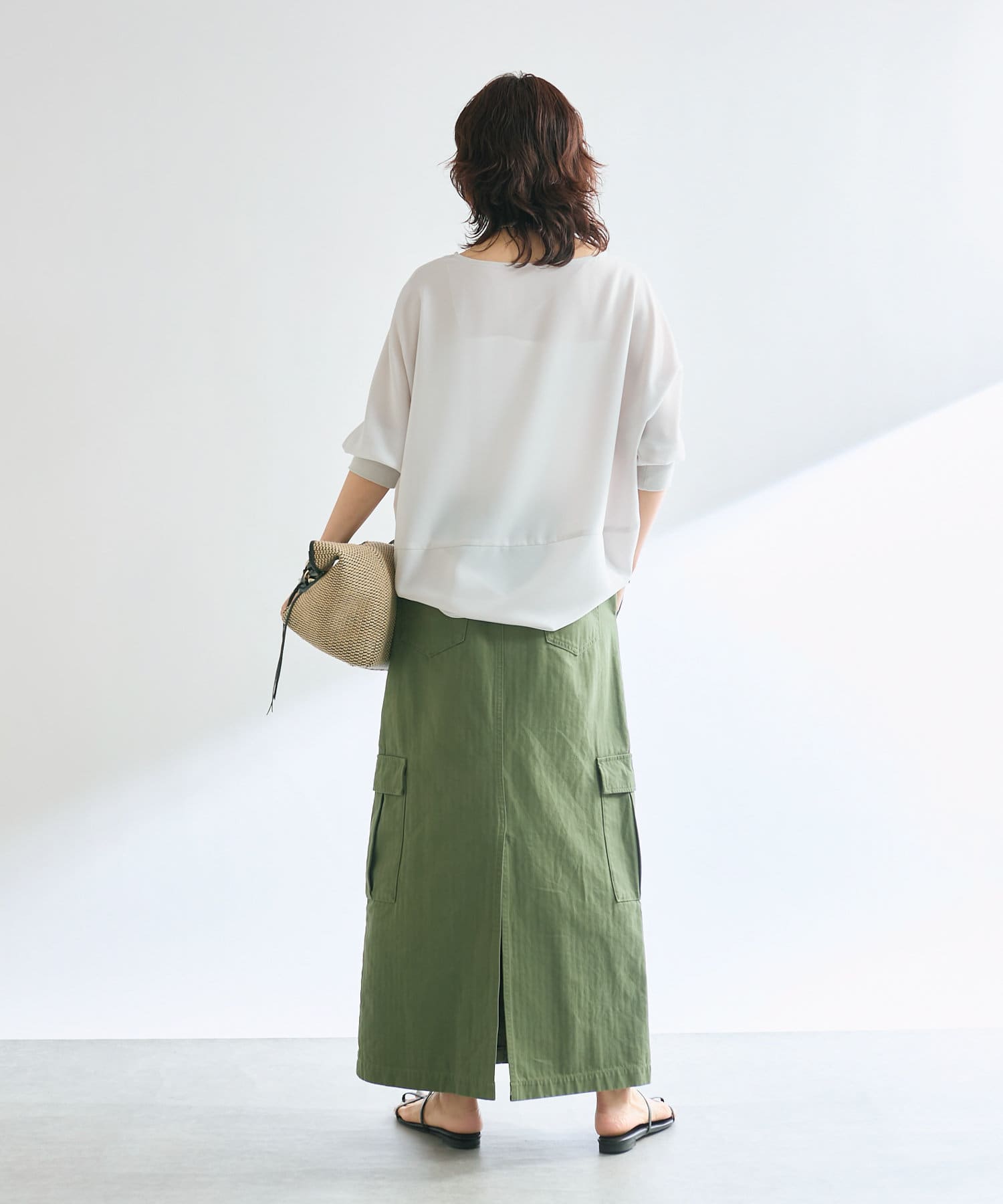 購入場所:店舗あすかさんのインスタで見て、綿のTシャツではカジュアルすぎる時に、透け感とトロミが大人上品に着れます。重ね着してももたつきません。おしりも隠れる丈感です
