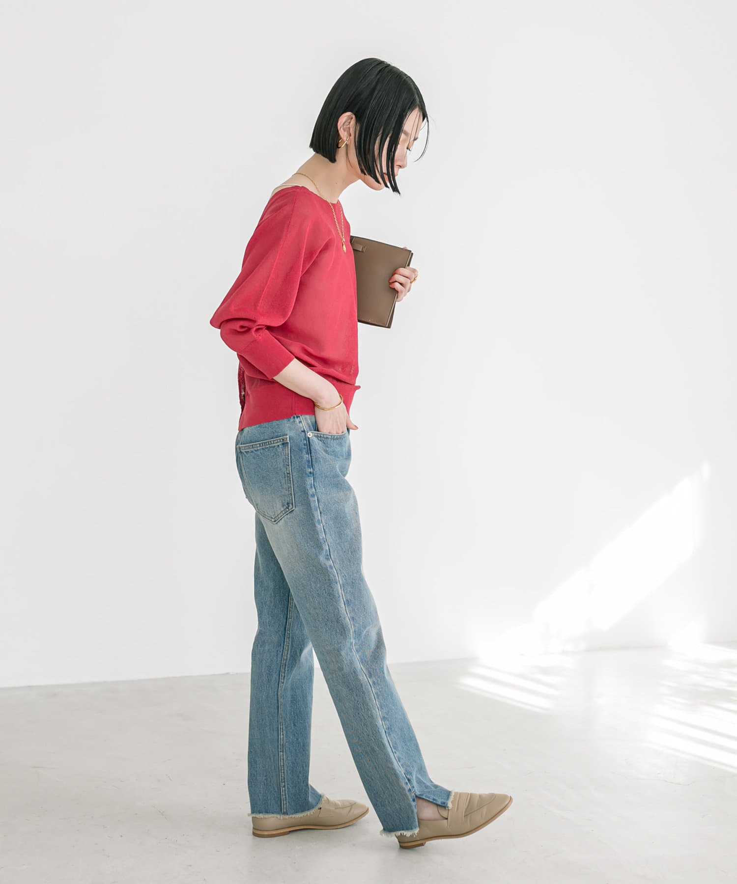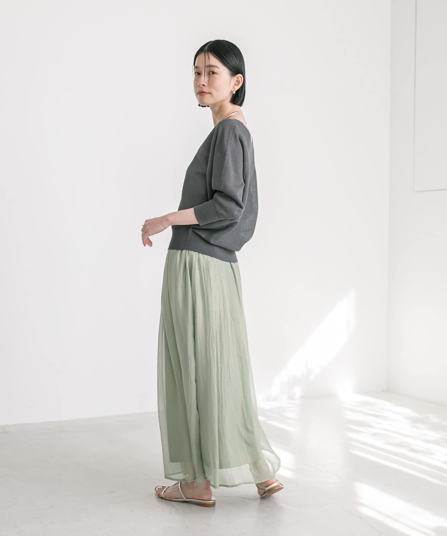 さらっとドライな着心地が魅力のペーパーヤーンニット。