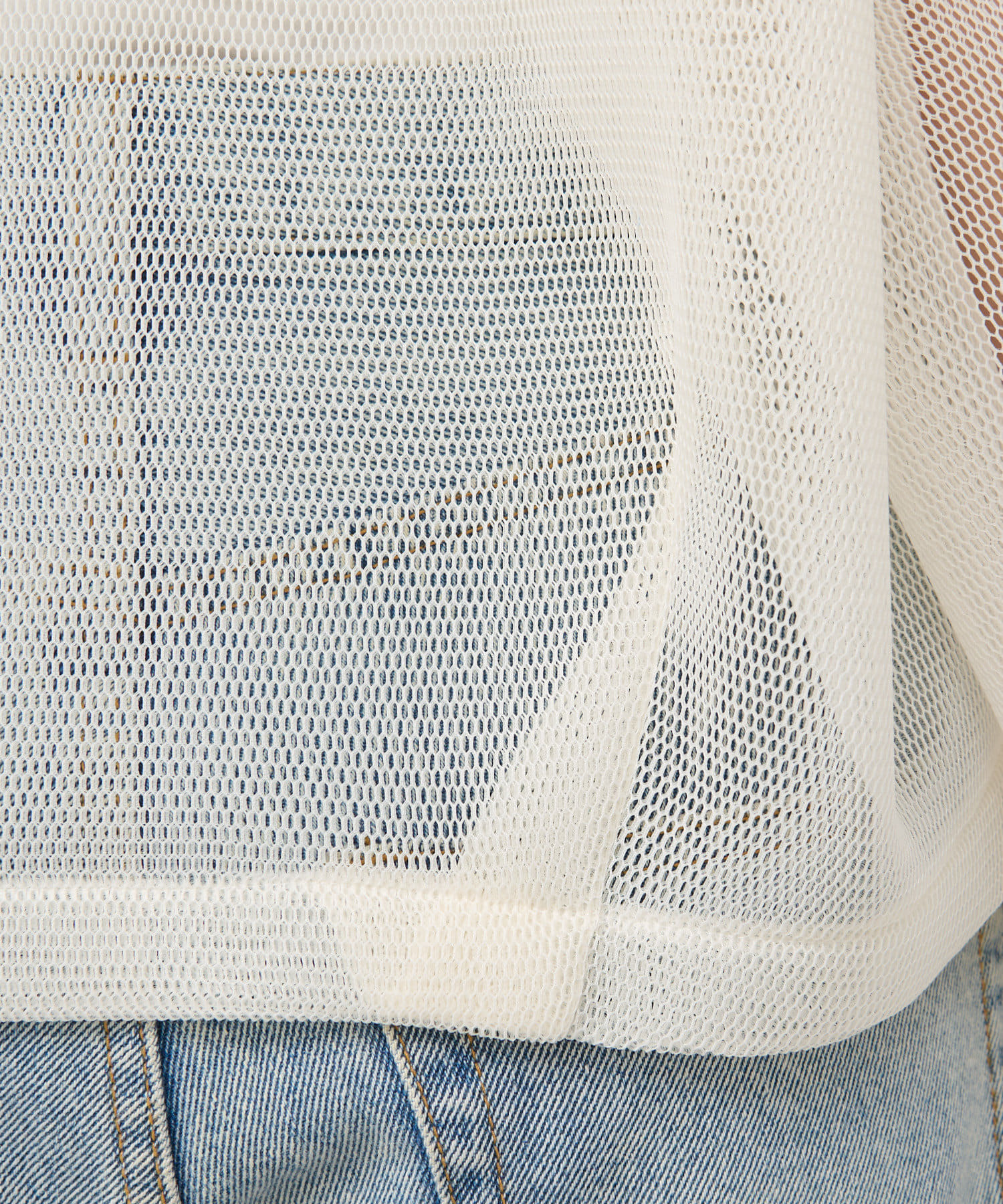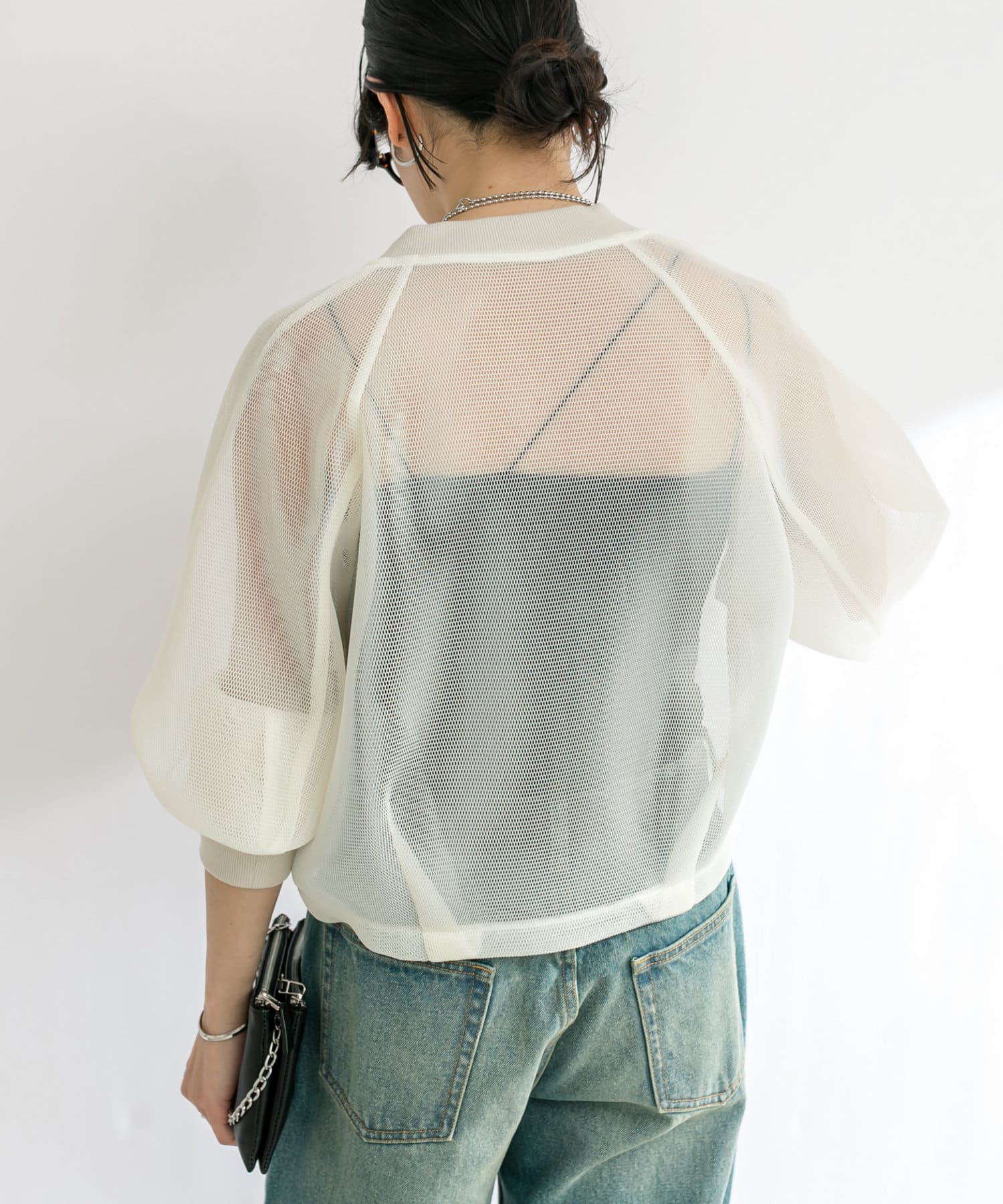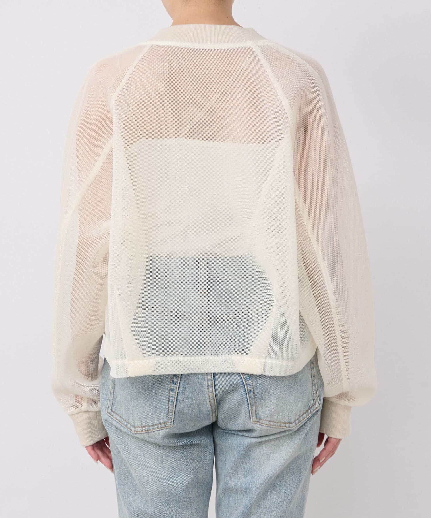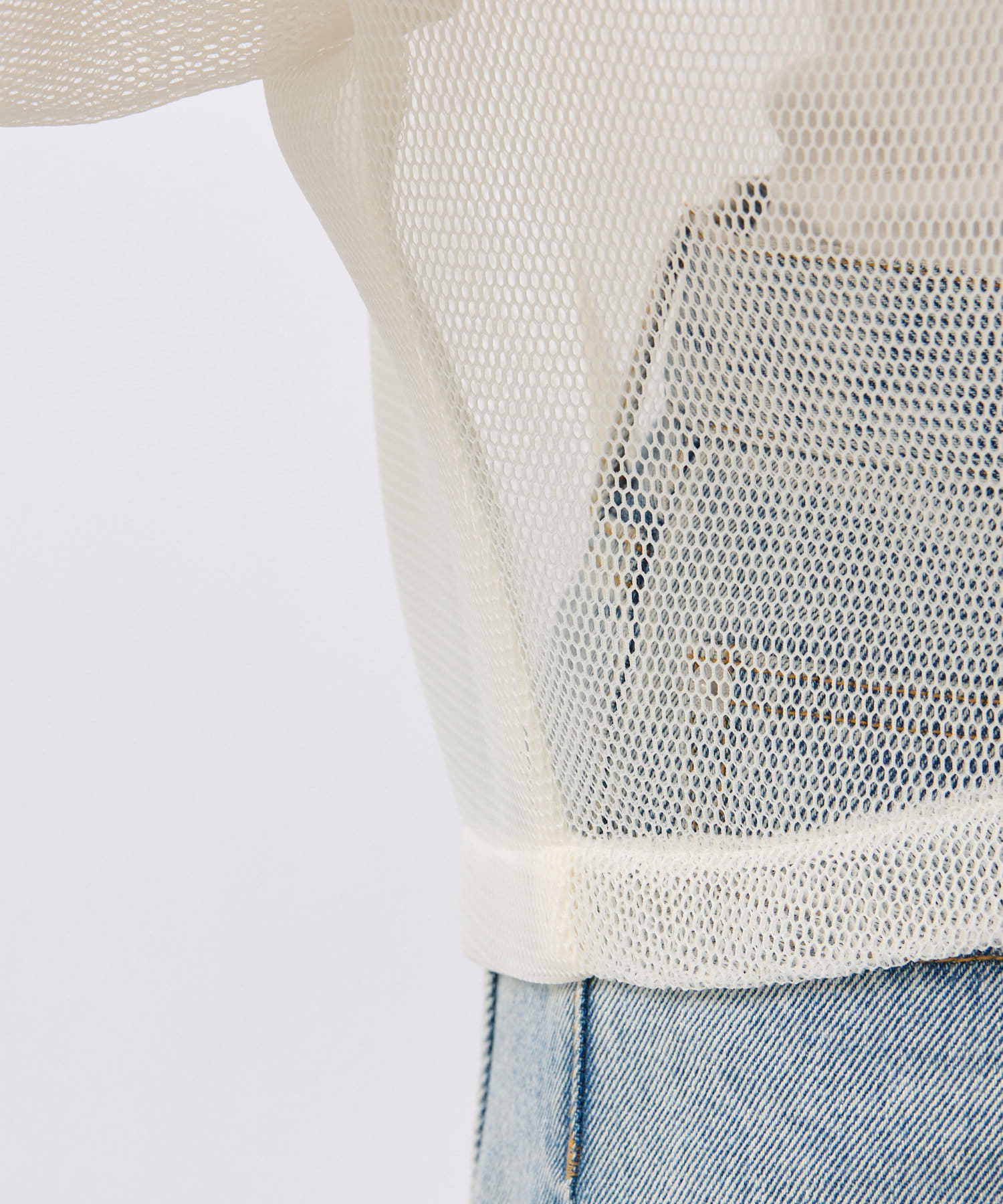 透け感を楽しむコーディネートにオススメなメッシュ素材を使用したブルゾン。