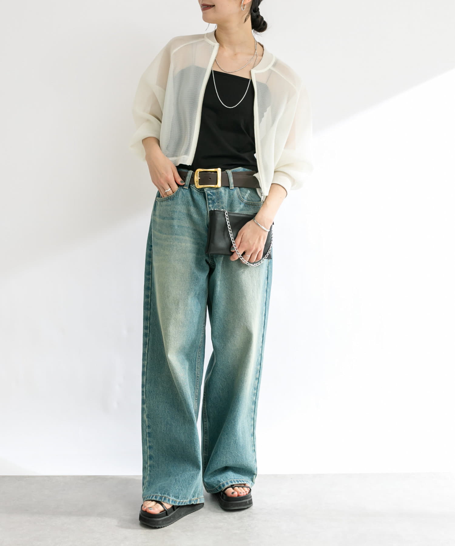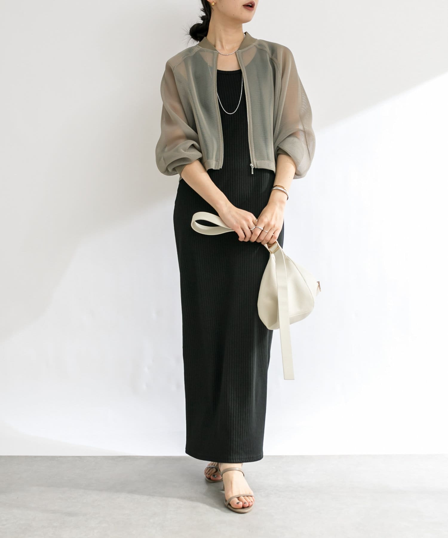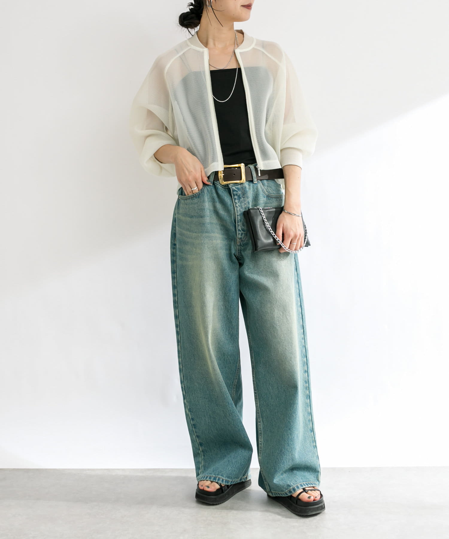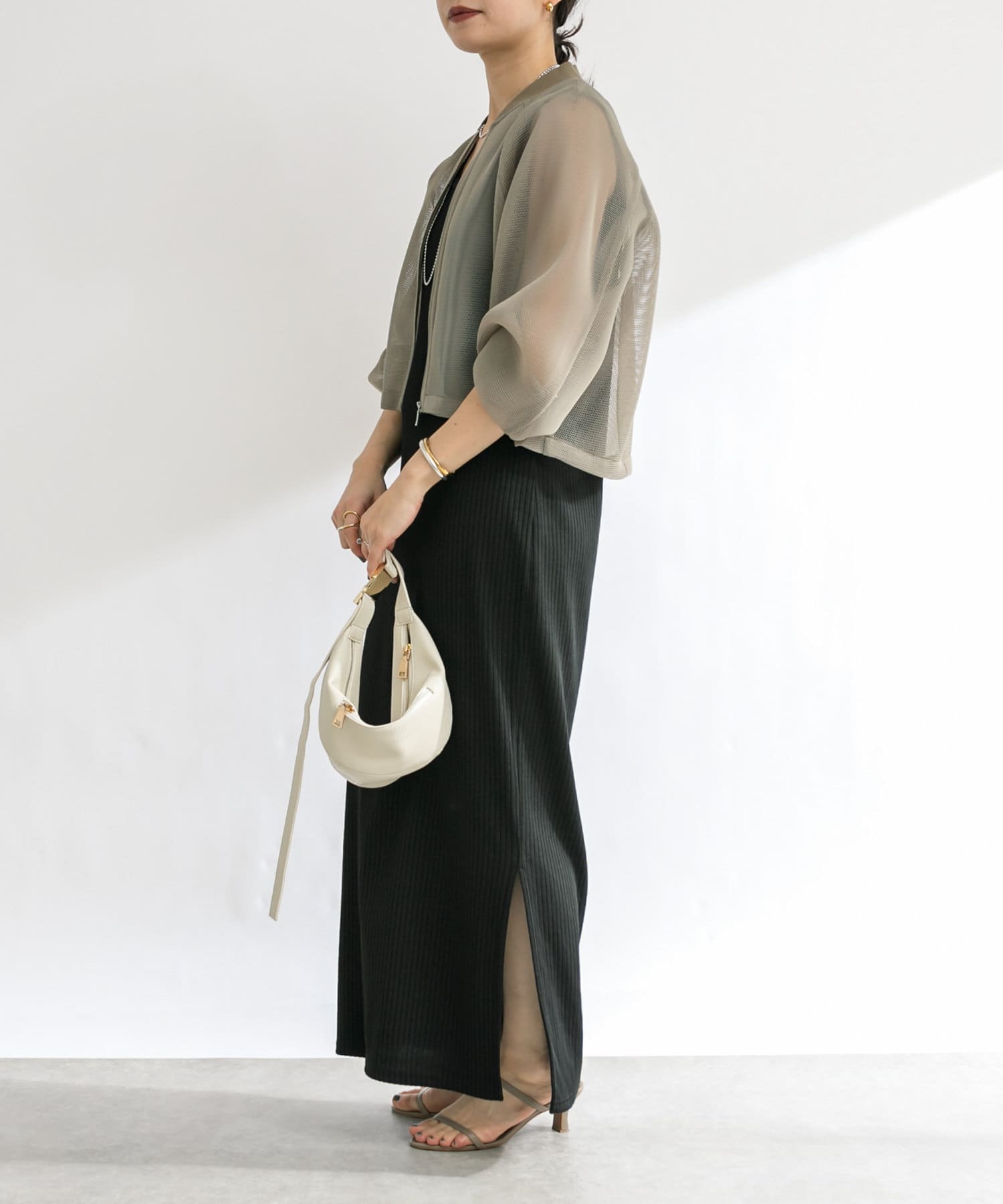 透け感を楽しむコーディネートにオススメなメッシュ素材を使用したブルゾン。