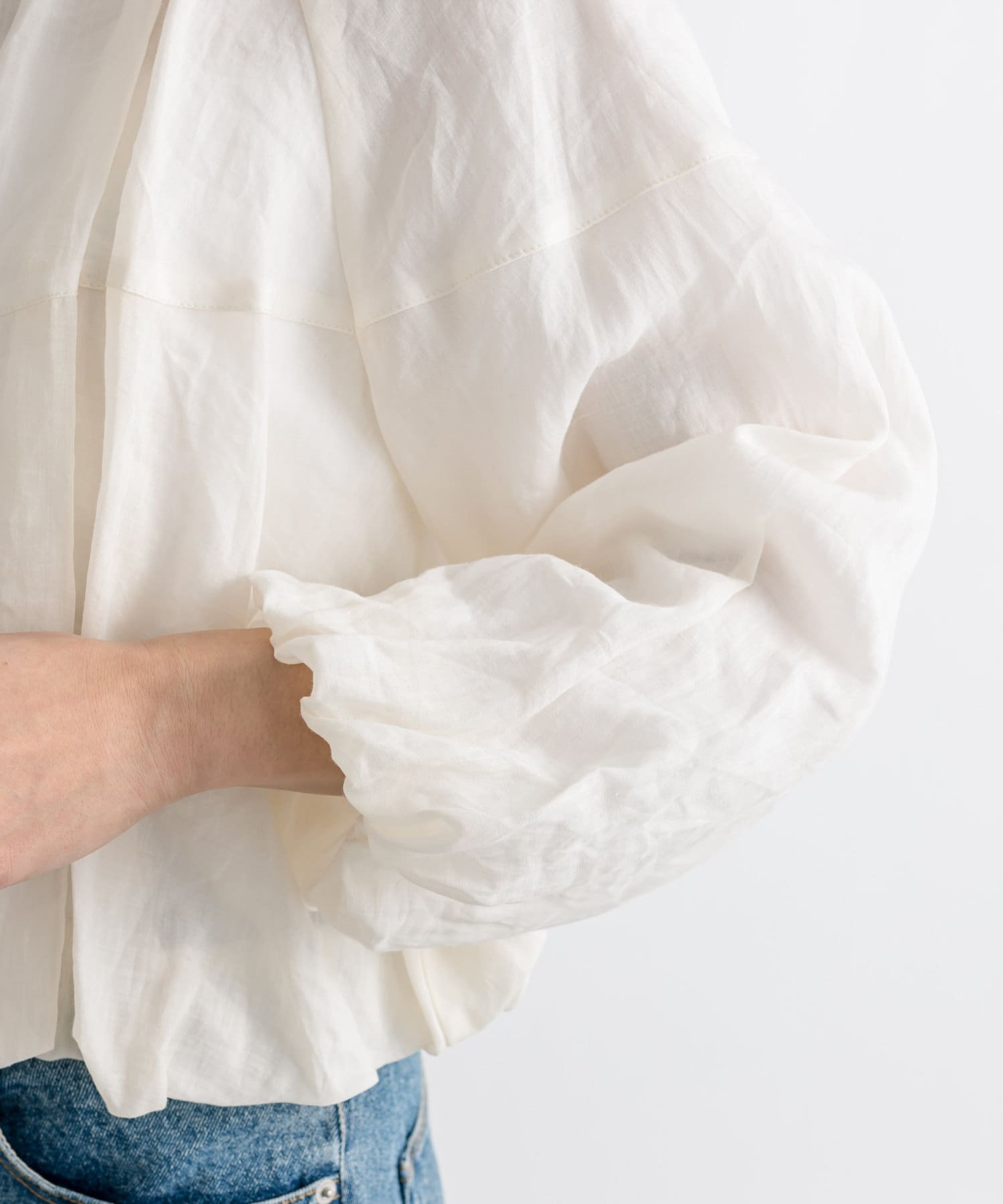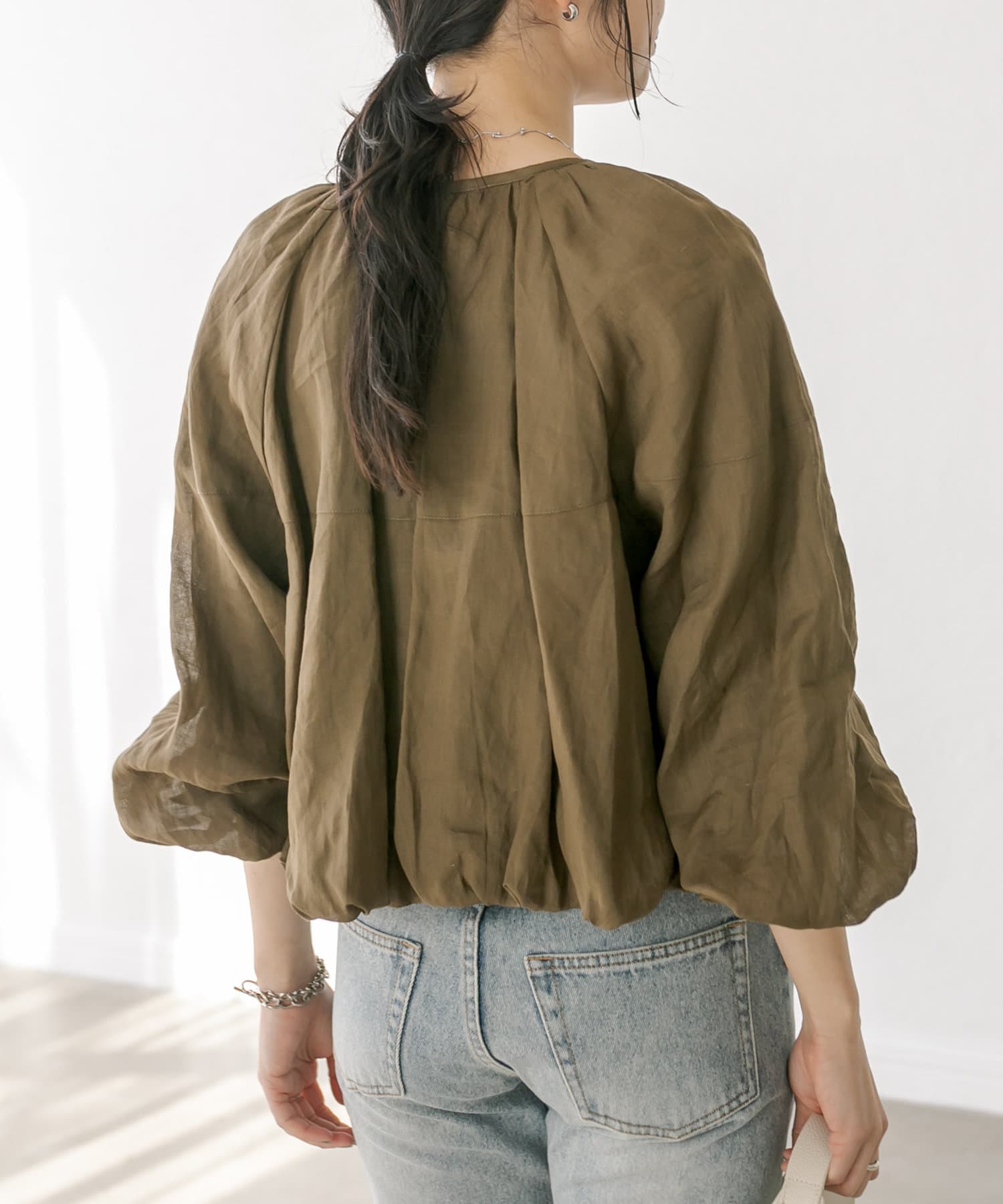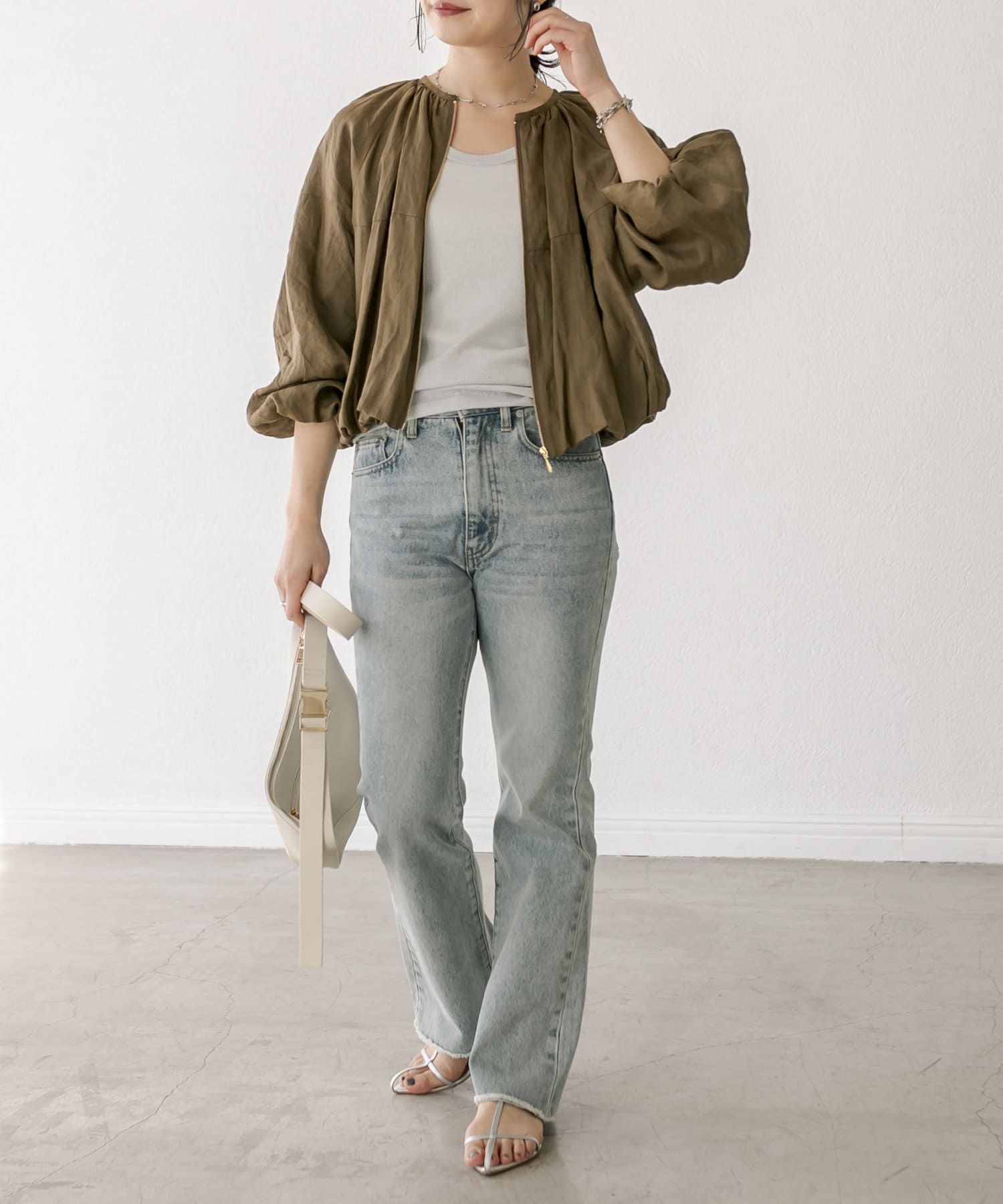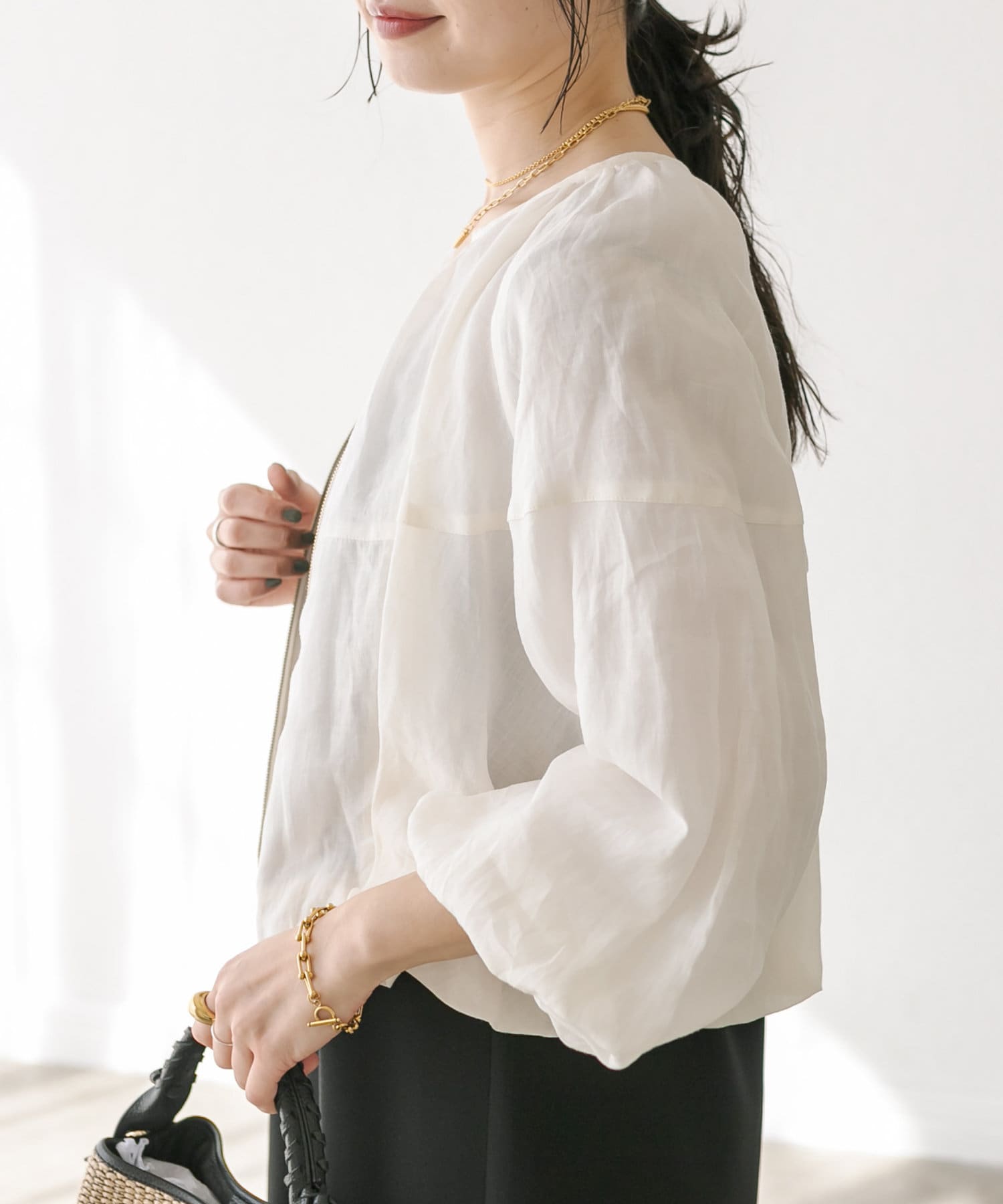 さらっとしたリネンの素材感とポワンと膨らんだ袖がポイントのブルゾン。