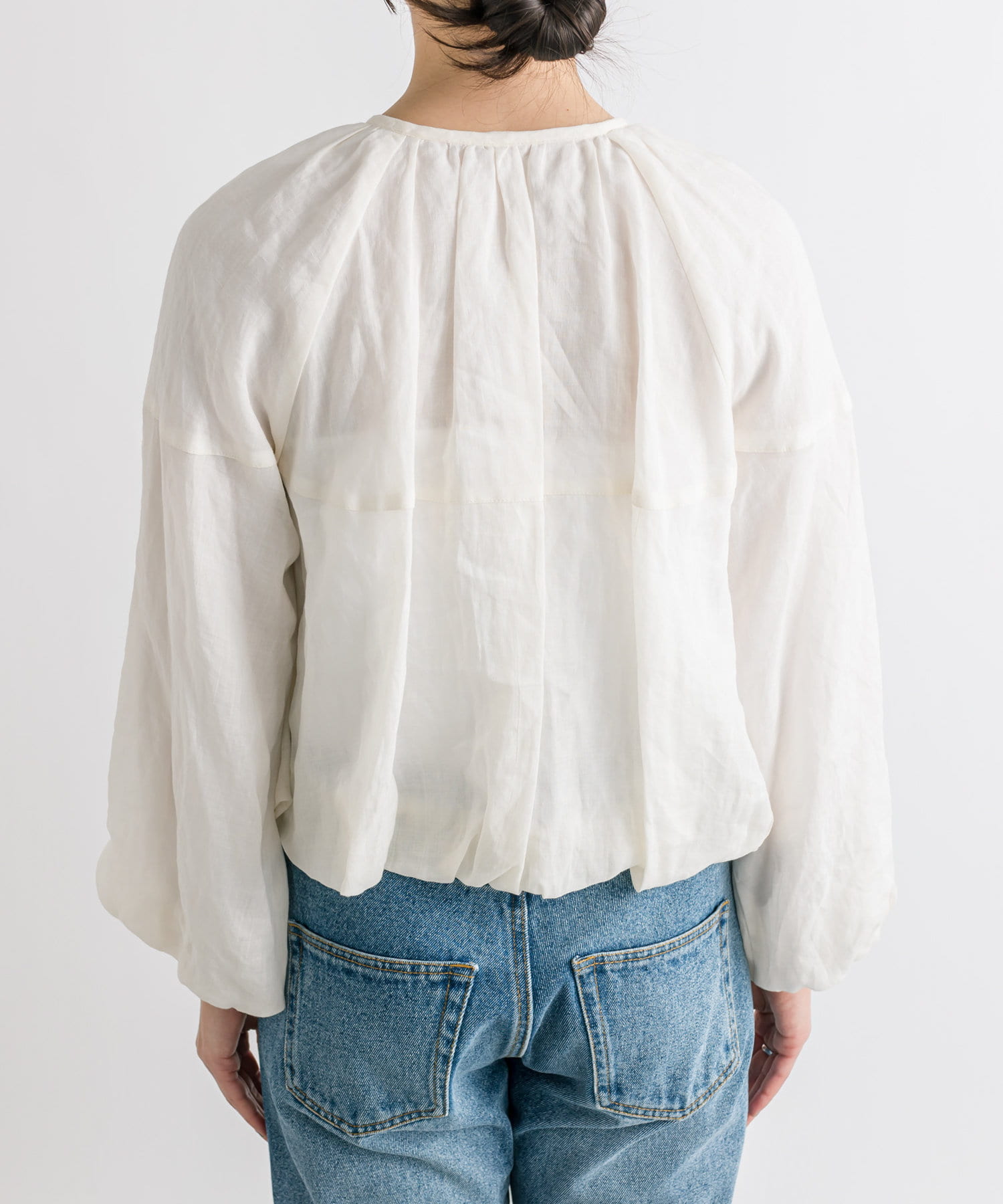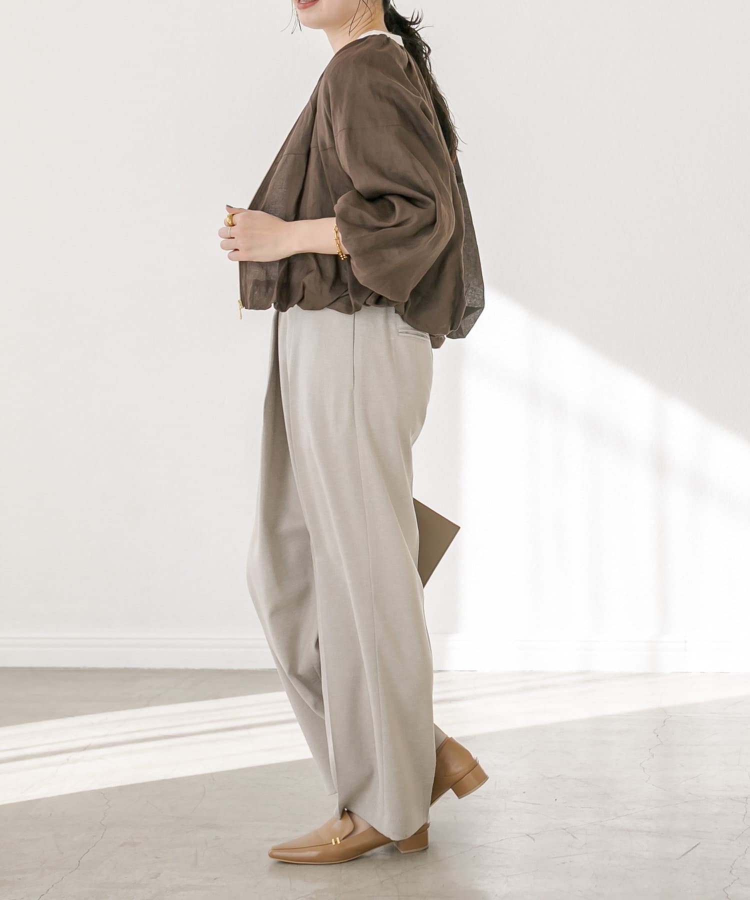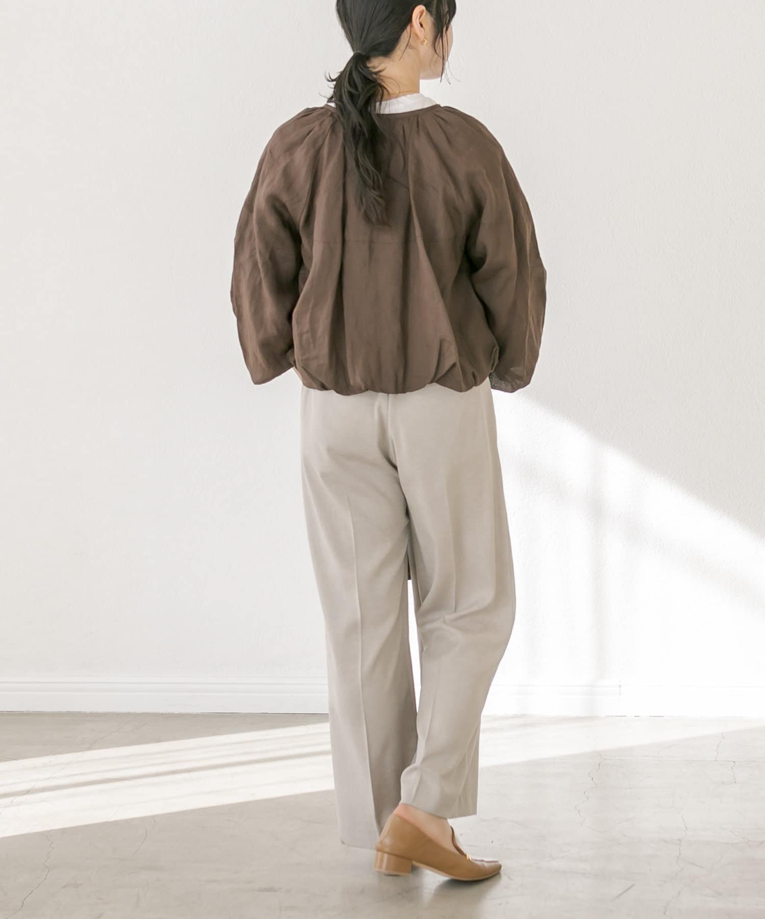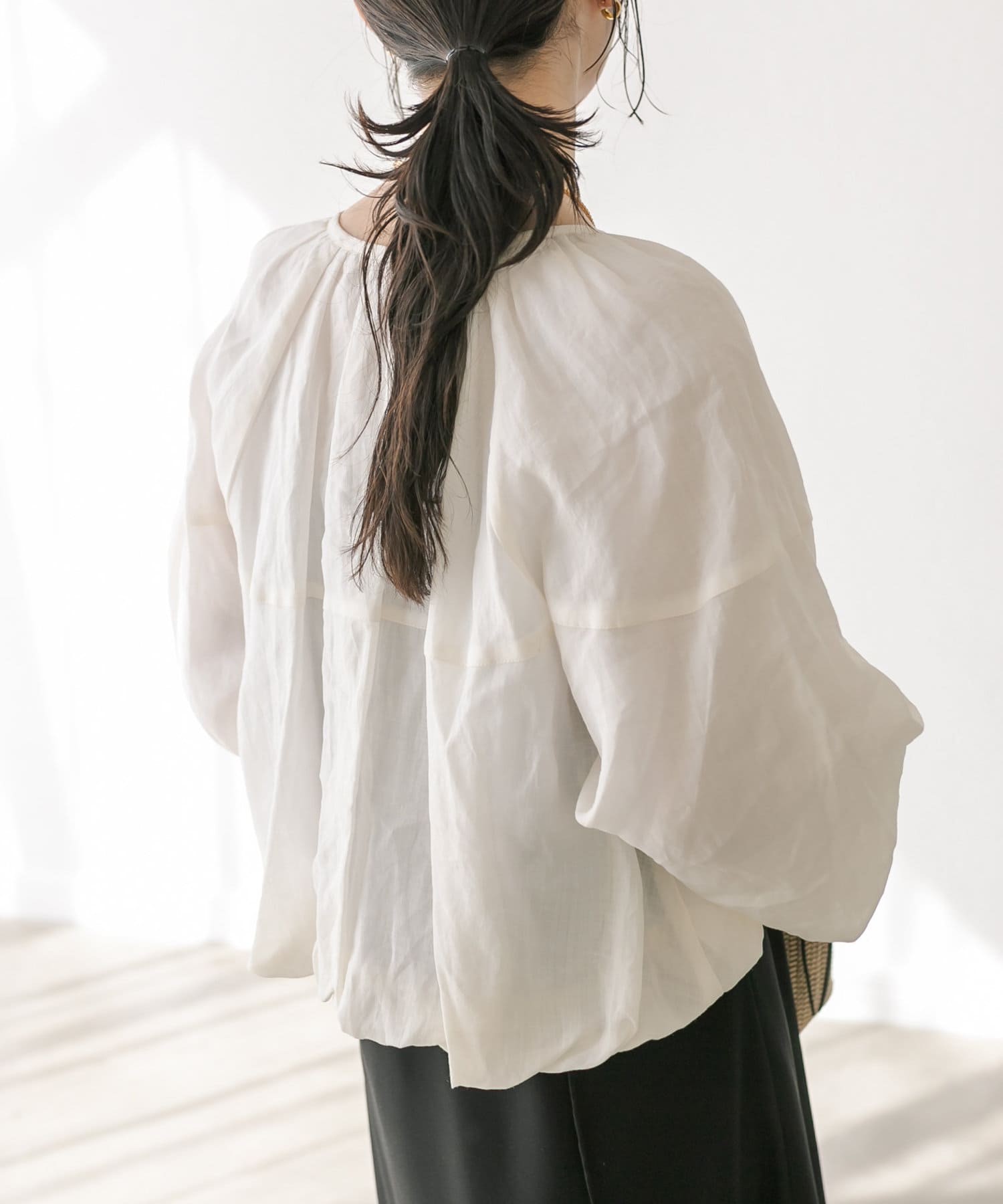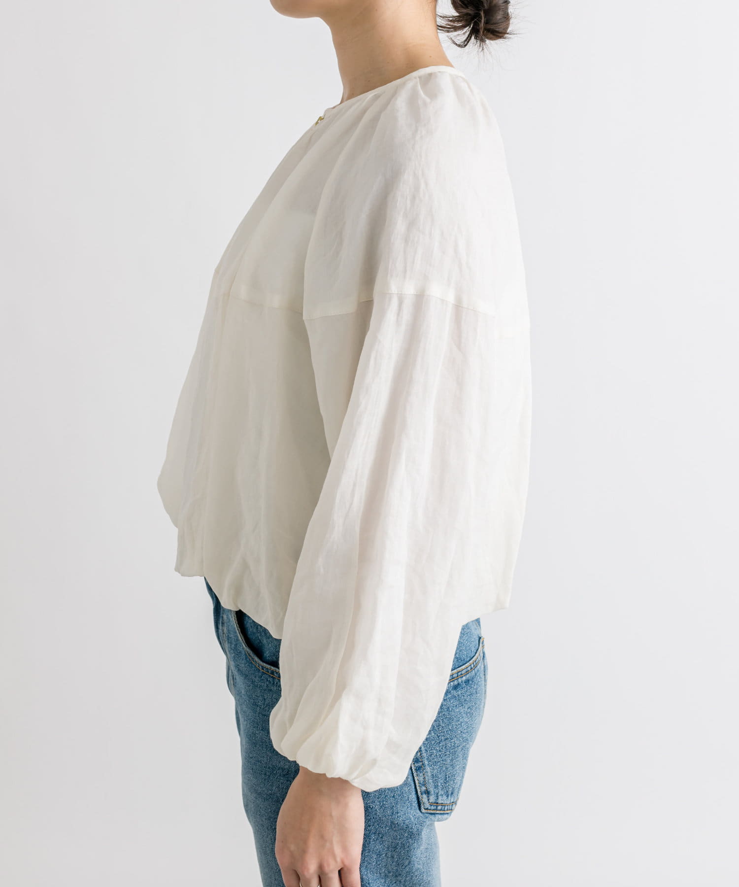 さらっとしたリネンの素材感とポワンと膨らんだ袖がポイントのブルゾン。