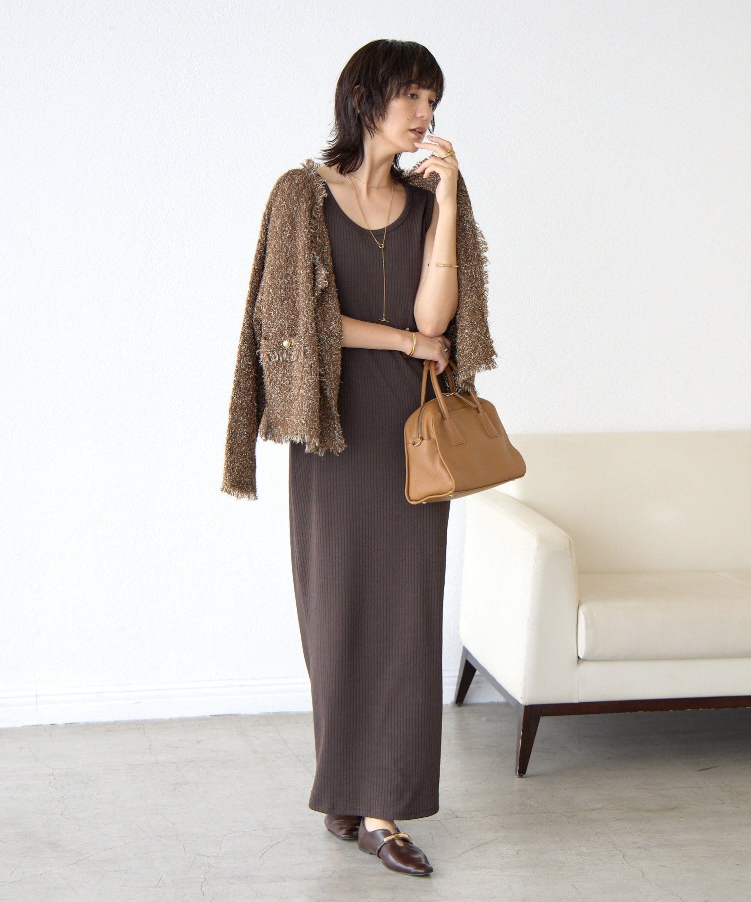 秋冬はニットやジャケットなどを重ね着していただけるとロングシーズン楽しんでいただけます。
