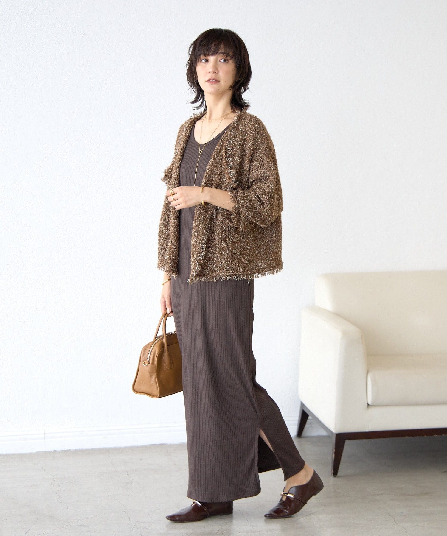 2Wayサイドスリットカーデのモカを一緒に買ったので、羽織ってワントーンコーデで着たいと思ってます!
