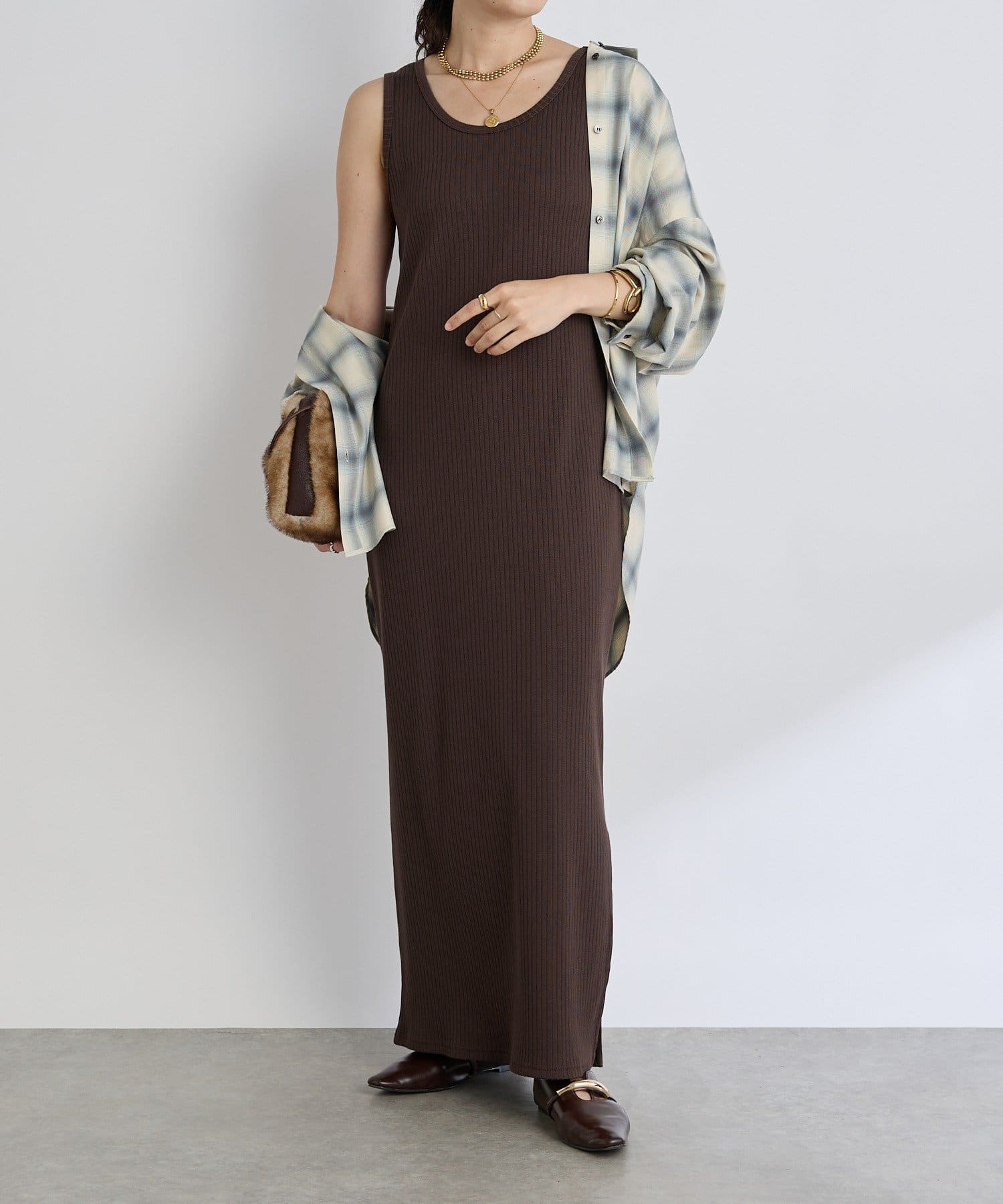 シンプル・快適・着回し力にこだわったテレコ素材のタンクワンピ。