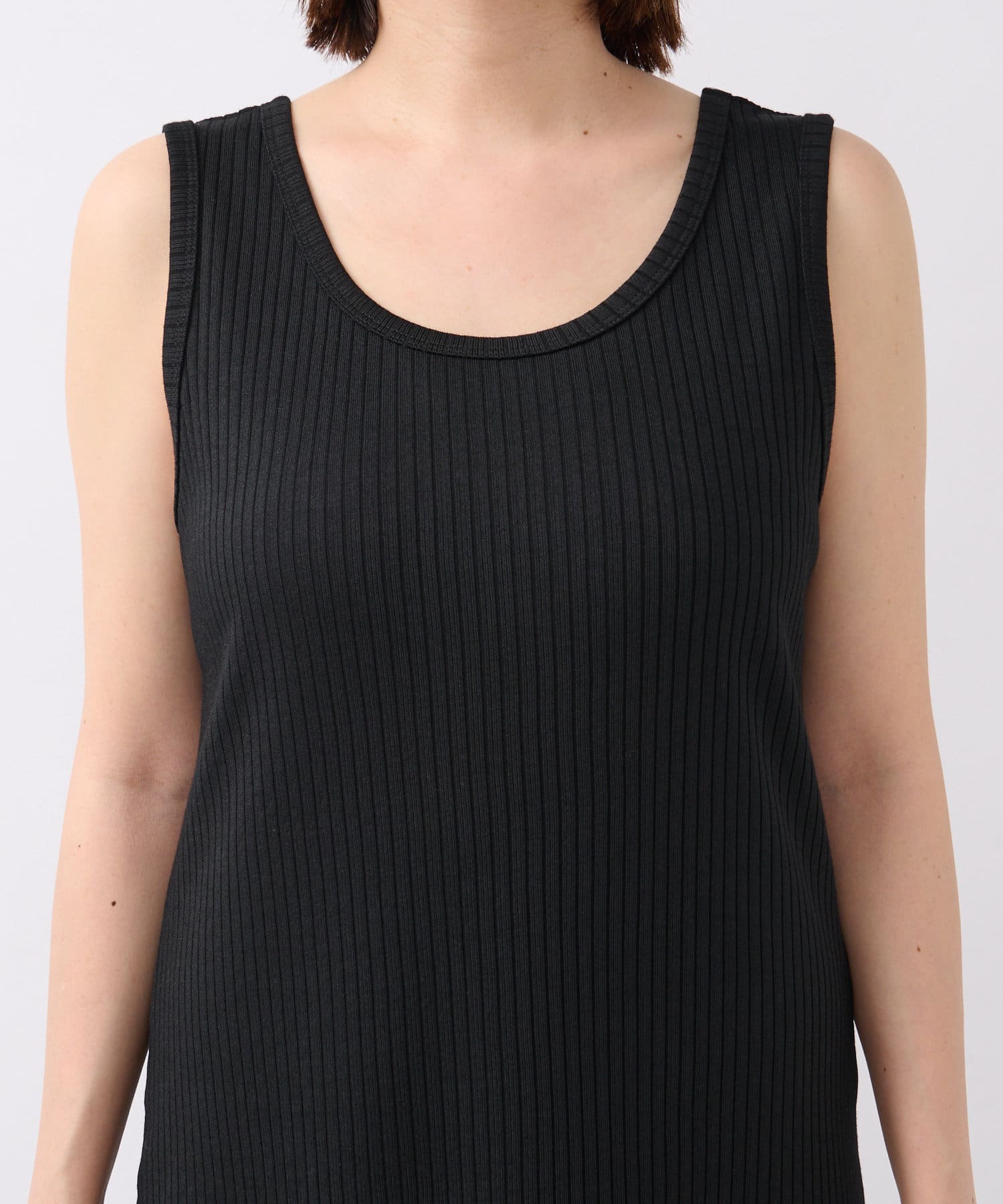シンプル・快適・着回し力にこだわったテレコ素材のタンクワンピ。