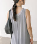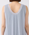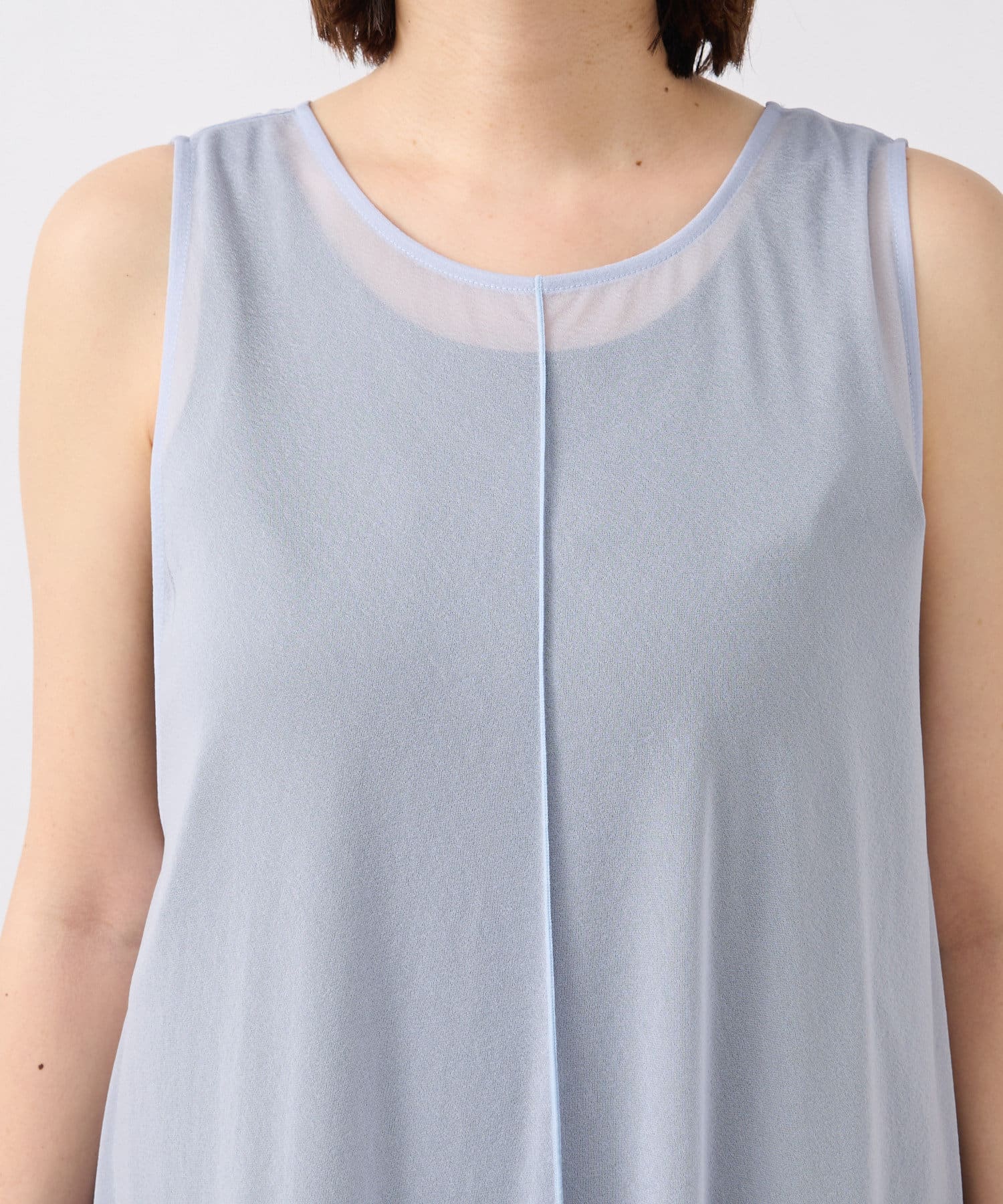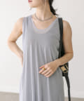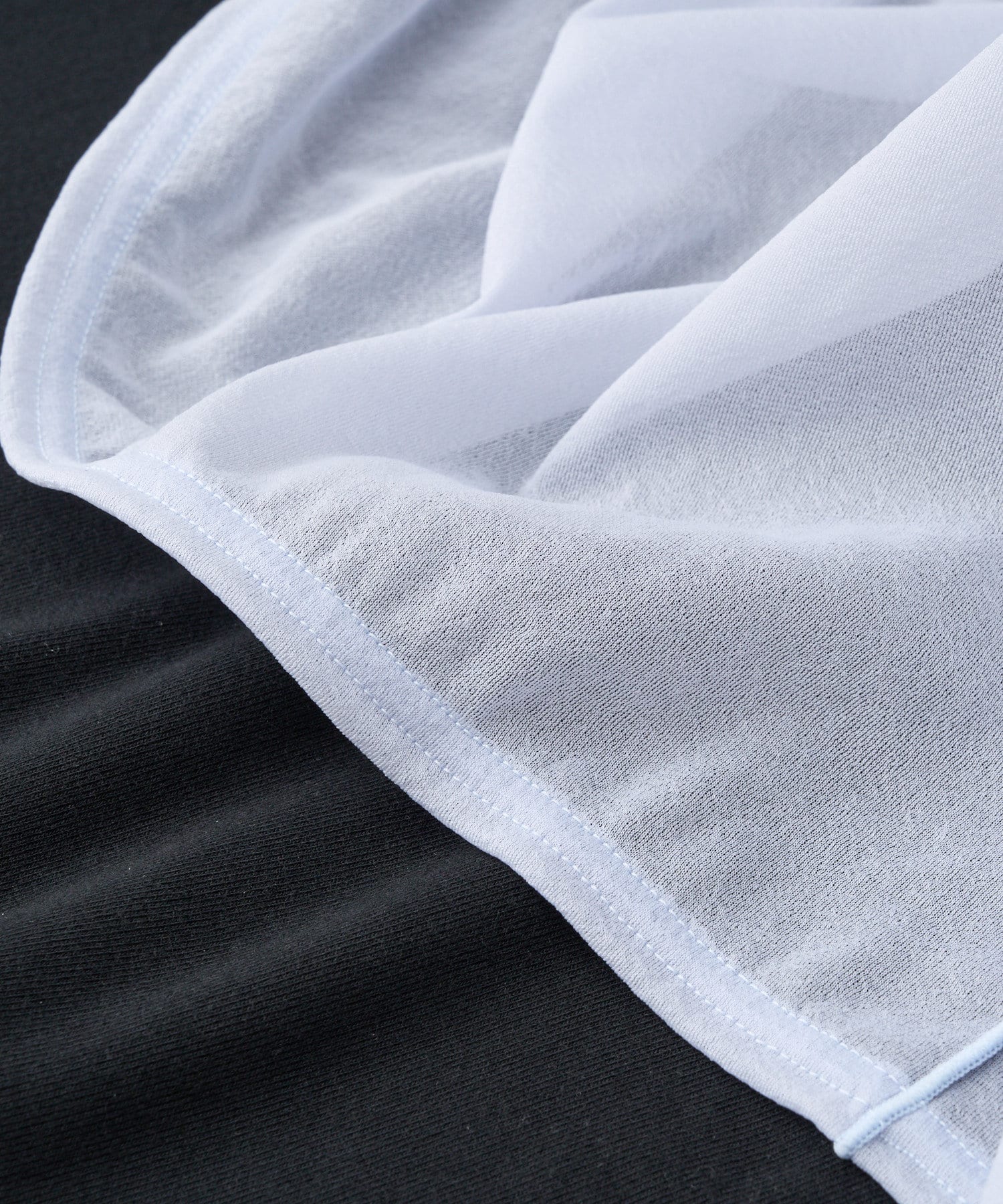 シンプルなシルエットのカットソーワンピと、軽やかなシアー感のある生地の2枚重ねになっており、一枚で様になるデザインが魅力です。