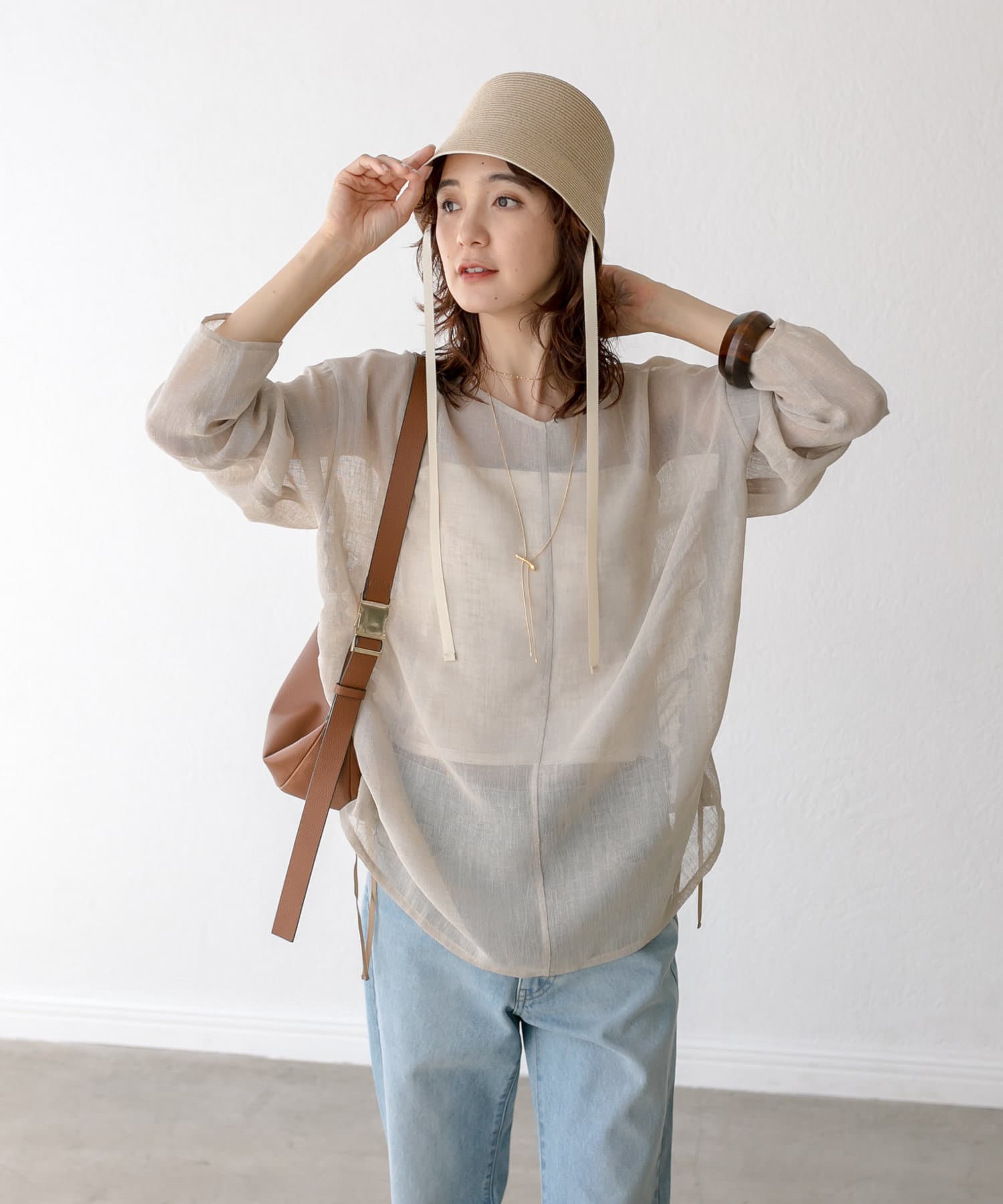 抜け感のあるラフィア風ハット
