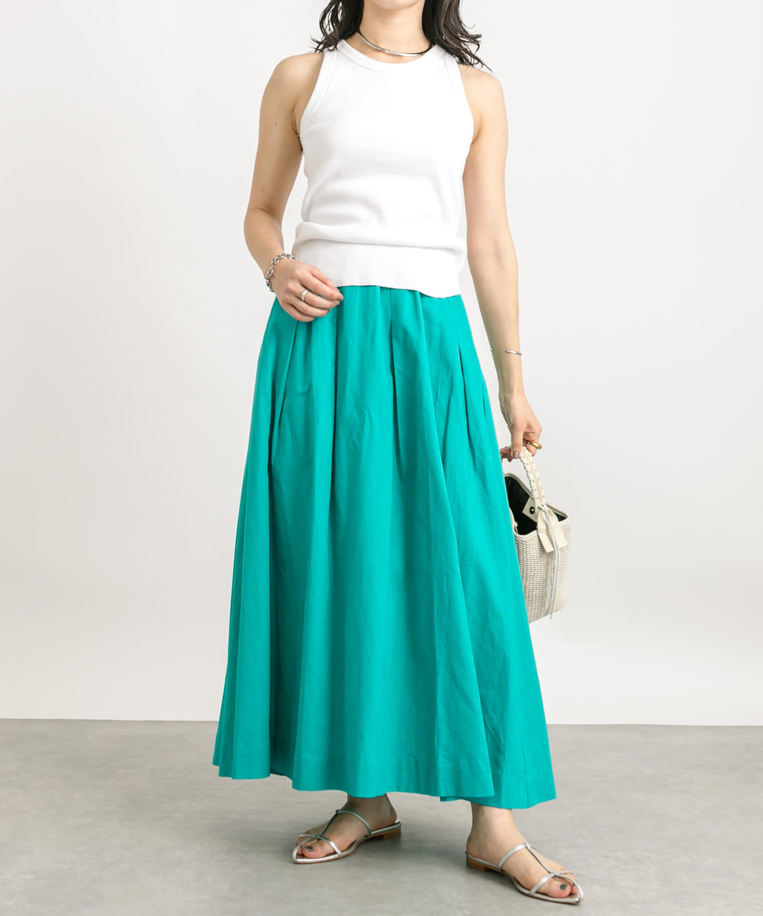 夏らしい爽やかなコットンリネンの素材を使用したロングスカート。