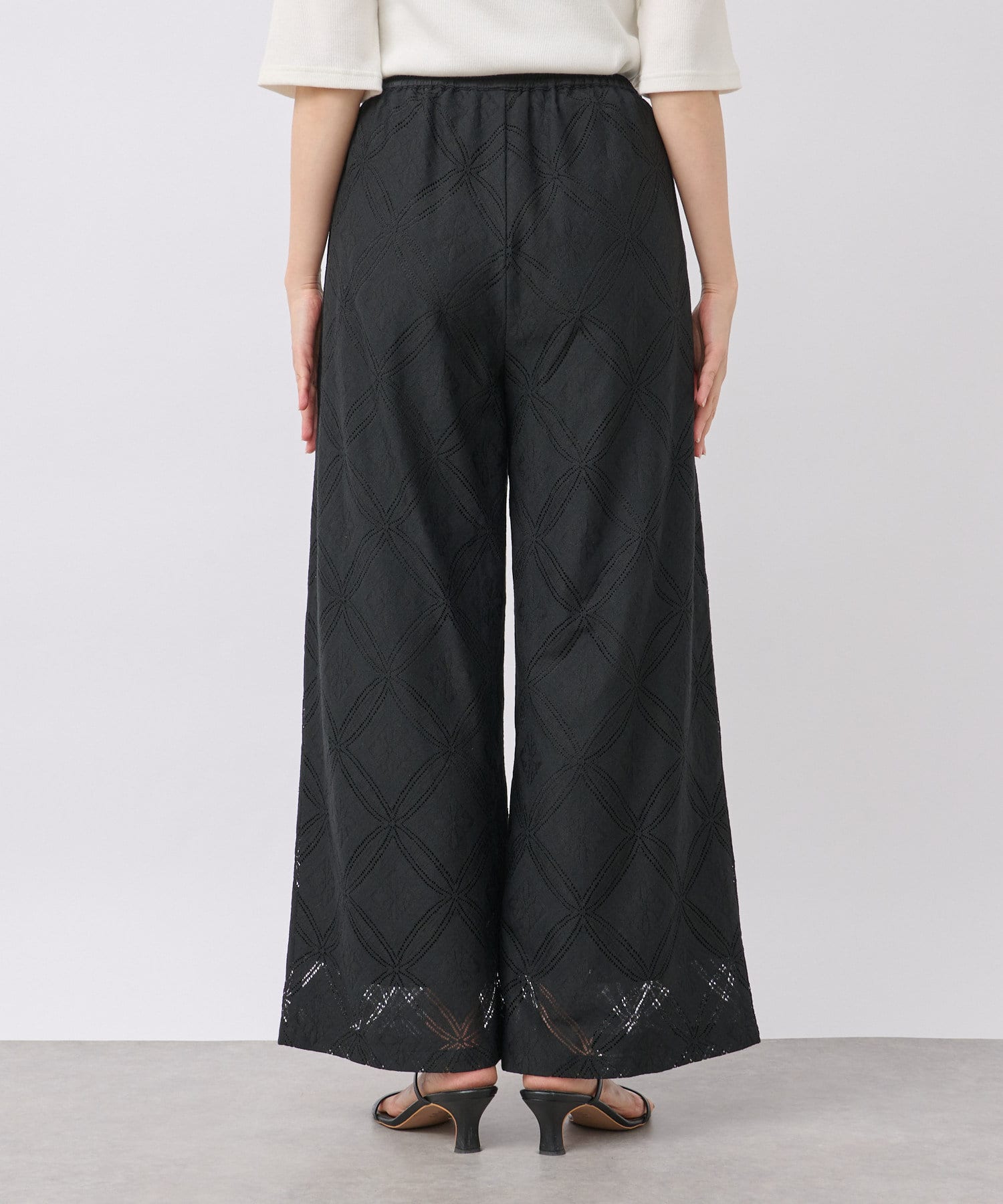 • 立体的なレース模様がコーデのポイントになるイージーパンツ