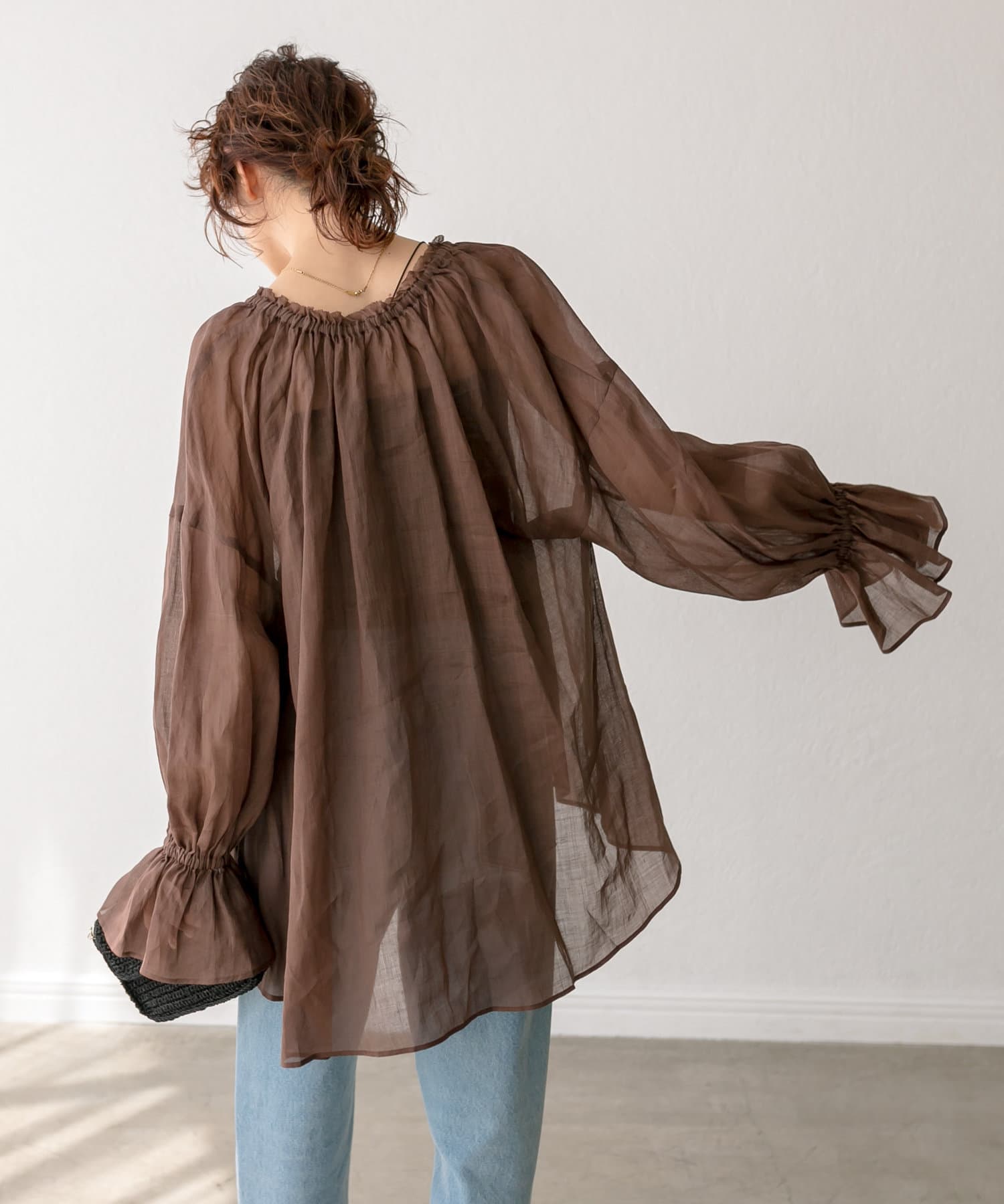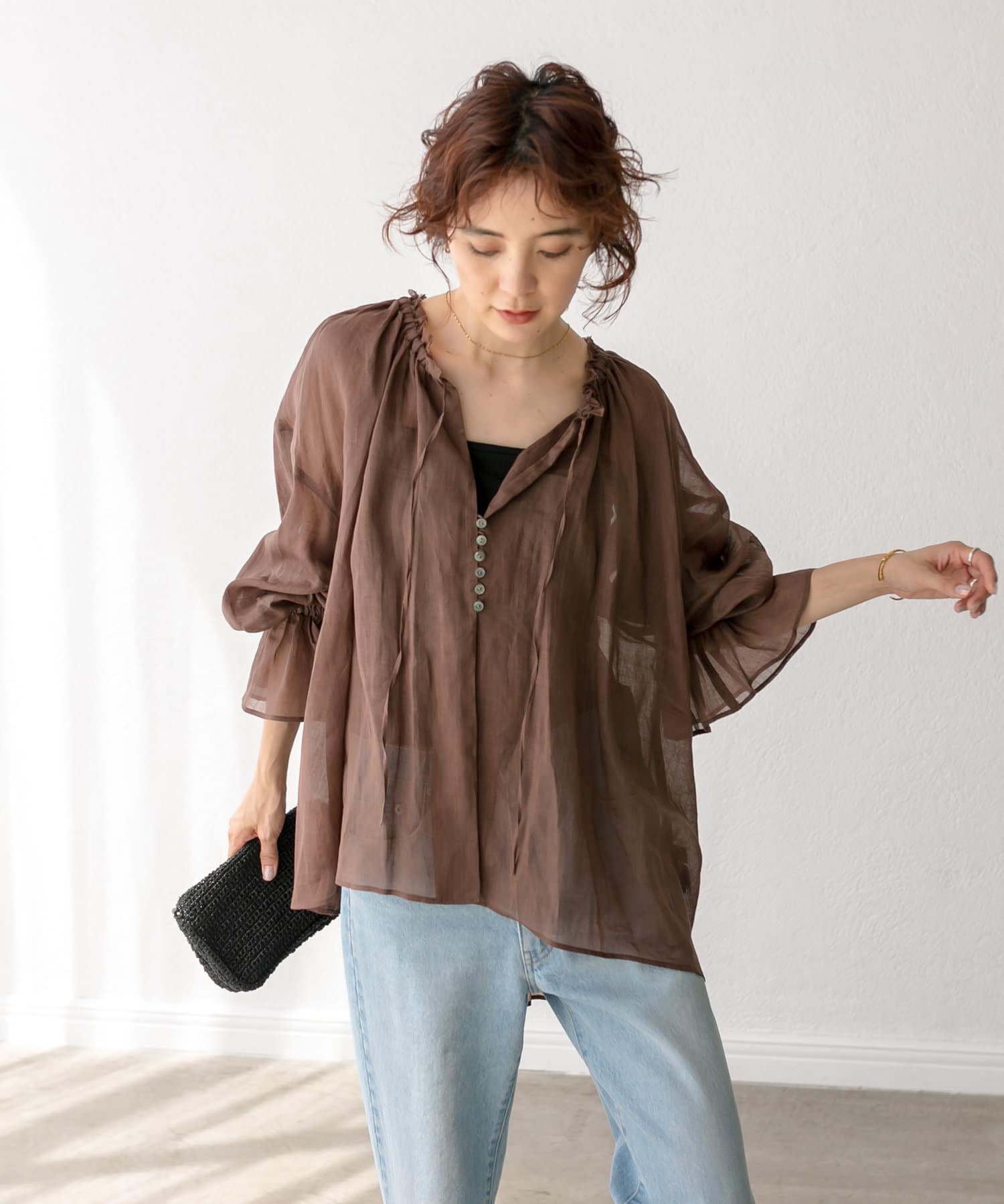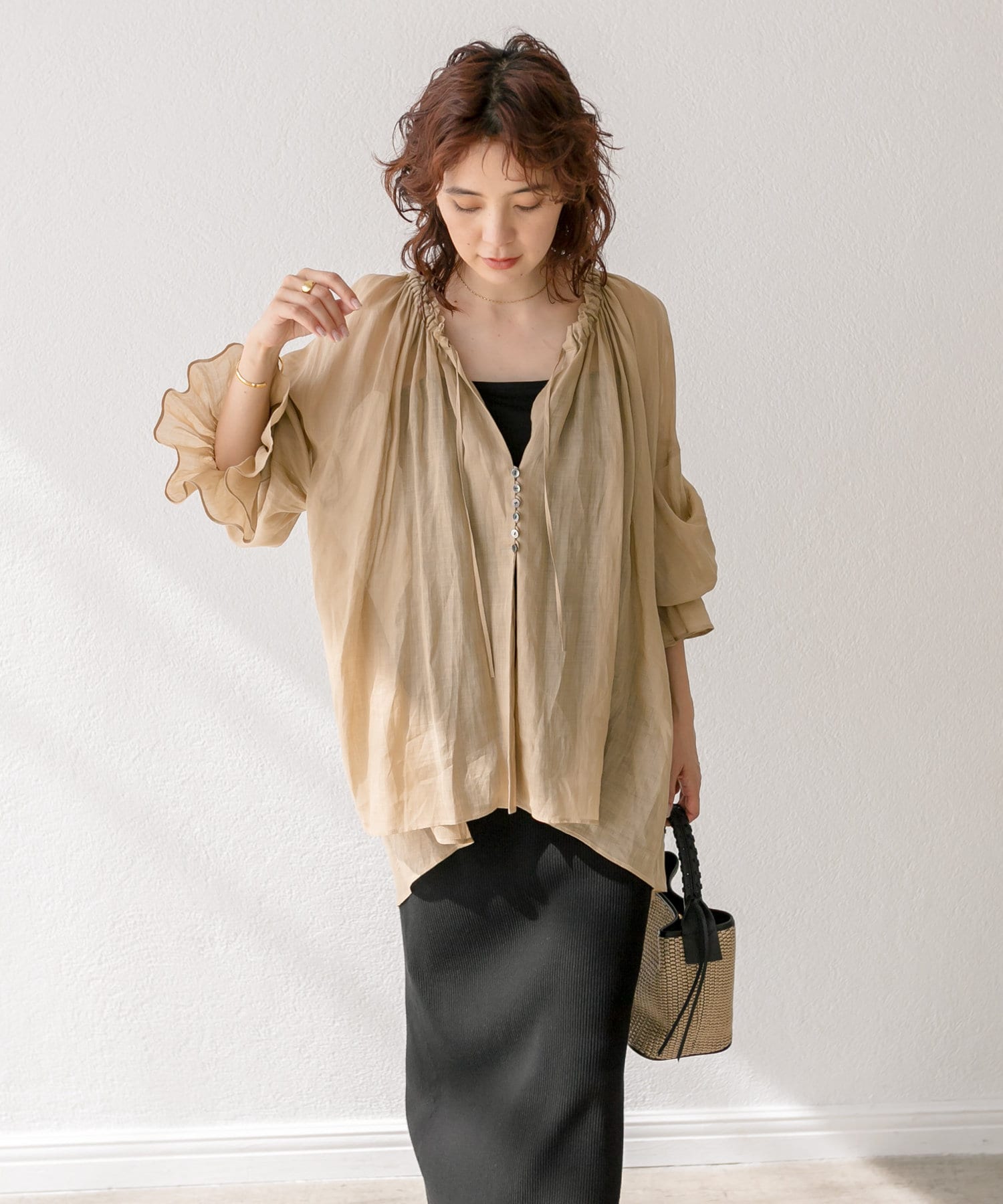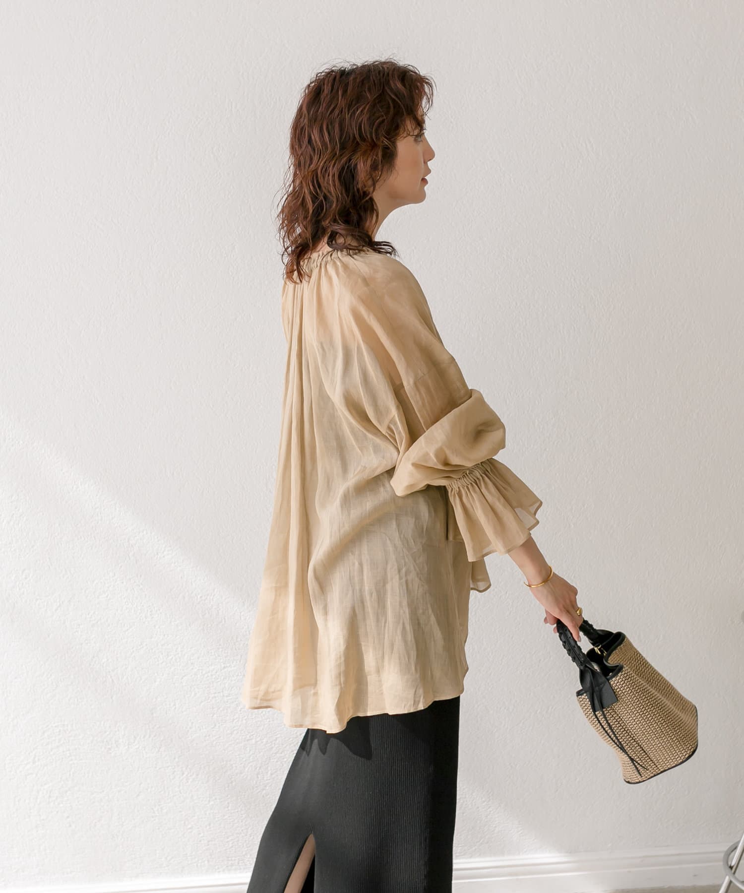 • シアーで清涼感のあるラミー素材を使用したギャザーブラウス