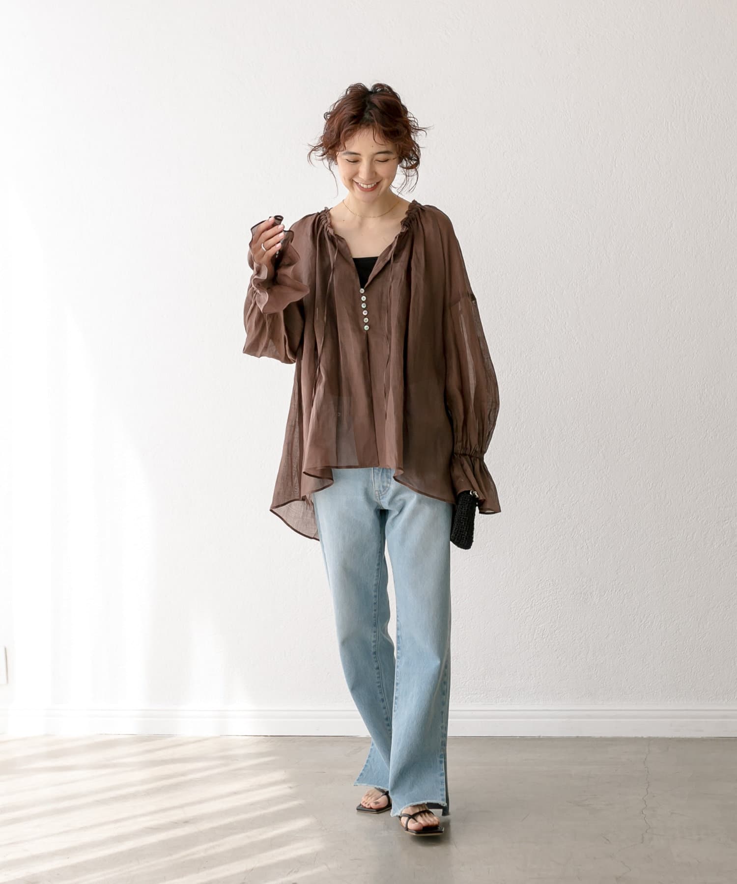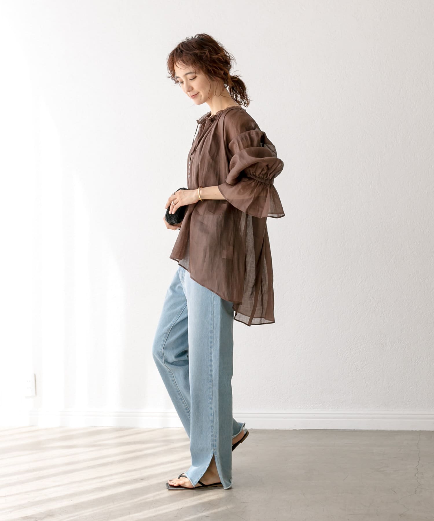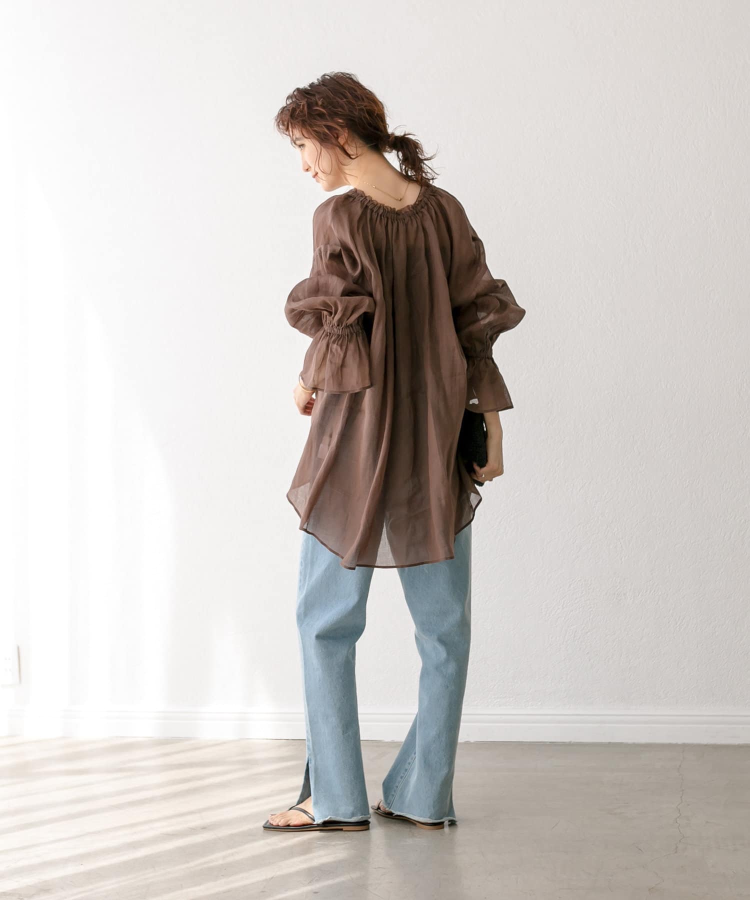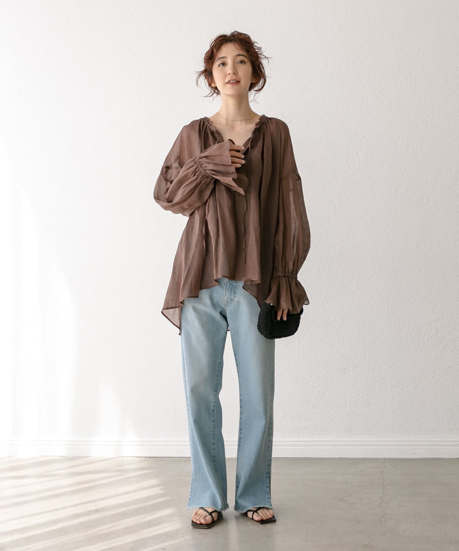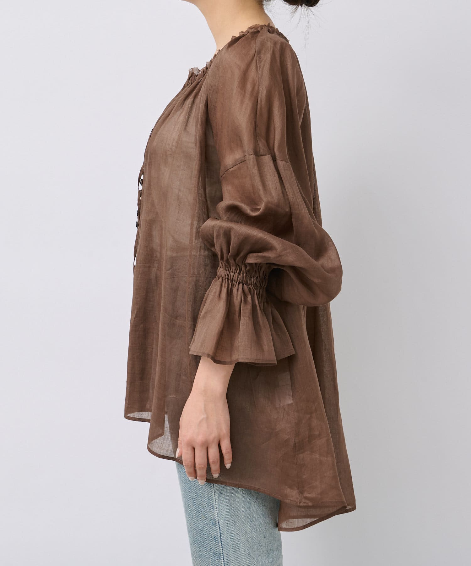 • シアーで清涼感のあるラミー素材を使用したギャザーブラウス