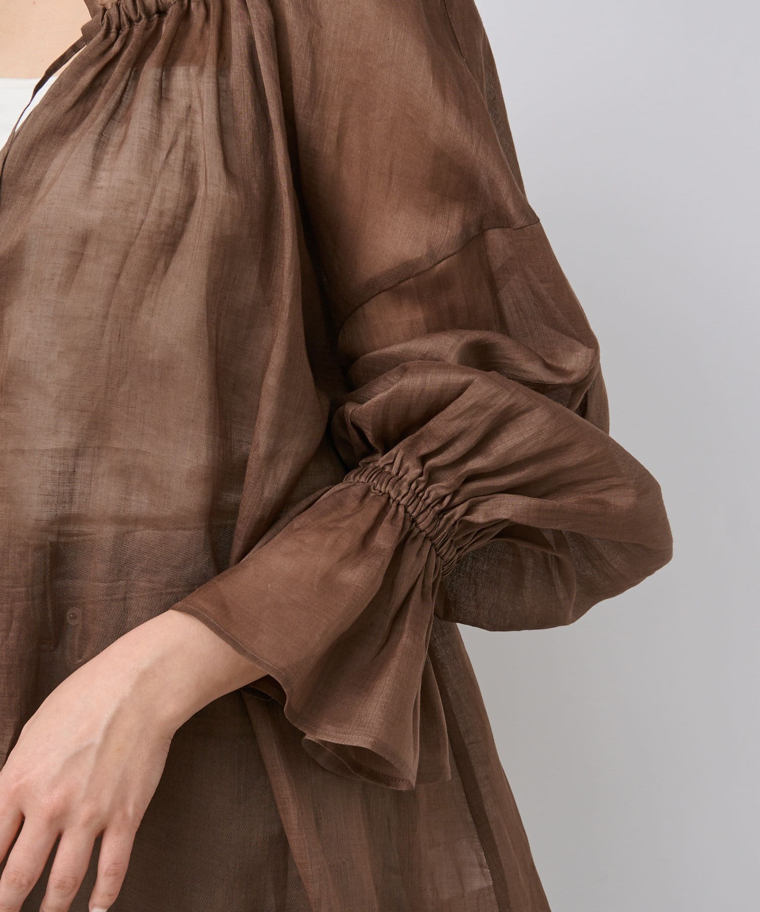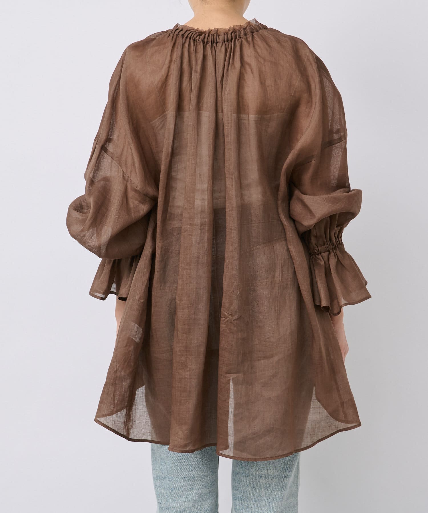 シアーで清涼感のあるラミー素材を使用したギャザーブラウス。