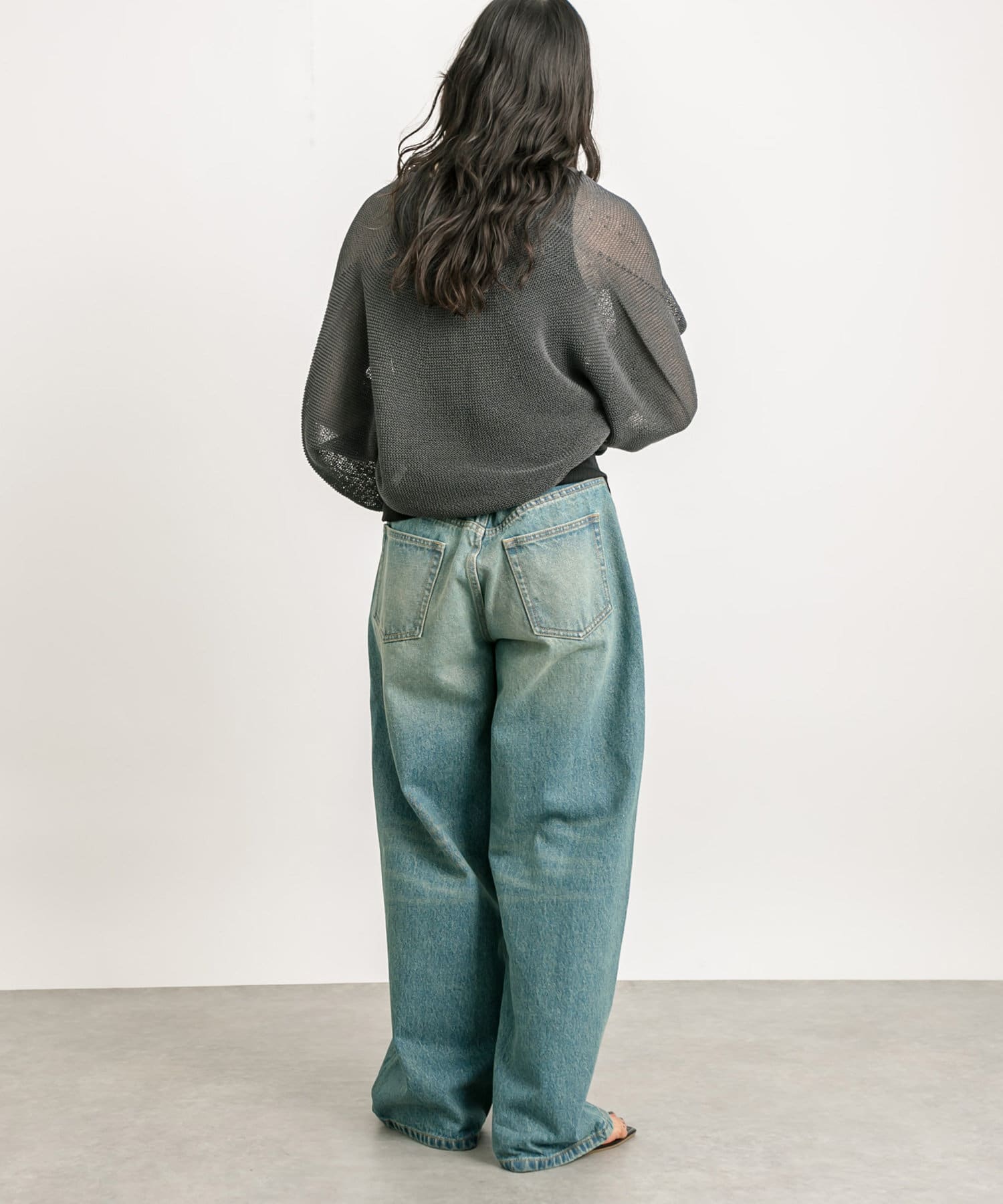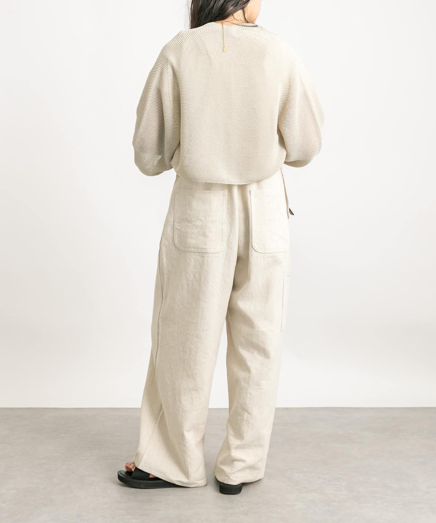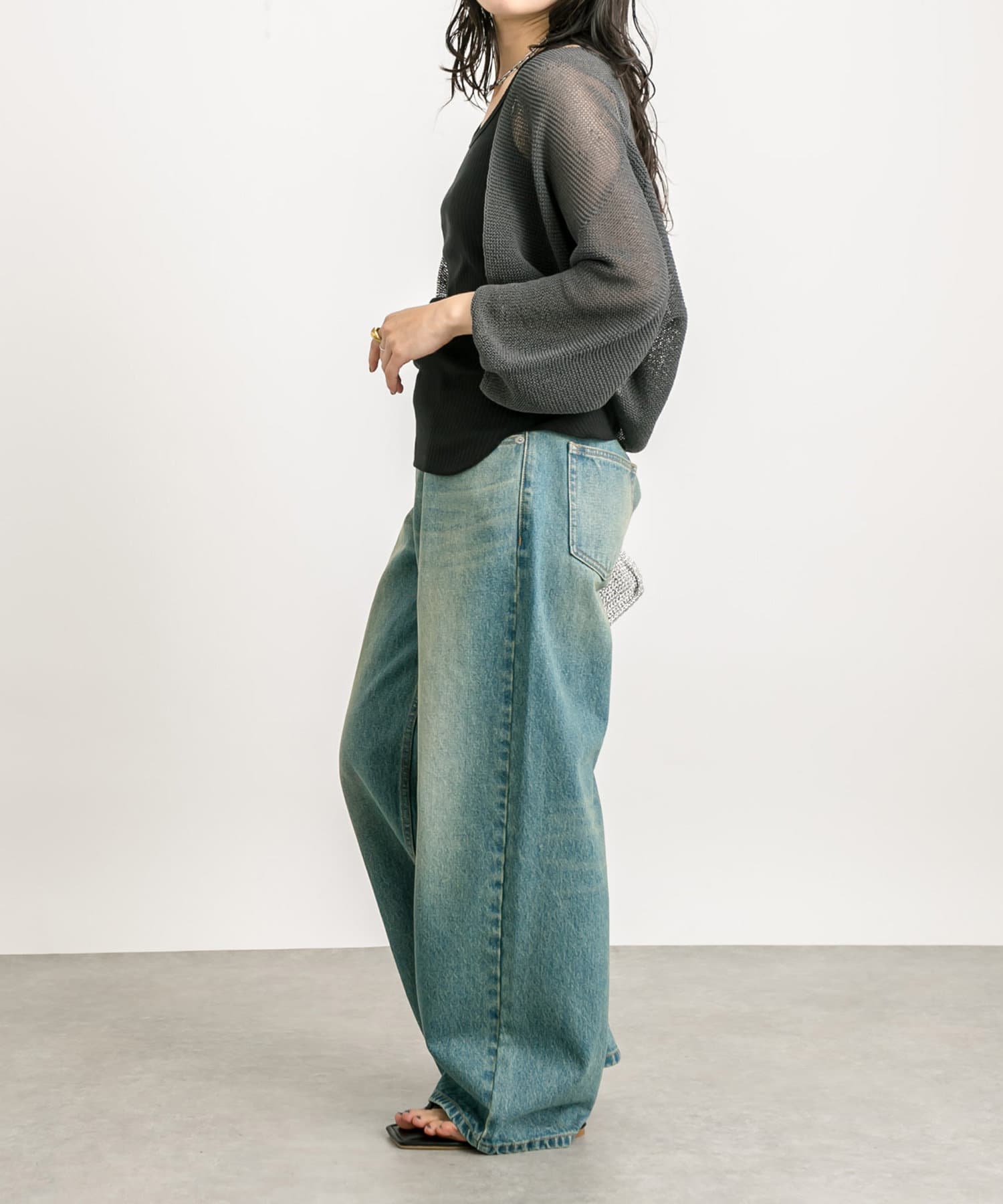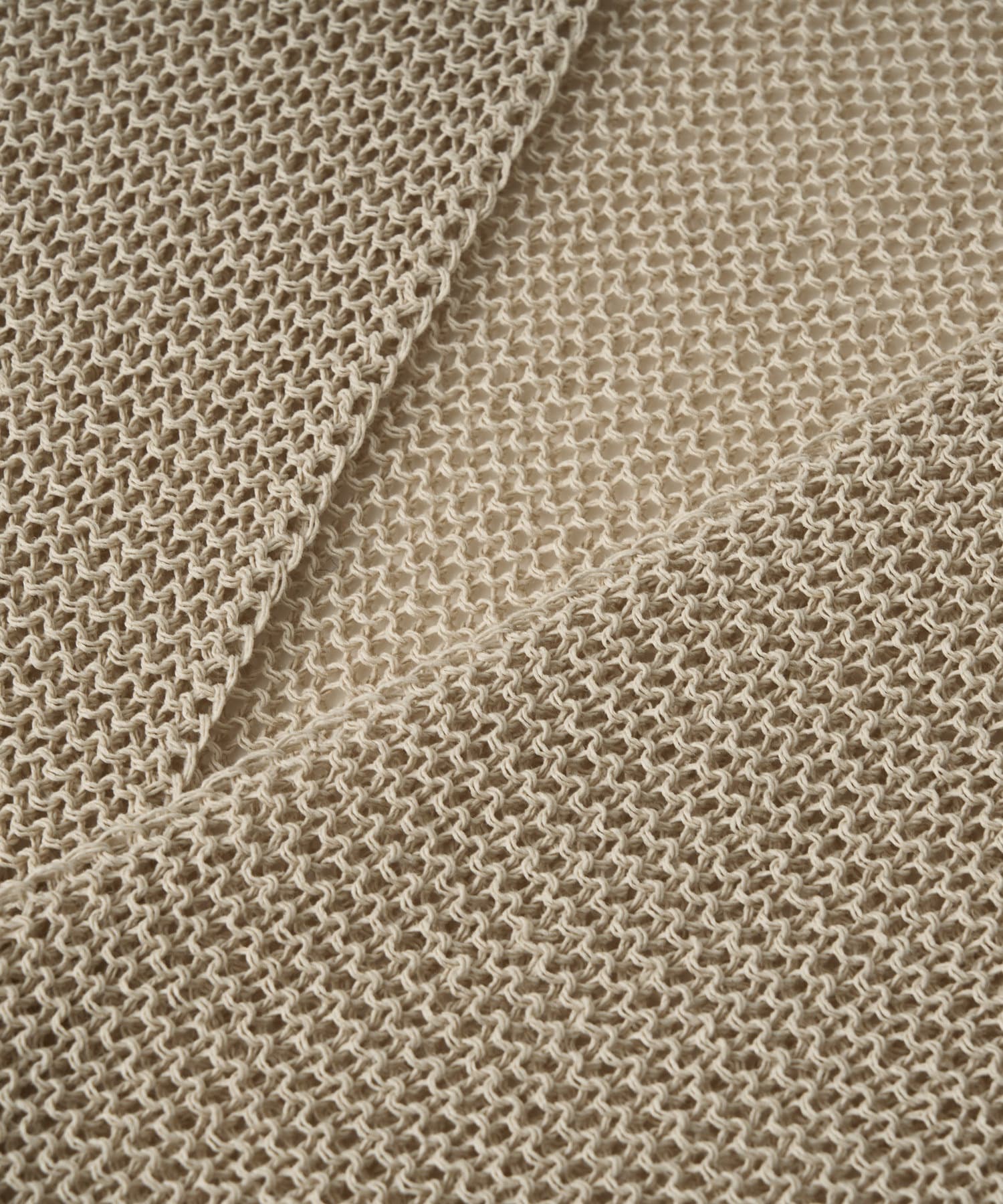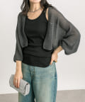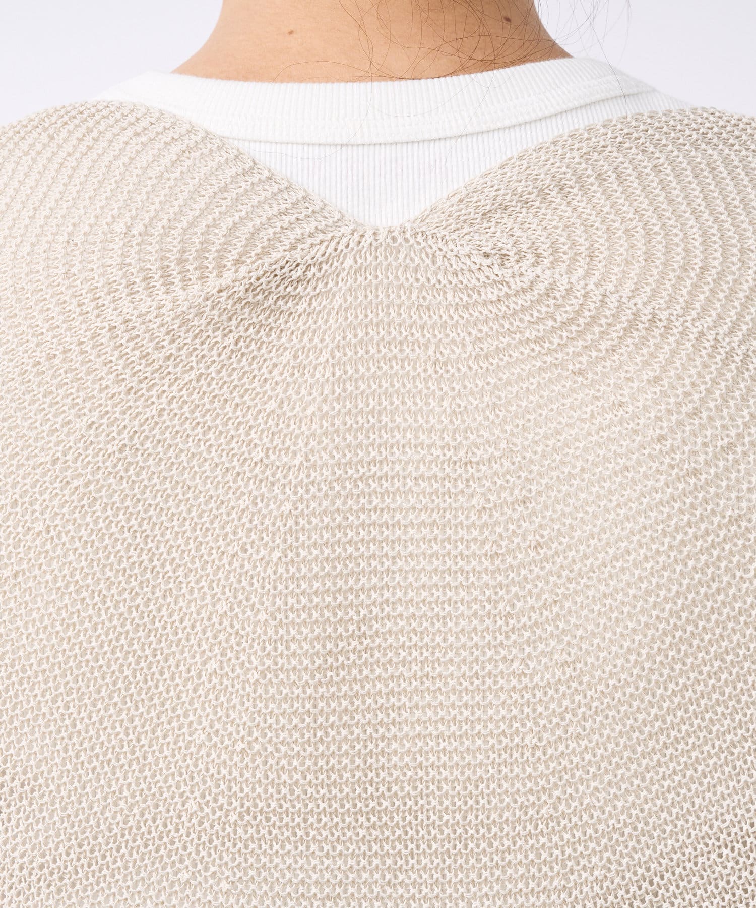 凹凸感のあるシアーな編地とふわっと軽い着心地のペーパーヤーンを使用したニットのトッパーカーディガン。