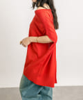 ゆったりとした身幅で丈も長めですが、前身頃のセンターシームとバックスリットで意外とすっきり見えます。