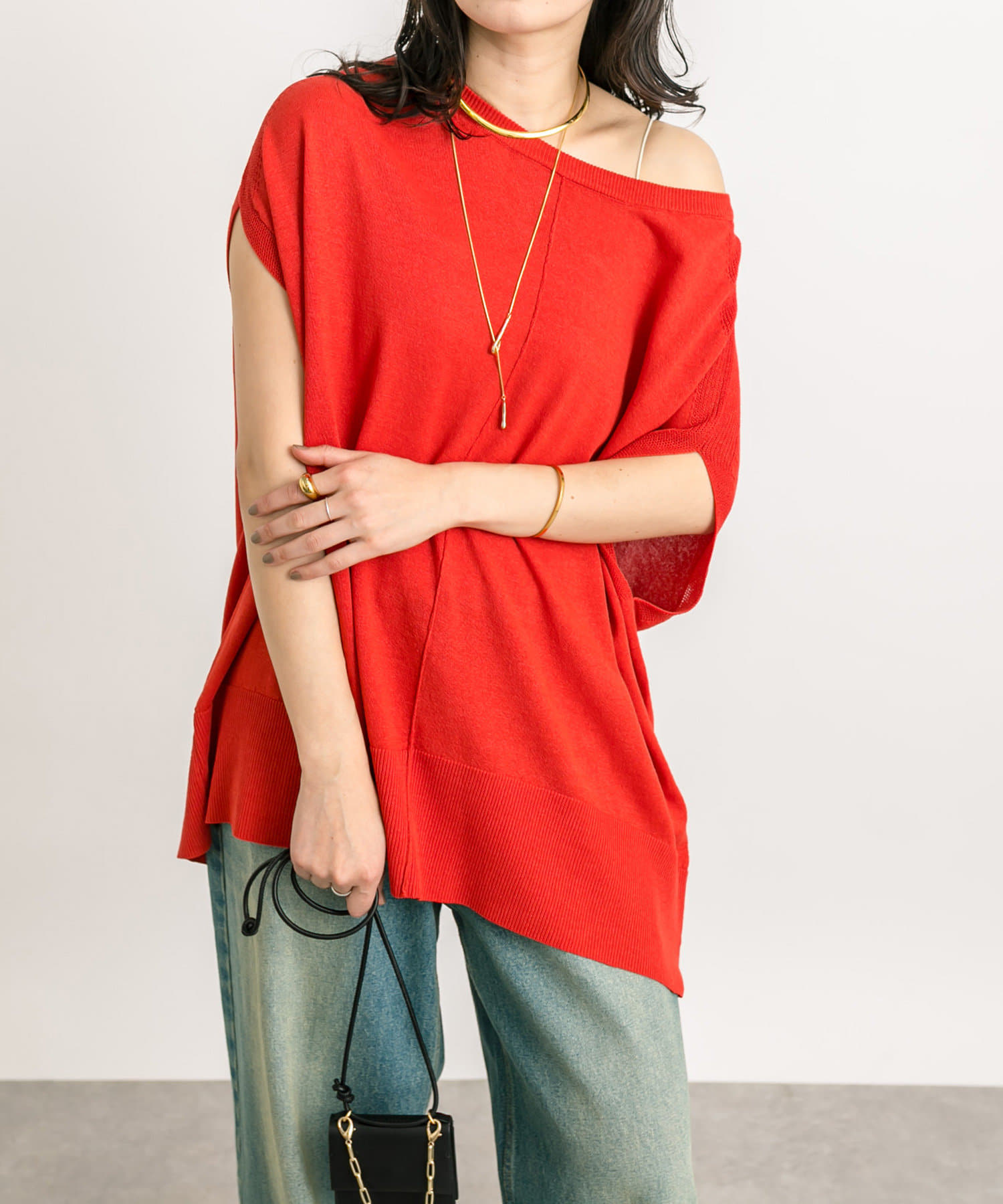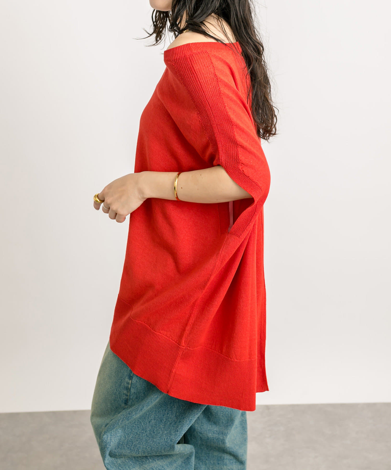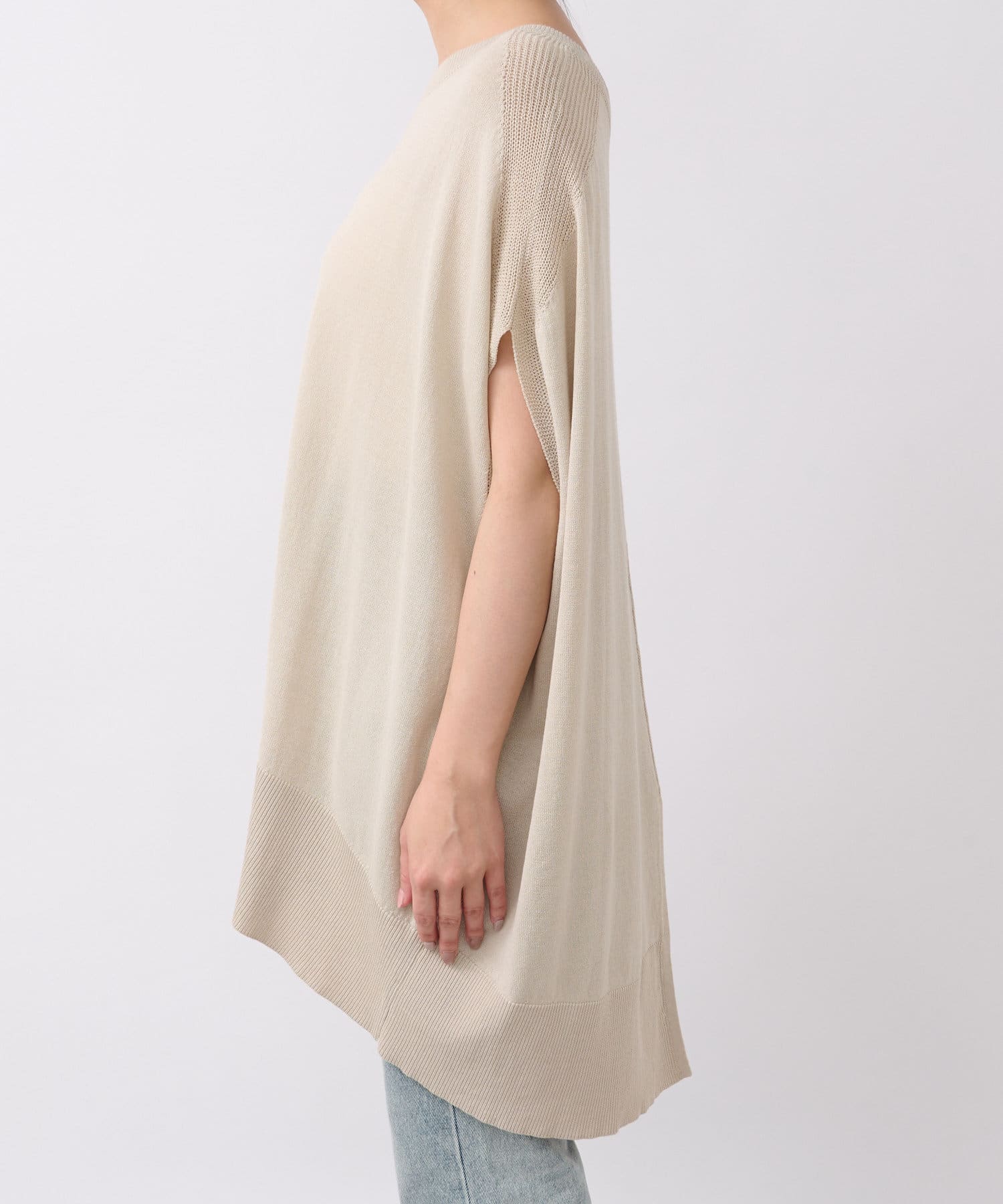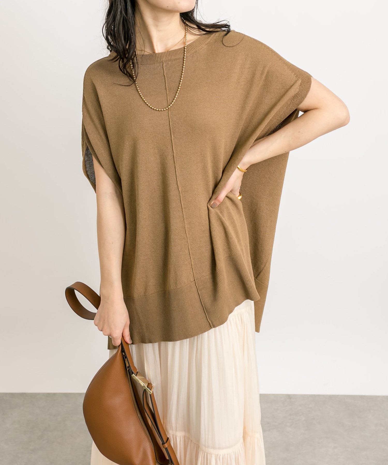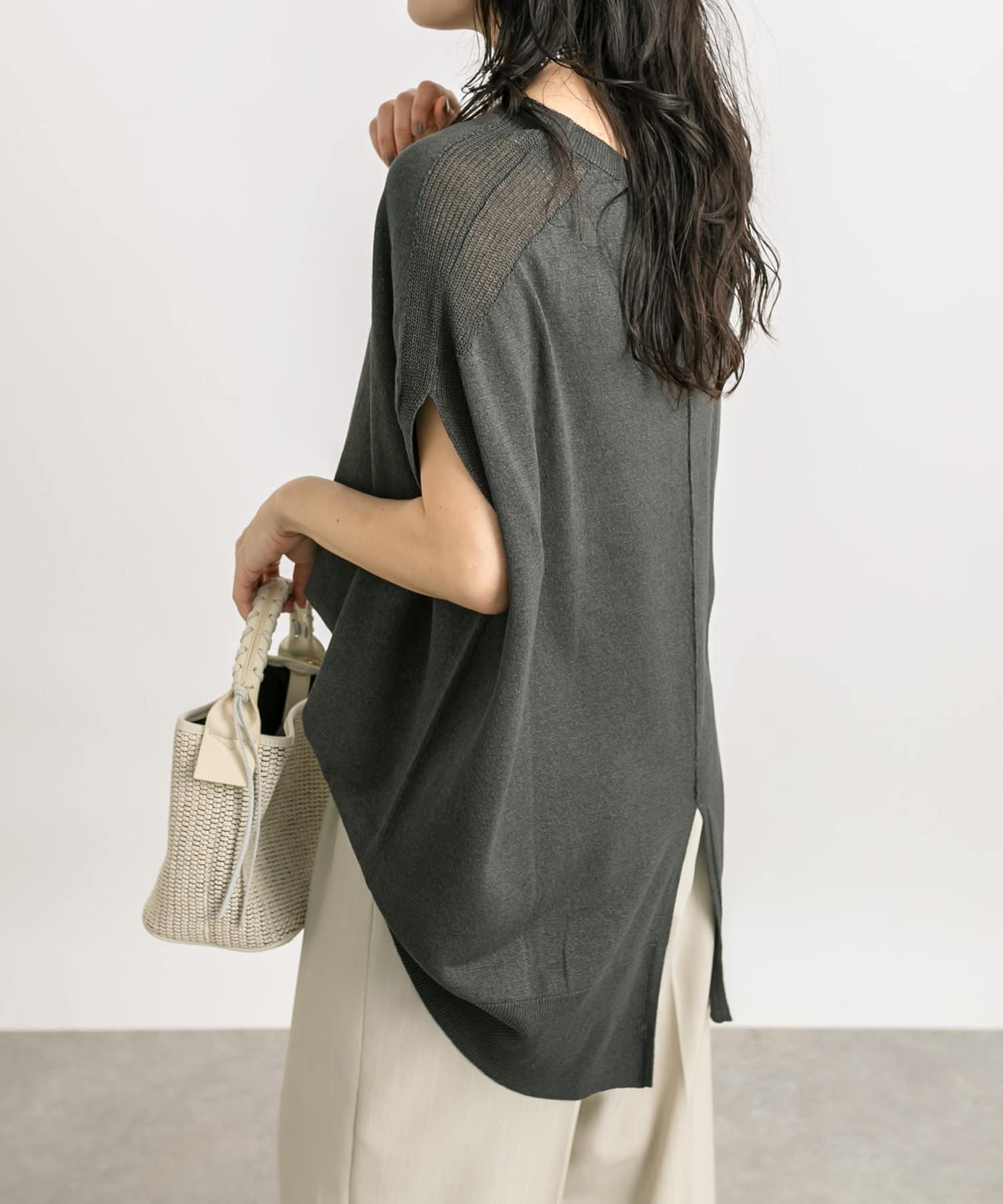 レーヨン混のドレープ感とひんやりした肌ざわりのサマーニット。