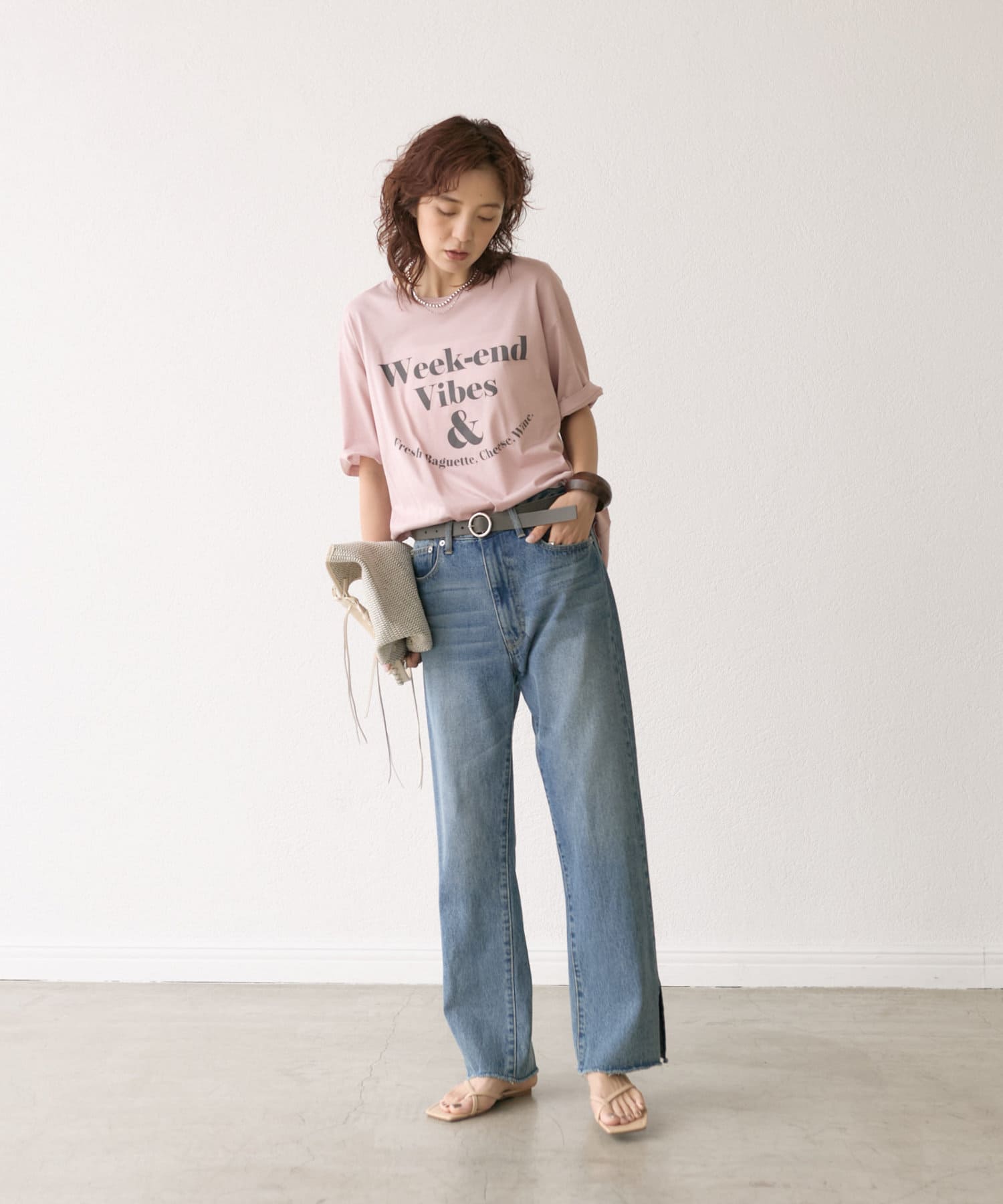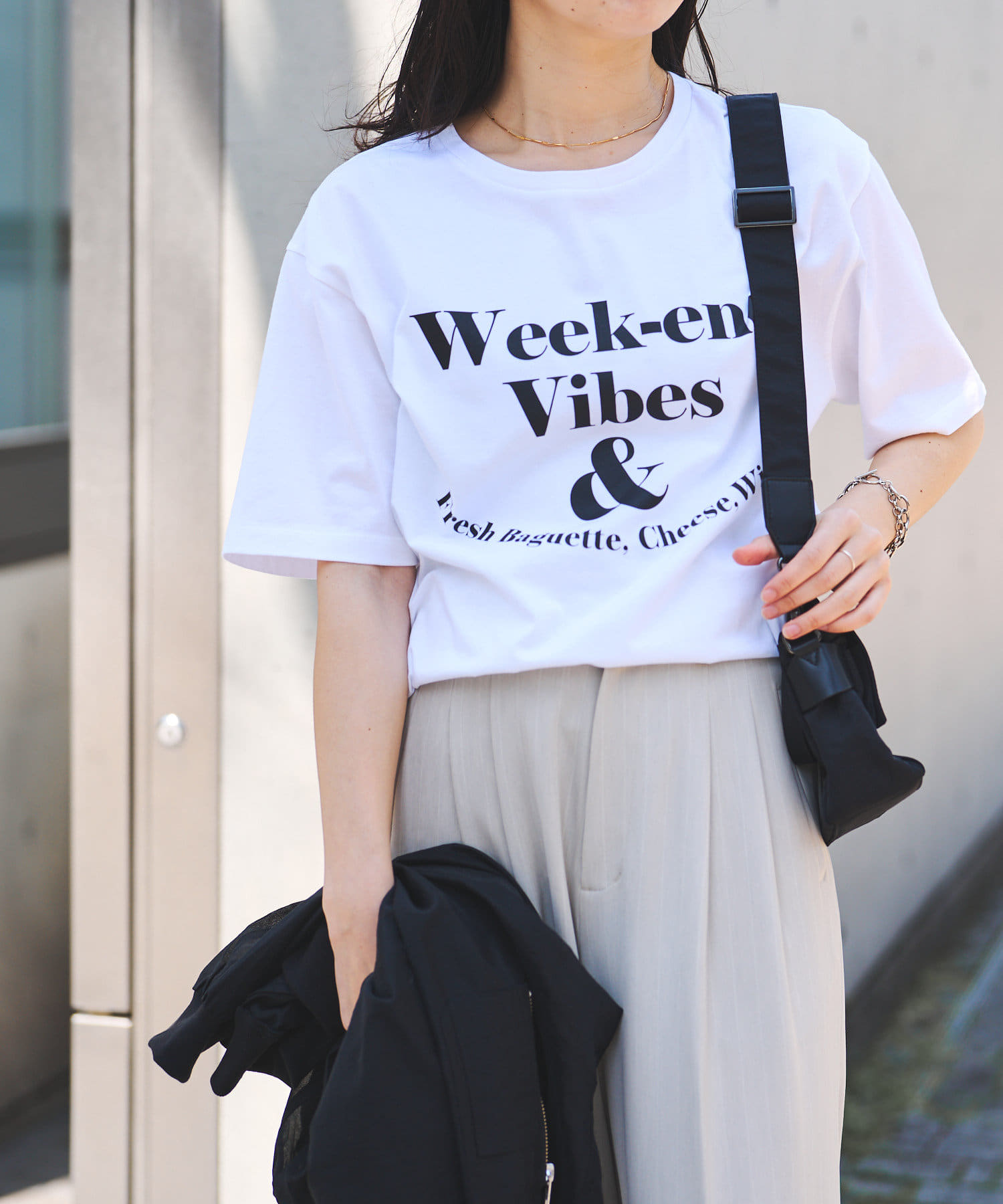 やや大きめのロゴがコーディネートのポイントになるロゴTシャツ。