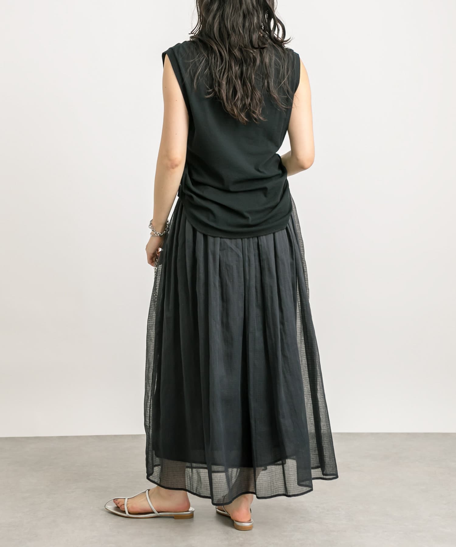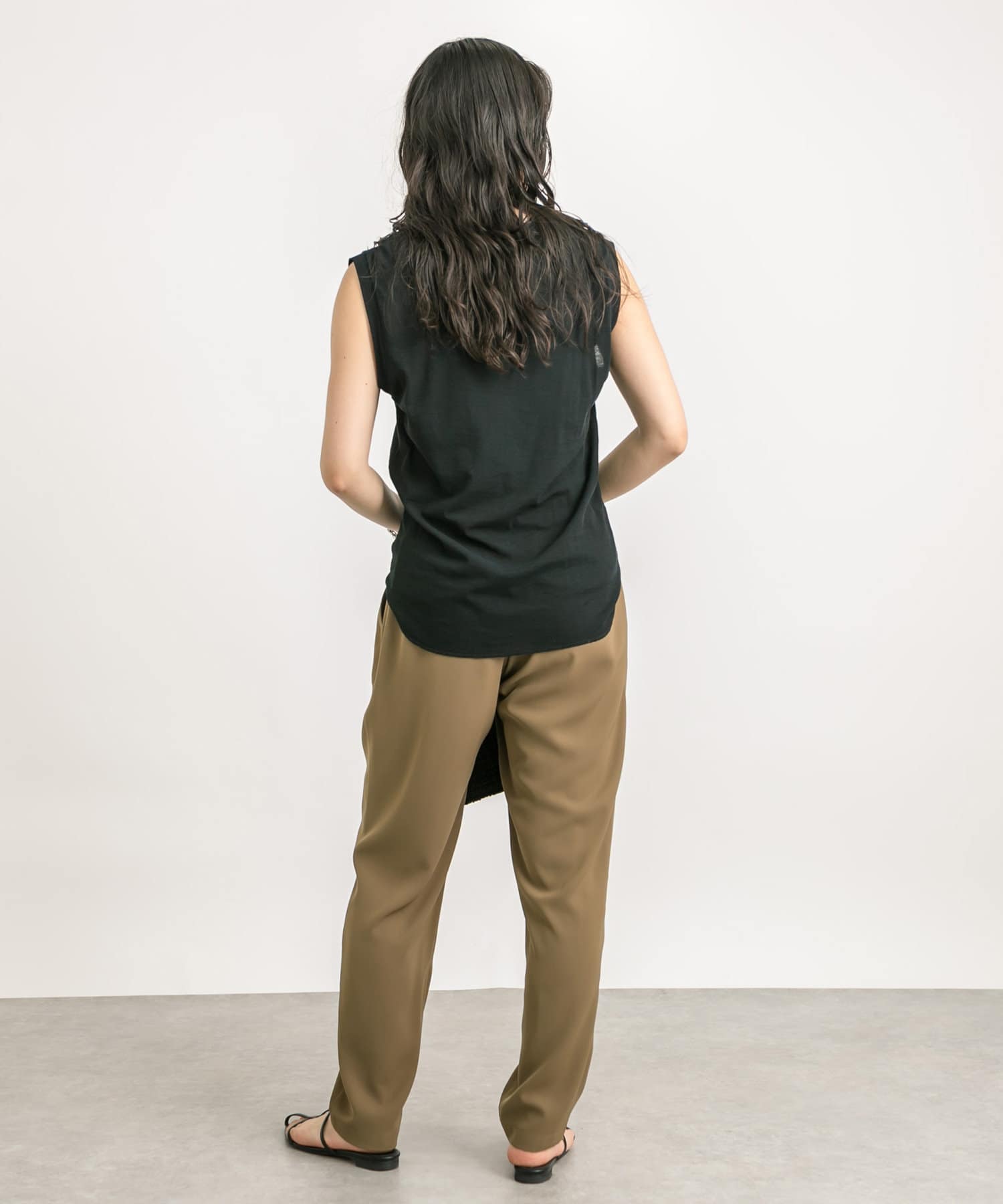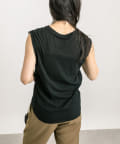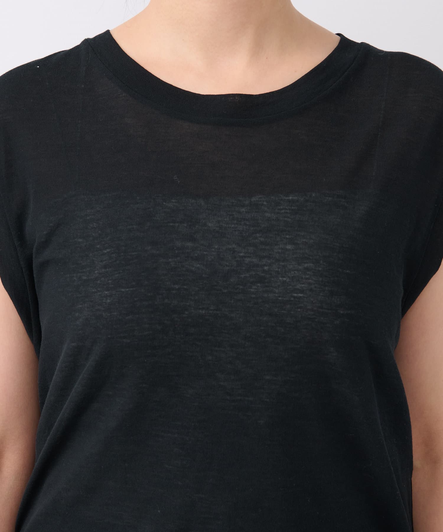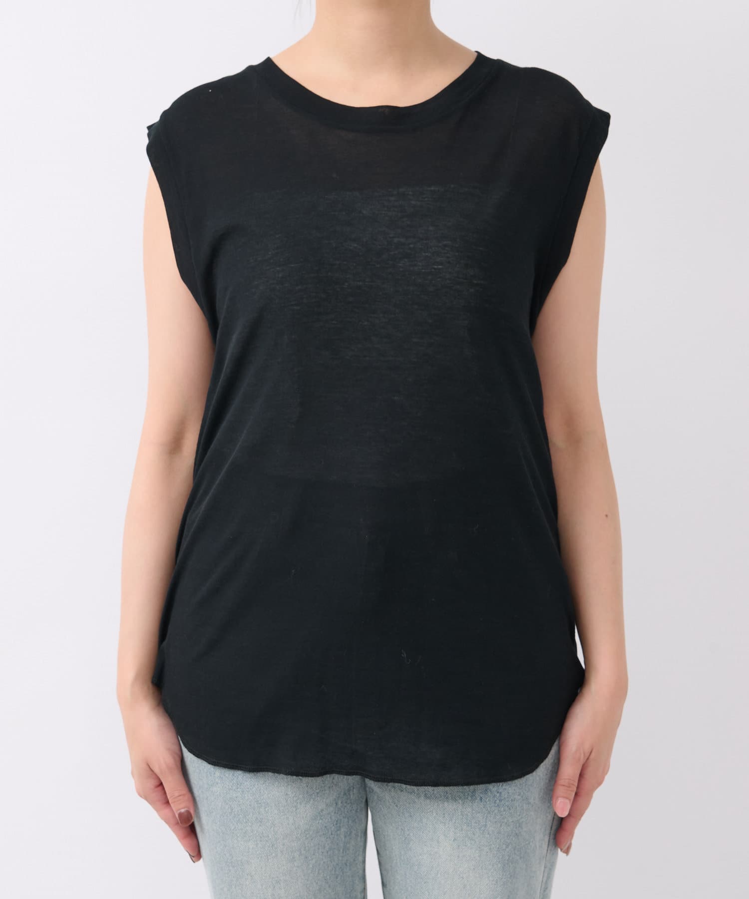 程よい透け感とやわらかな着心地が魅力のノースリTシャツ。