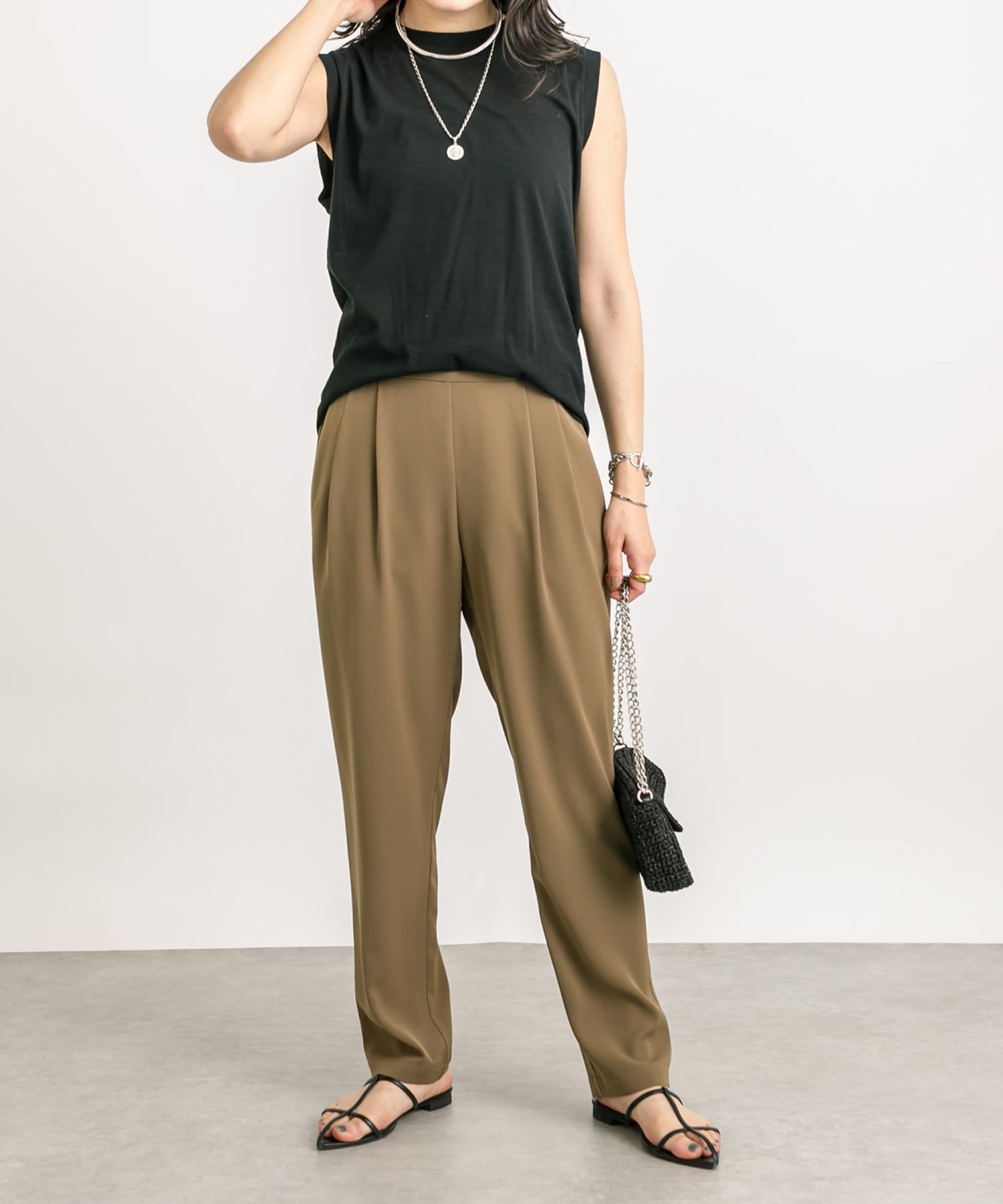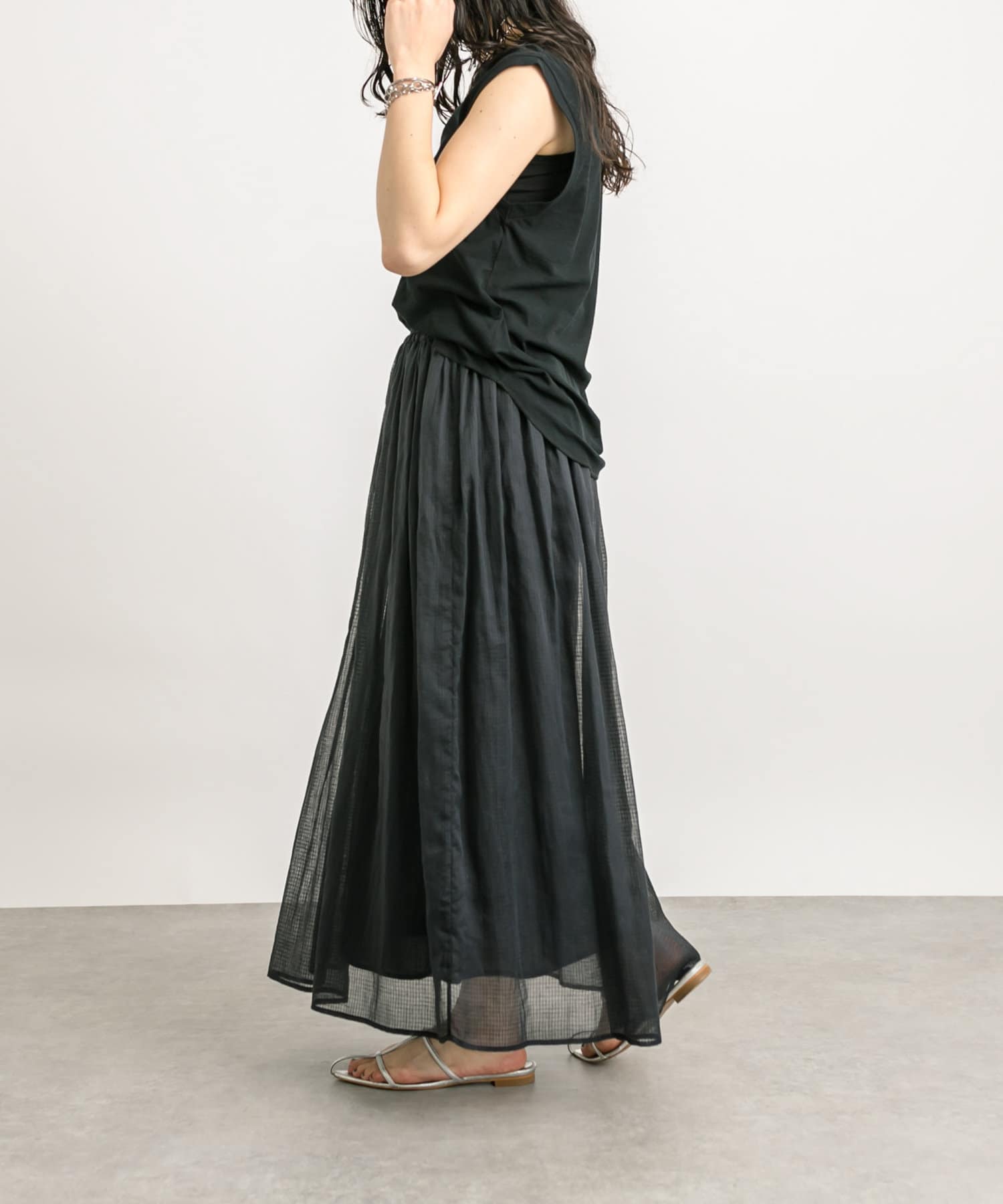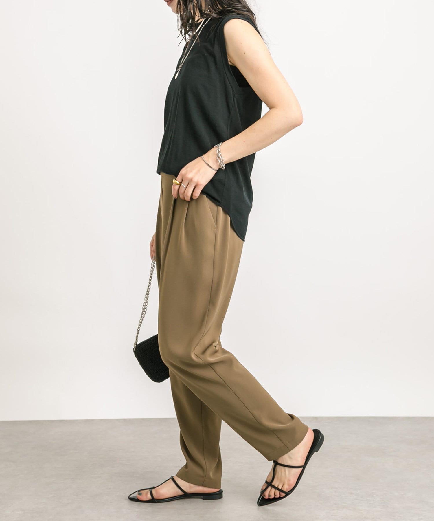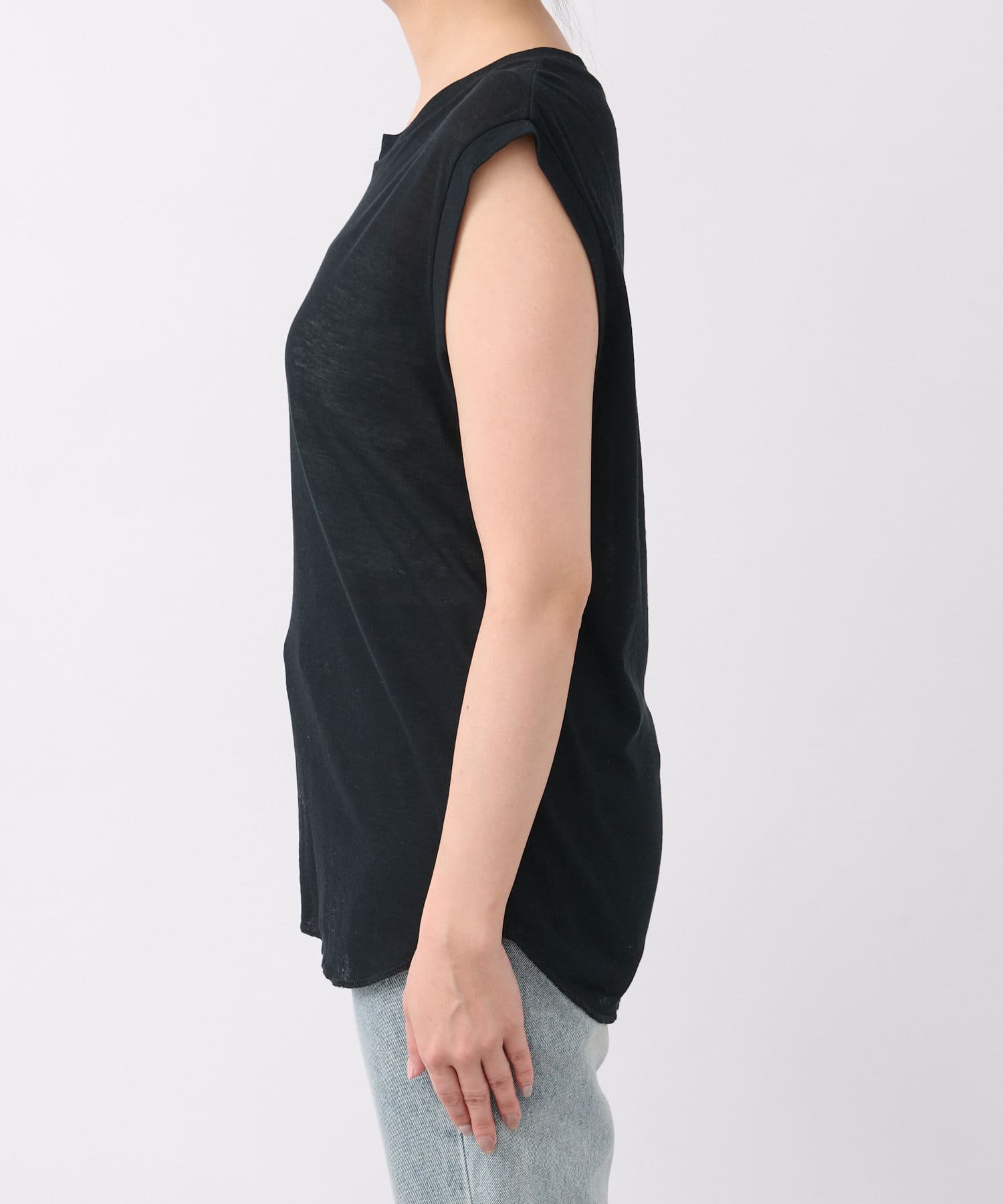 程よい透け感とやわらかな着心地が魅力のノースリTシャツ。
