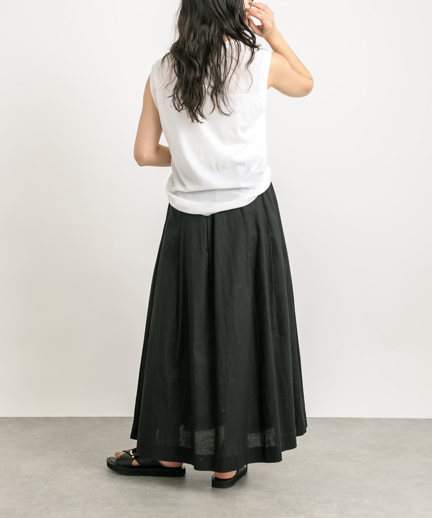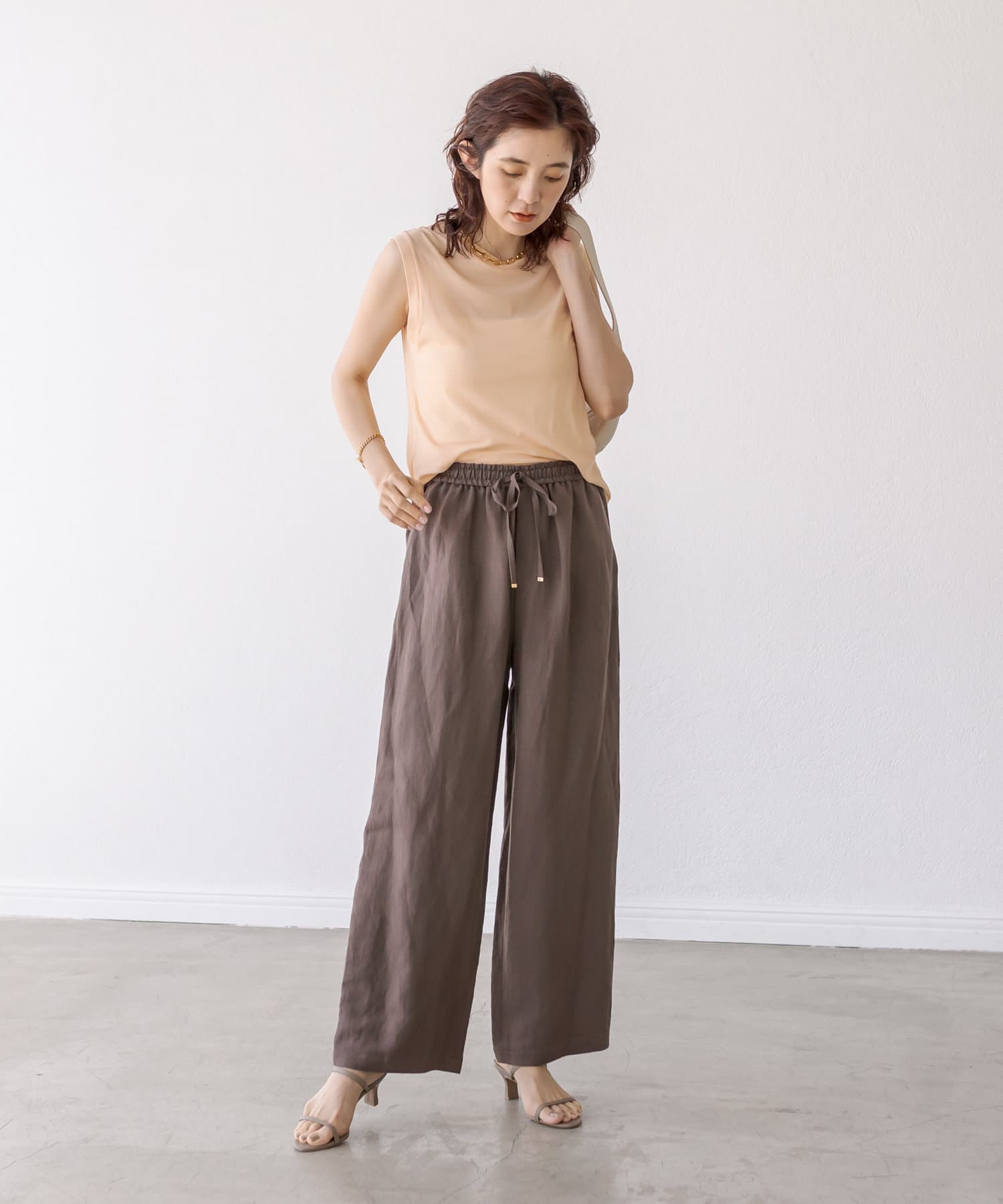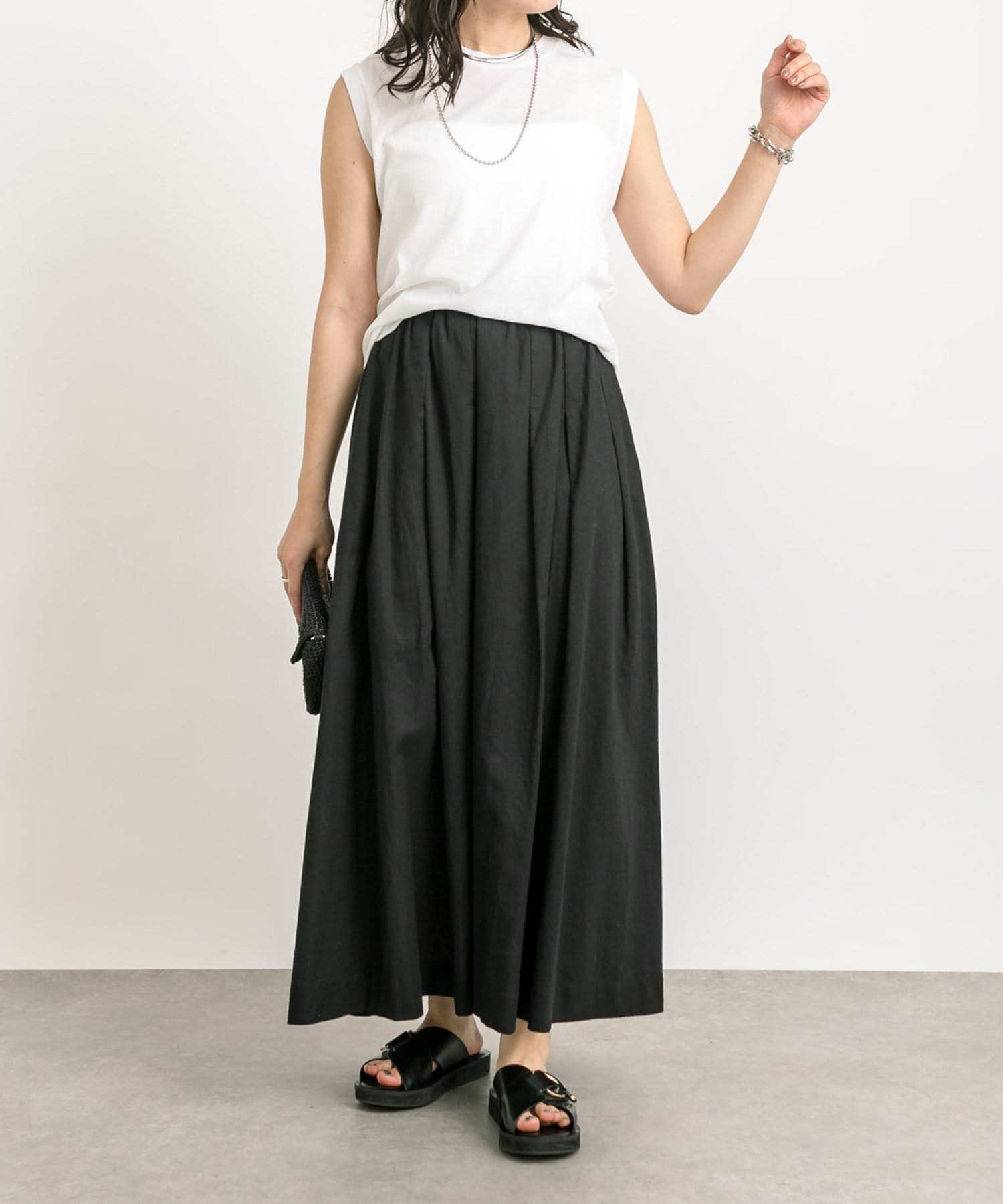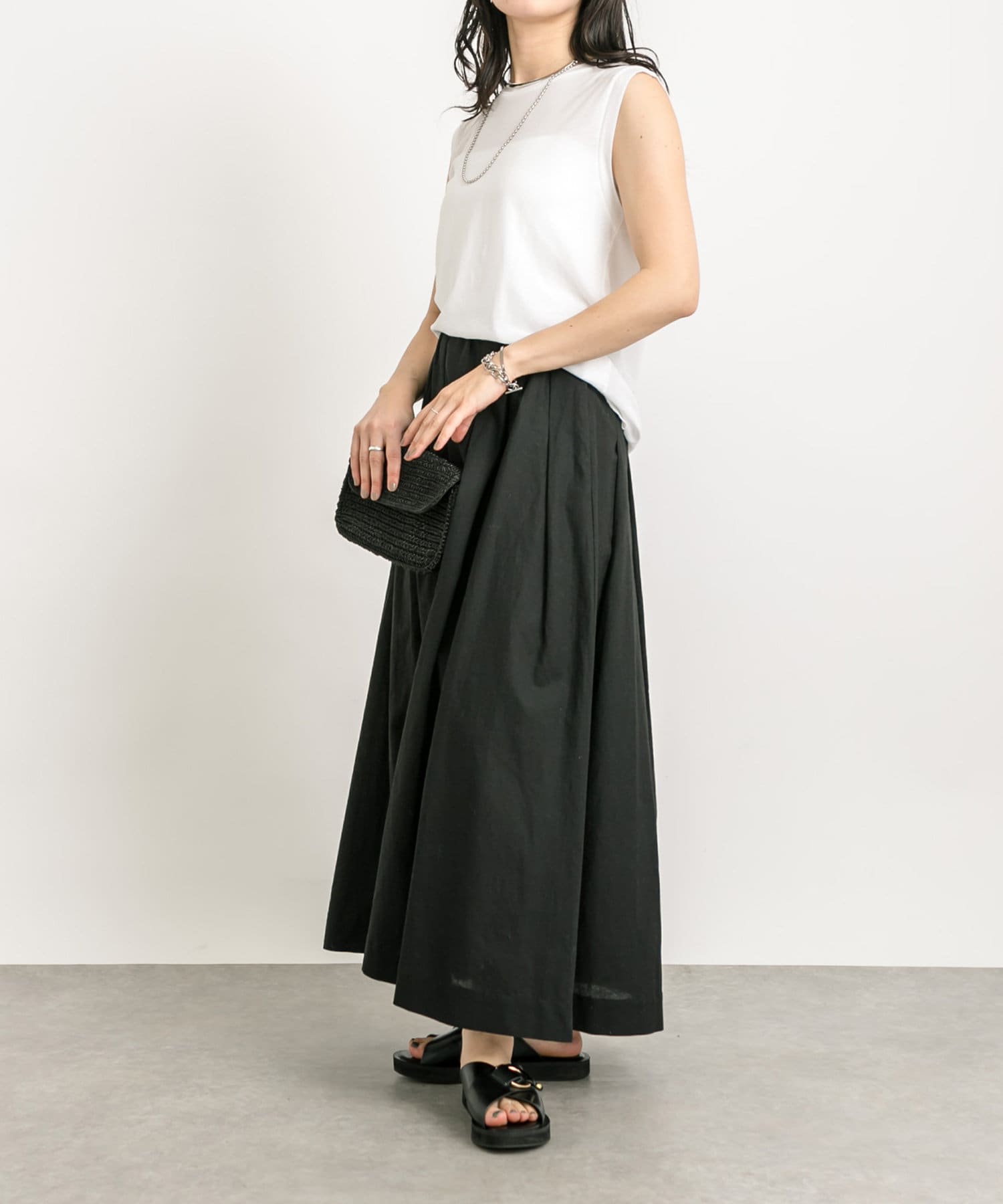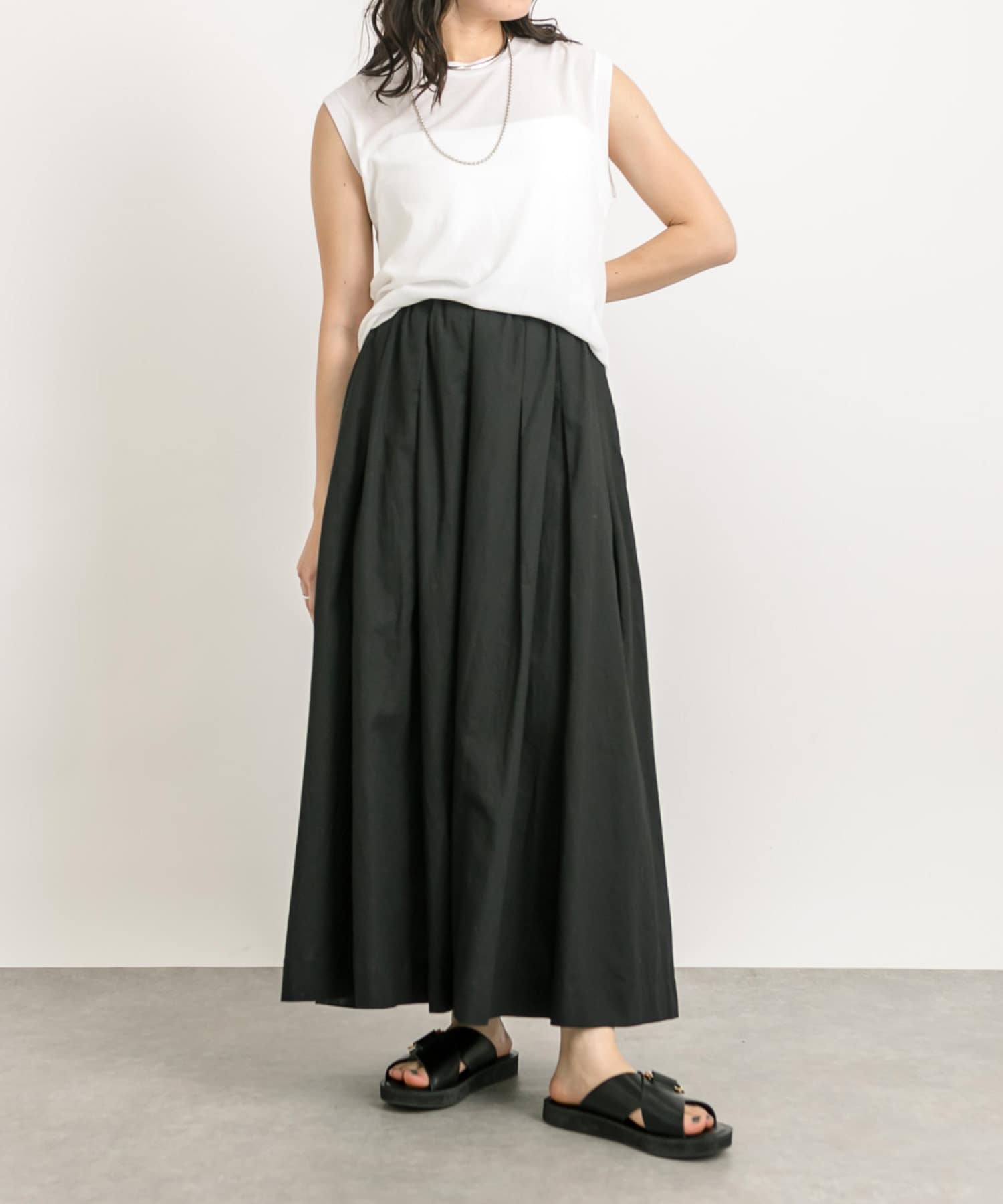 程よい透け感とやわらかな着心地が魅力のノースリTシャツ。