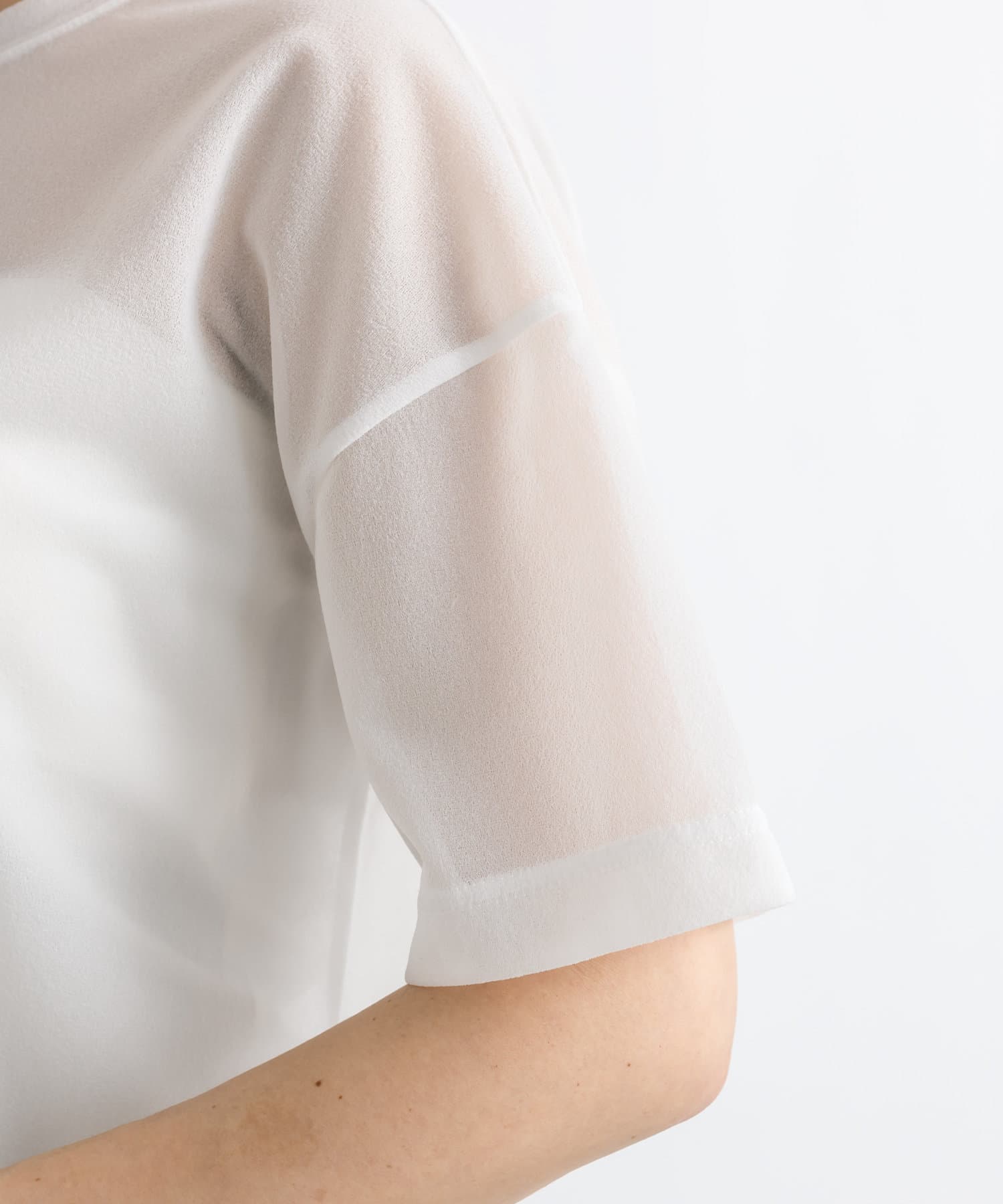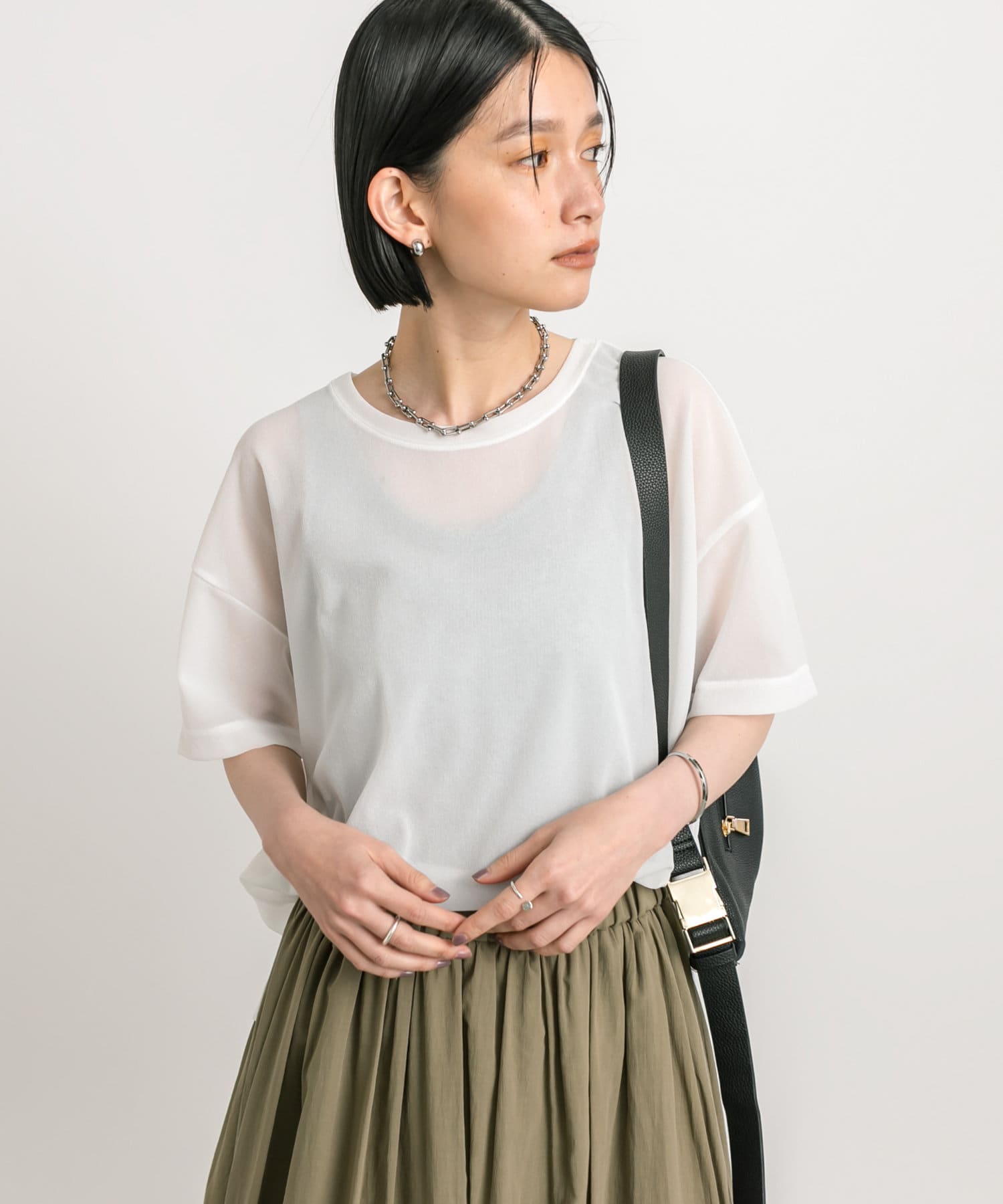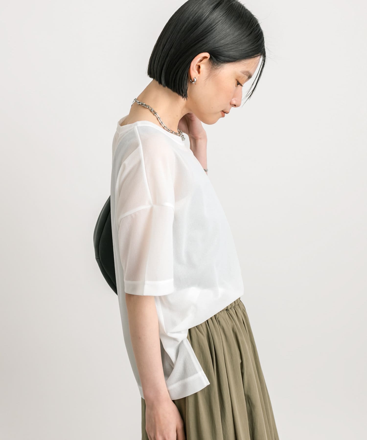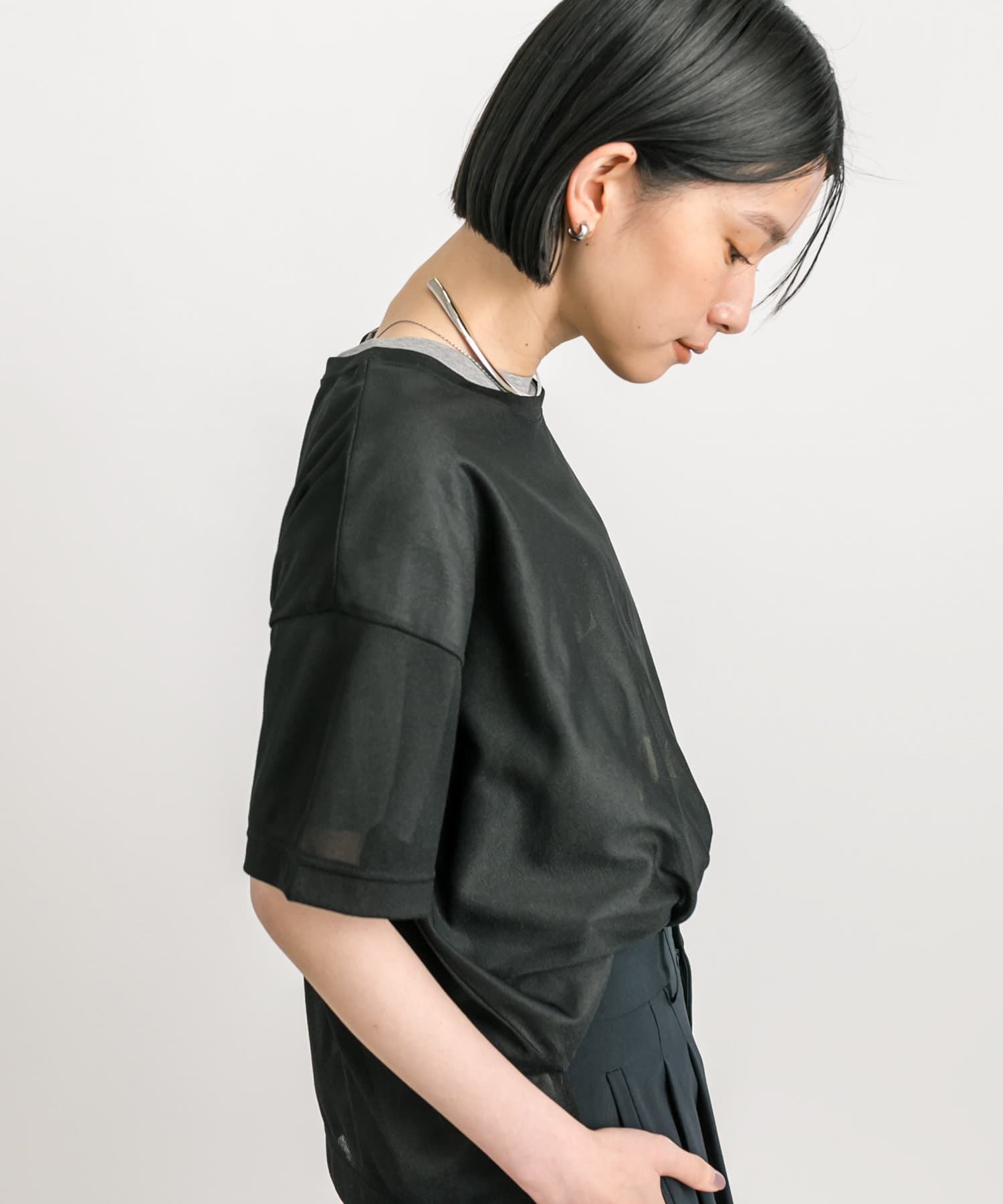 ゆったりとしたゆとりのあるシルエット、さりげない透け感で軽やかな雰囲気で着ていただけます。