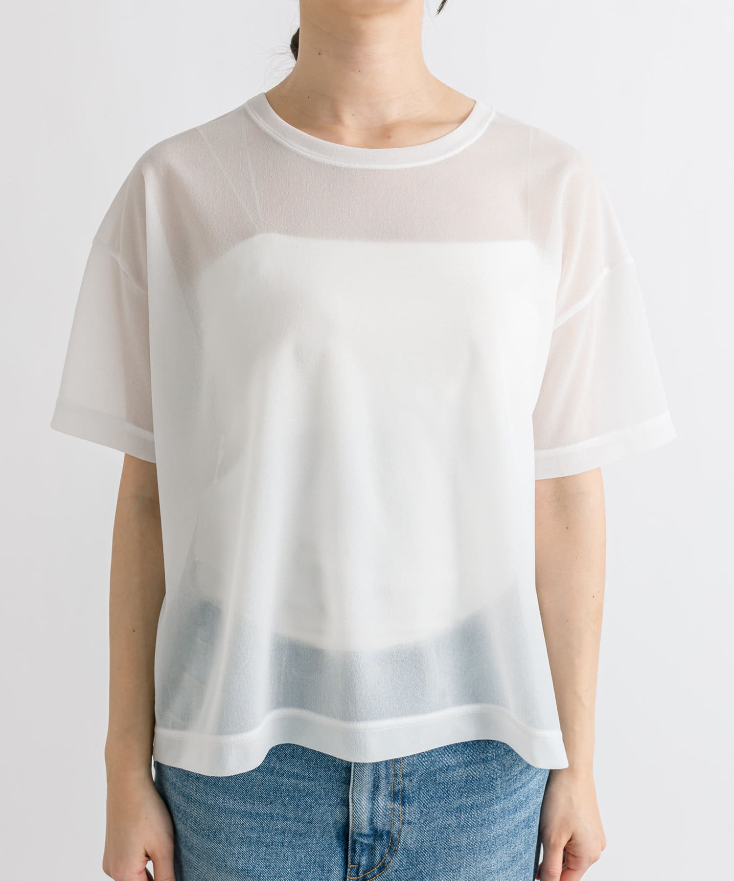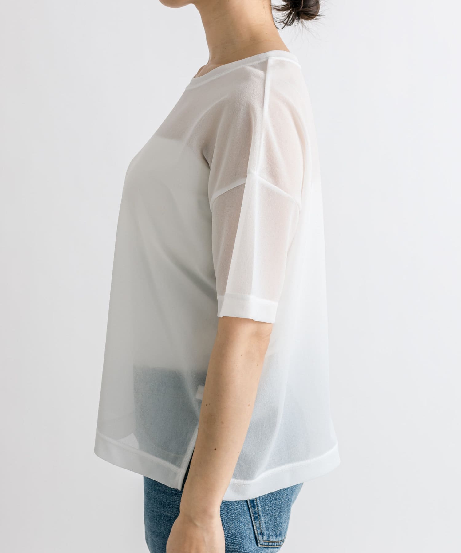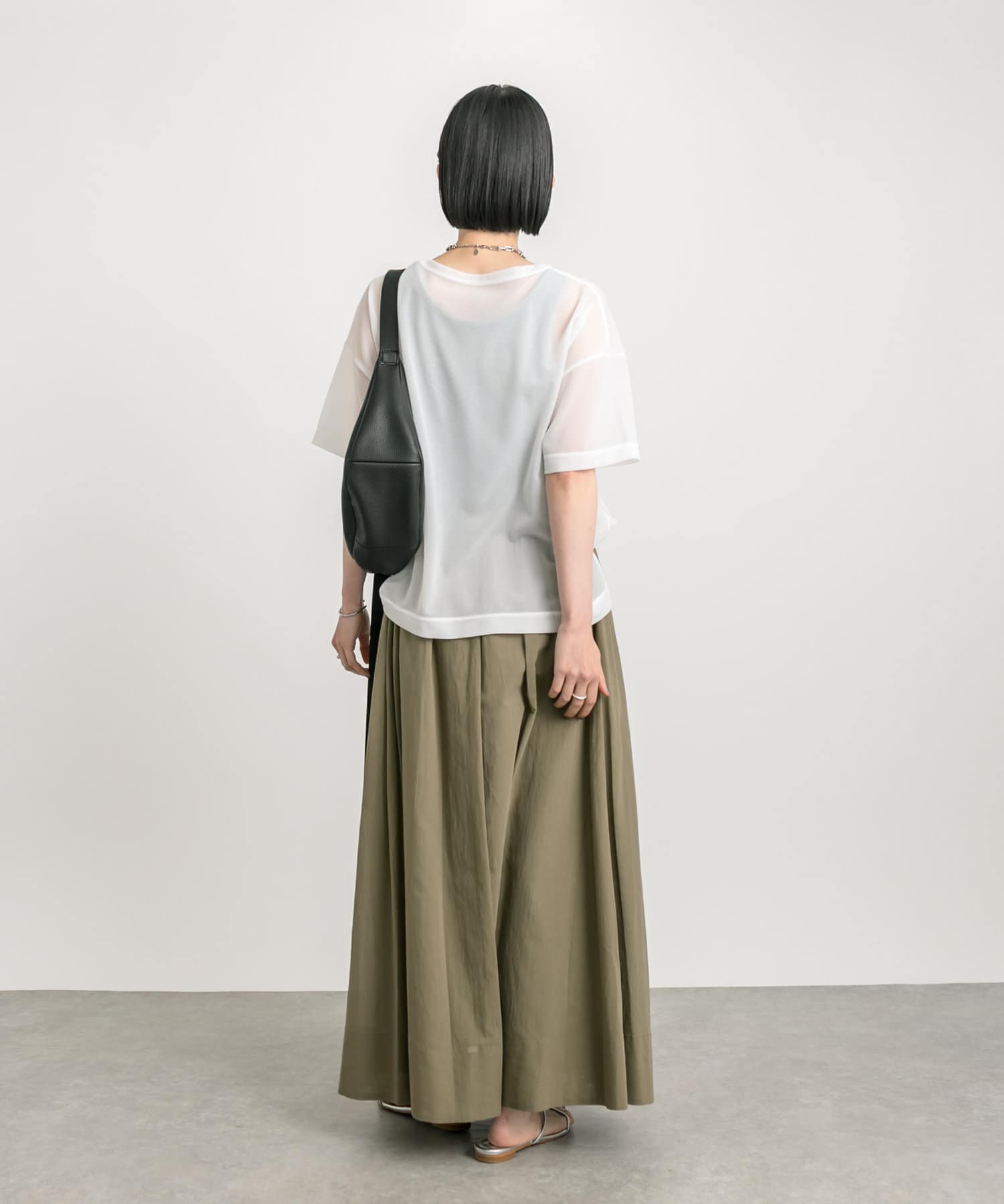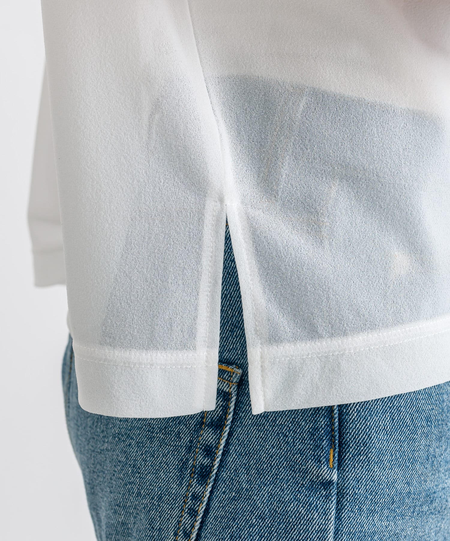 ゆったりとしたゆとりのあるシルエット、さりげない透け感で軽やかな雰囲気で着ていただけます。