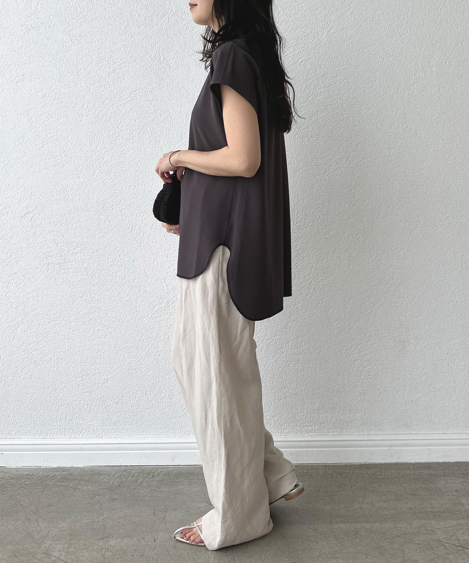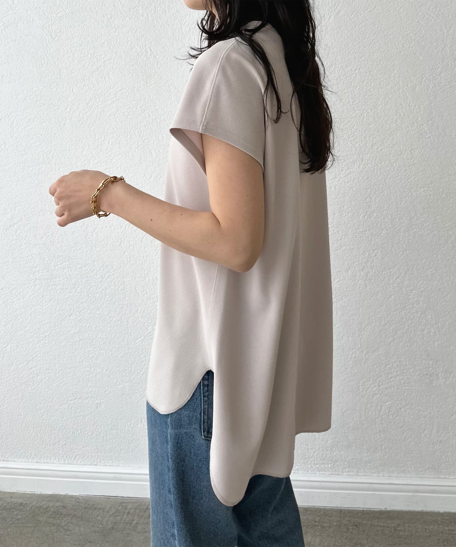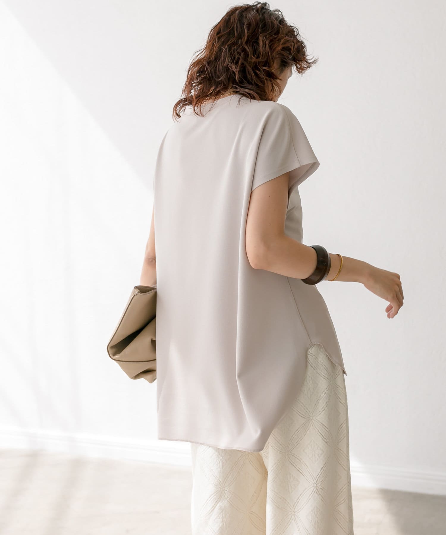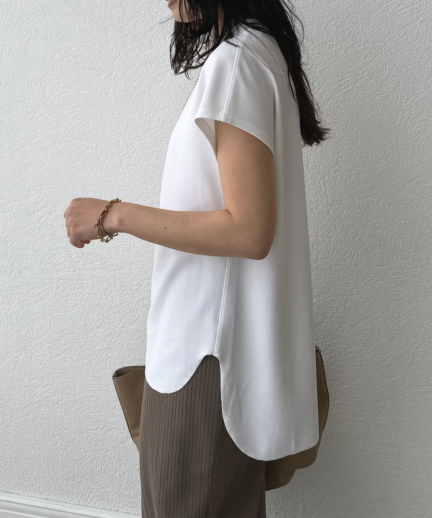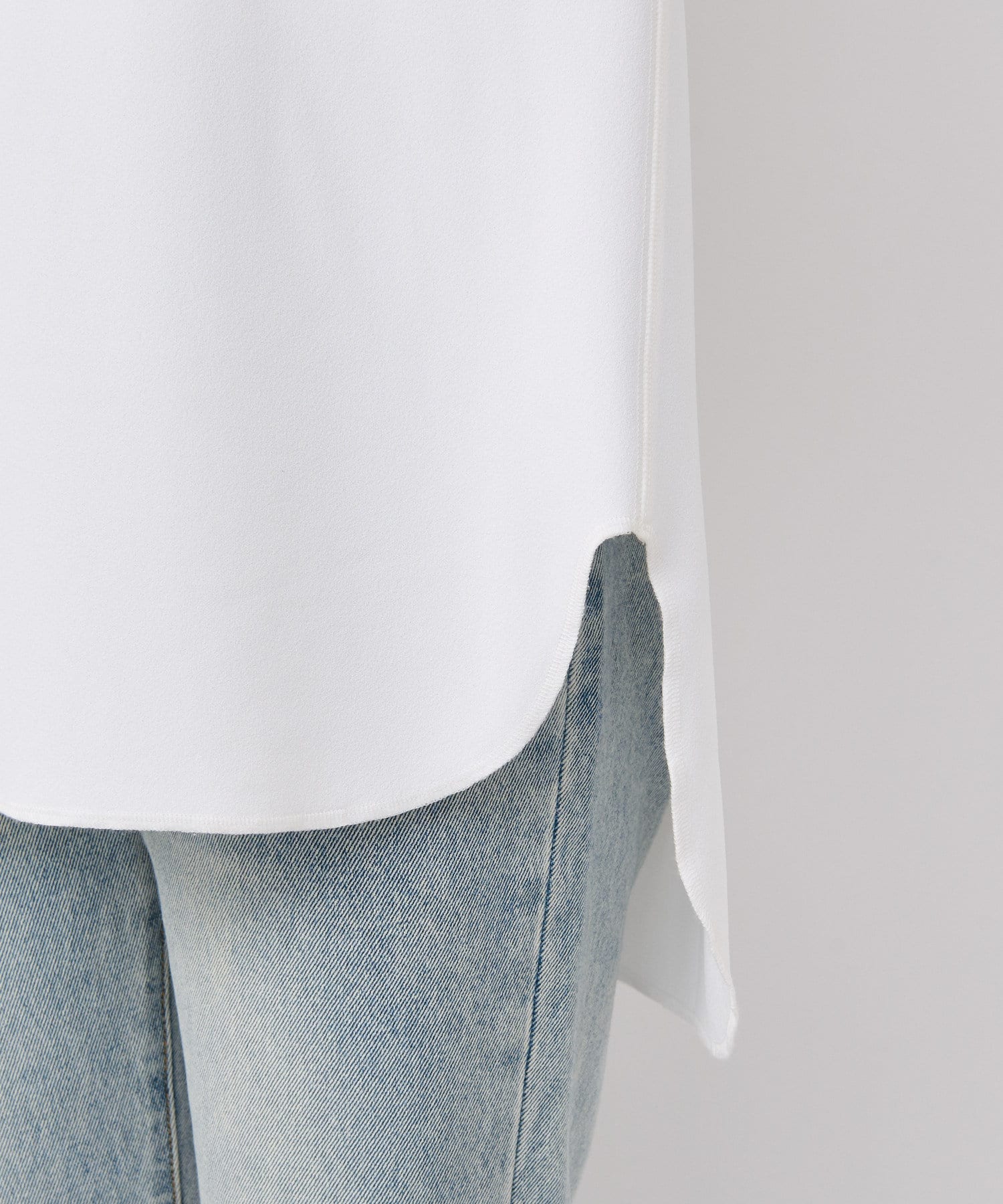 インしてもしなくても着やすい着丈、程よく身体の泳ぐシルエットですっきりと着ていただけます。
